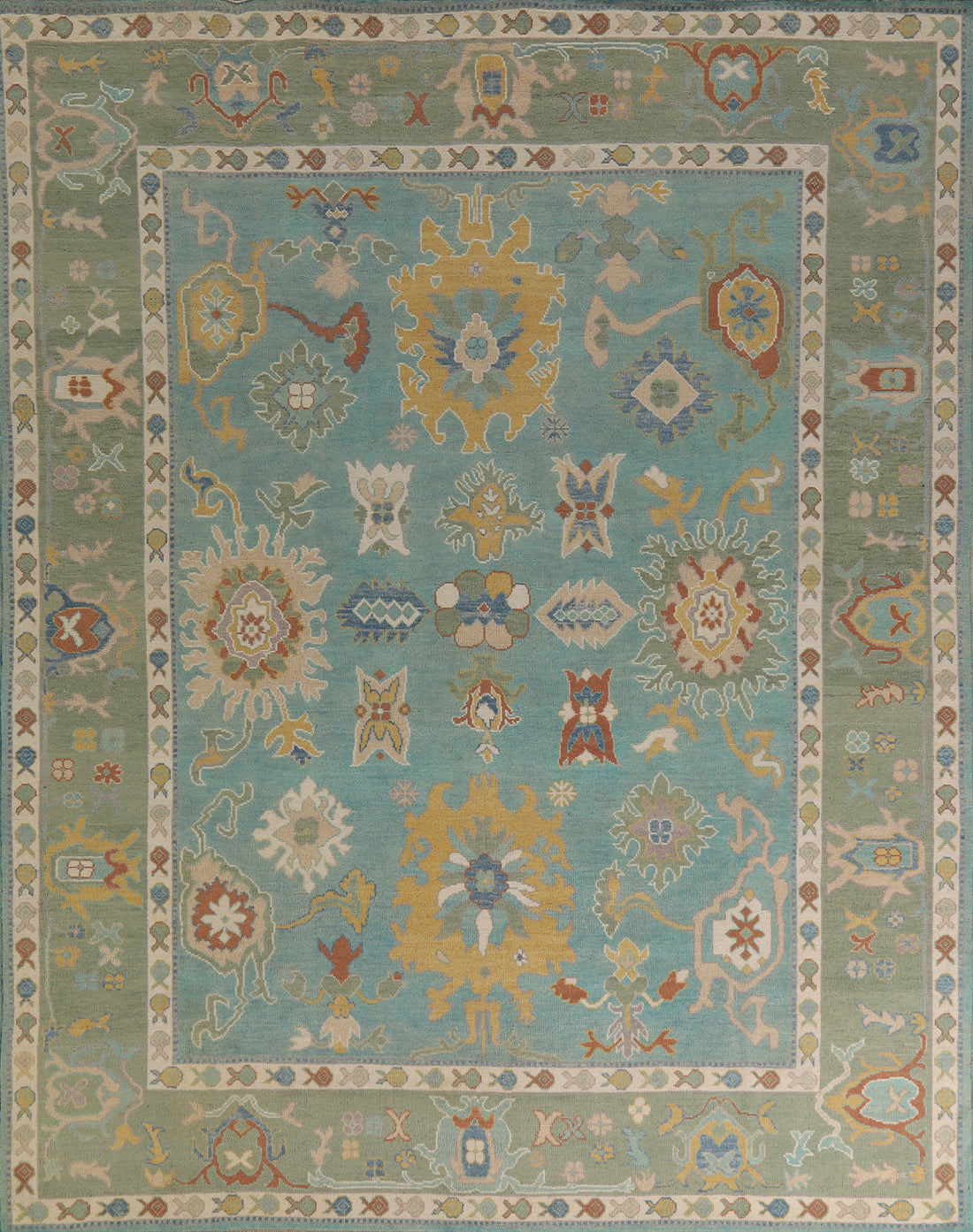 Turquoise Blue Floral Oushak Vegetable Dye Area Rug 8x10