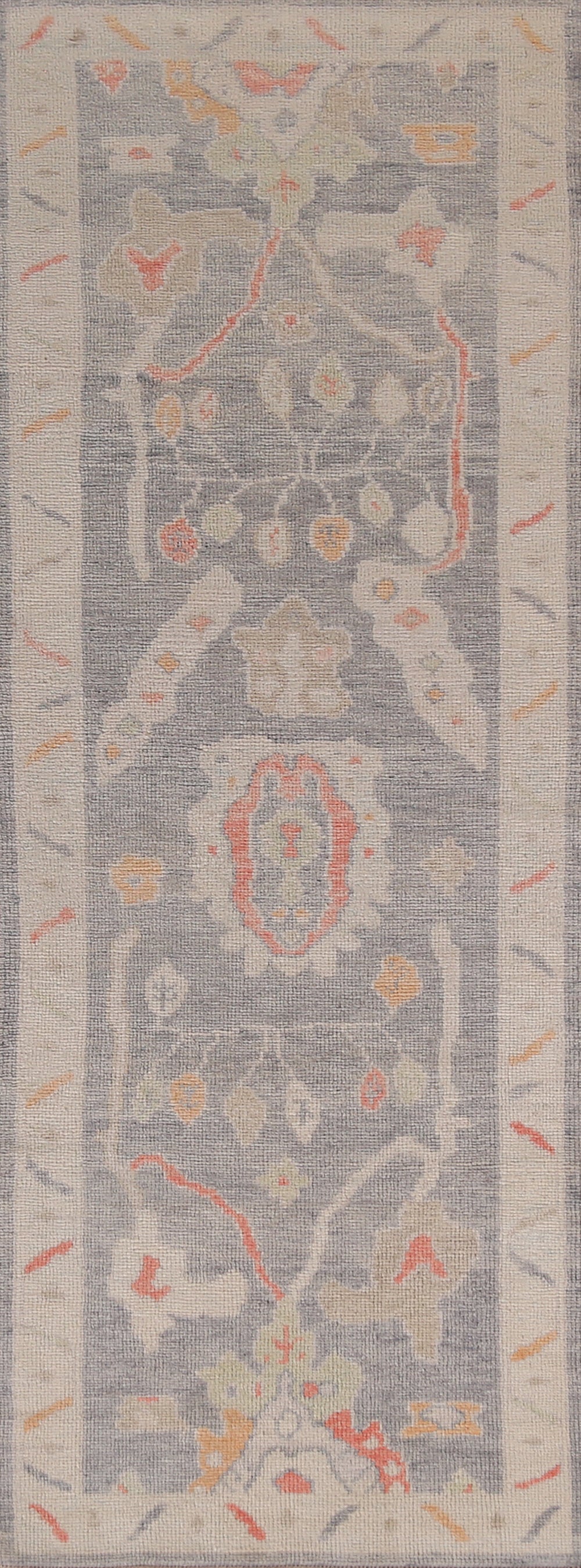 Vegetable Dye Gray Oushak Turkish Runner Rug 3x10