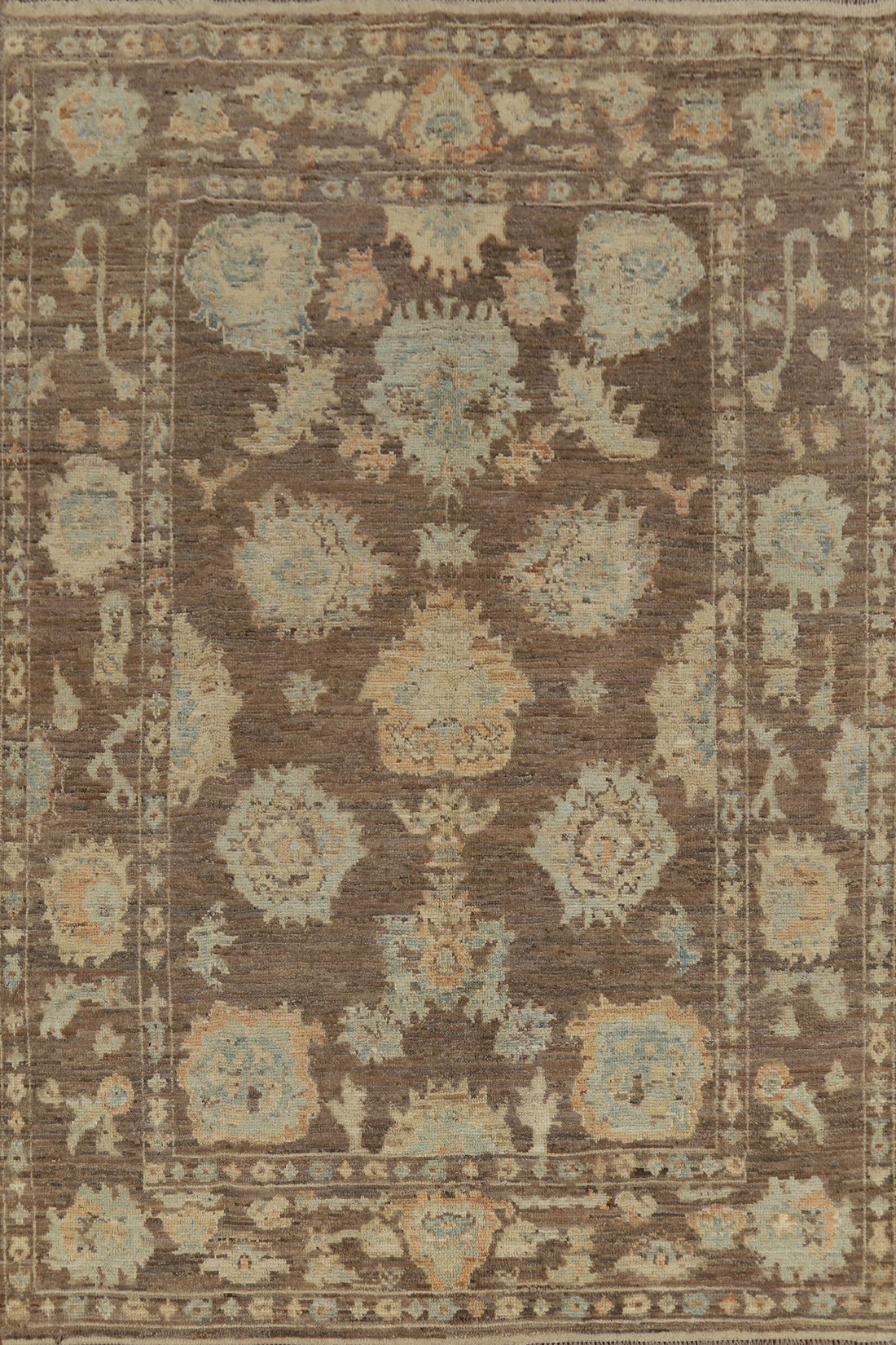 Brown Floral Oushak Vegetable Dye Area Rug 7x10