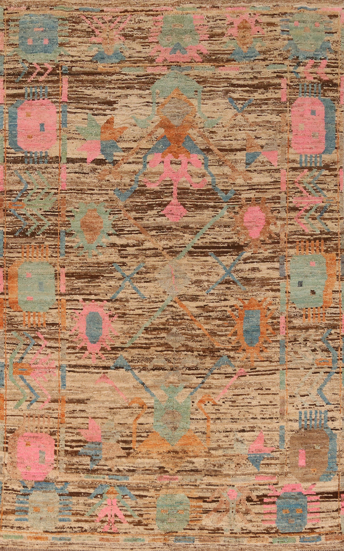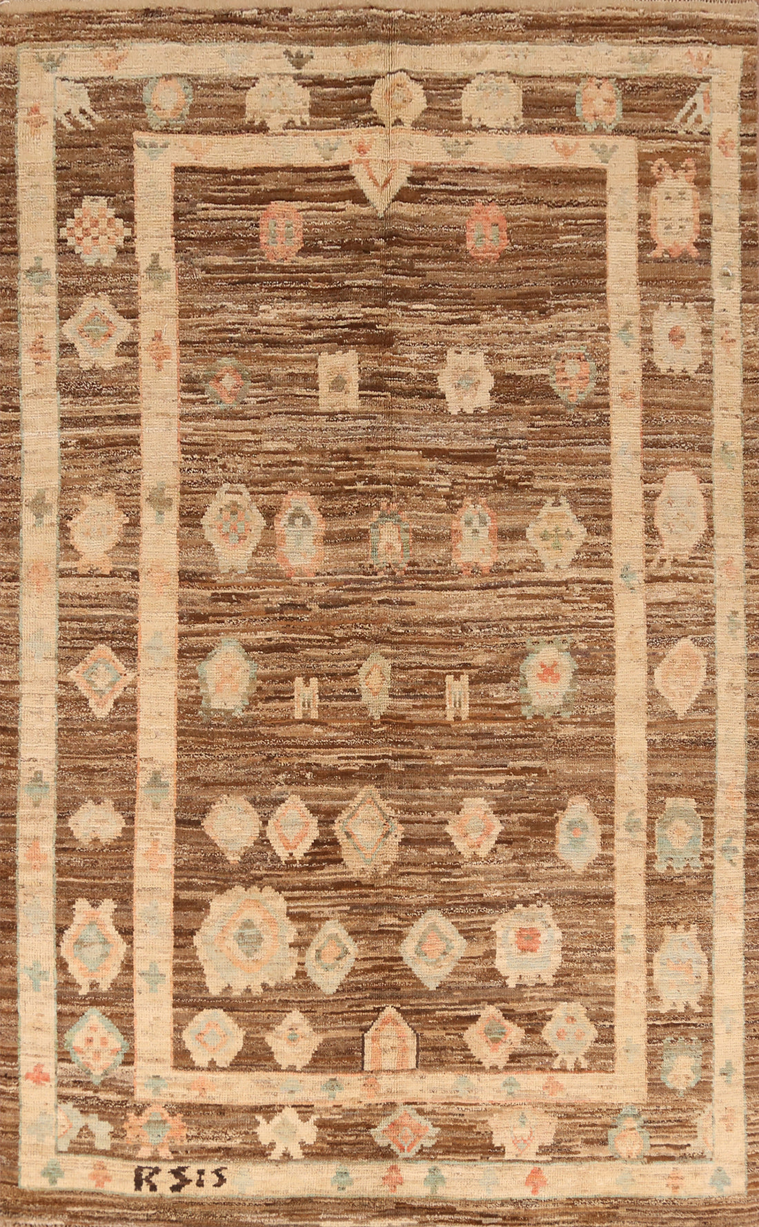 All-Over Brown Oushak Vegetable Dye Area Rug 5x8