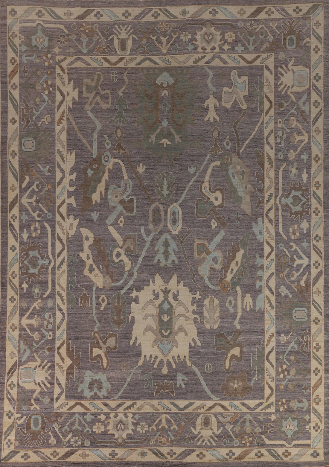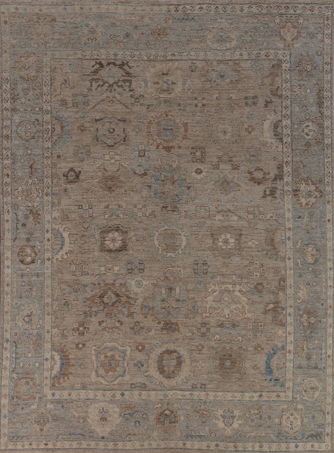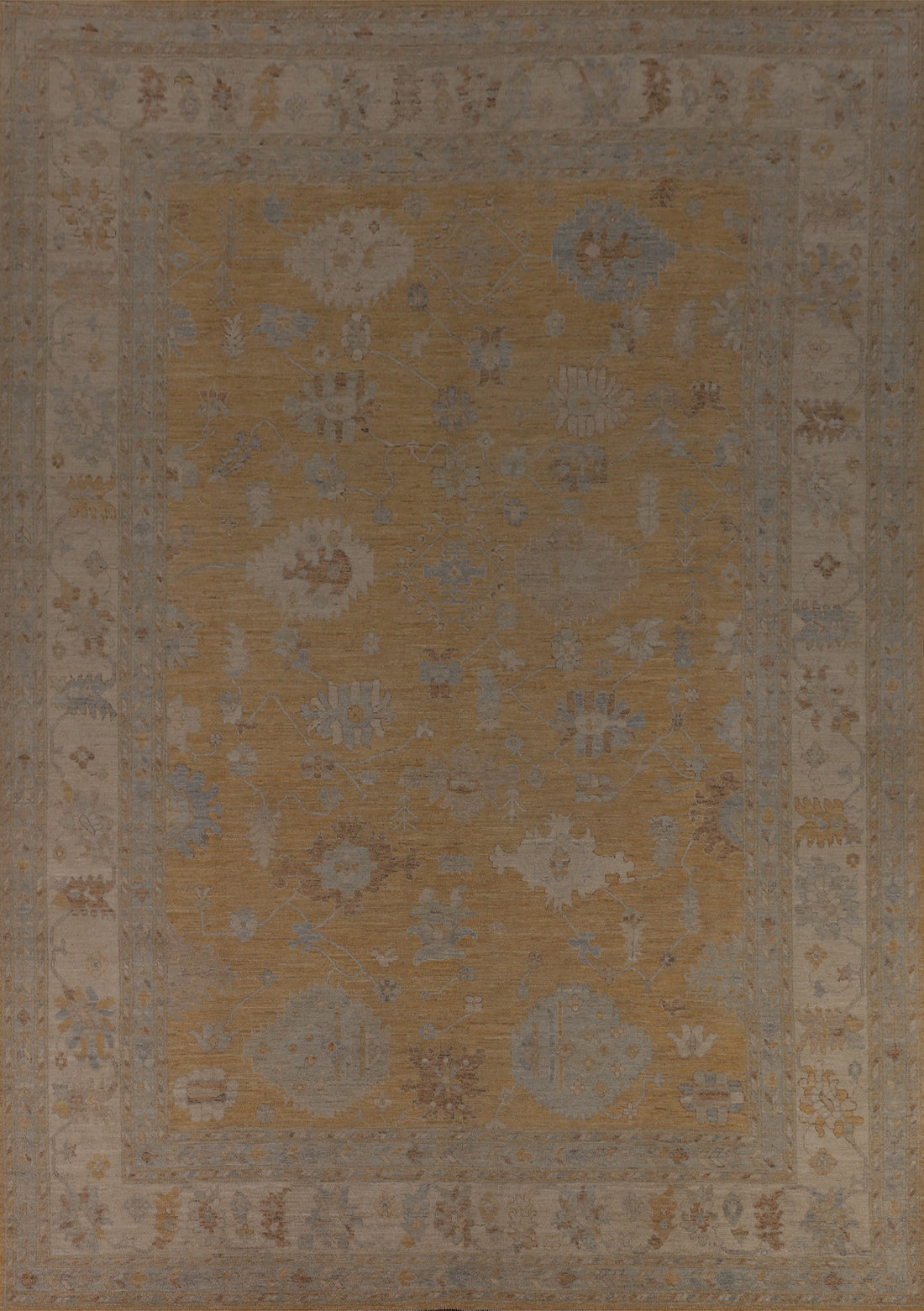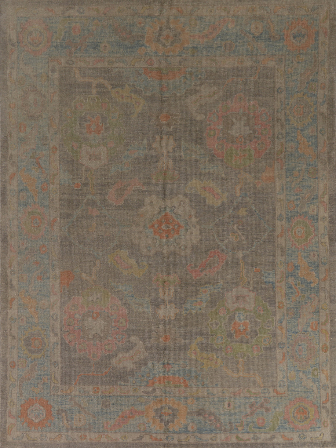 All-Over Gray Oushak Vegetable Dye Turkish Large Rug 10x14