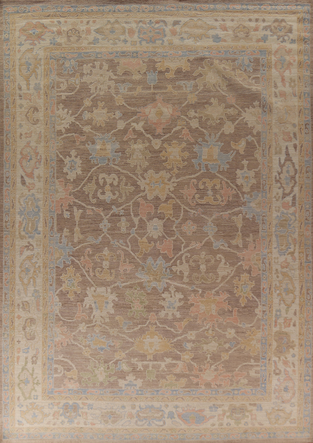 Earth Tone Oushak Vegetable Dye Turkish Large Rug 10x14