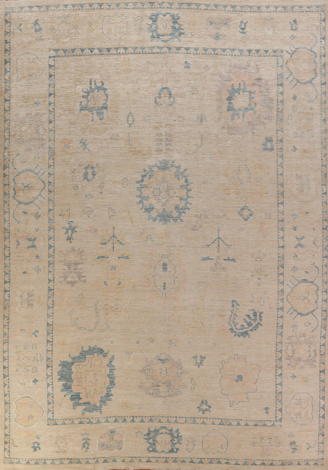 Vegetable Dye Wool Oushak Turkish Area Rug 9x12