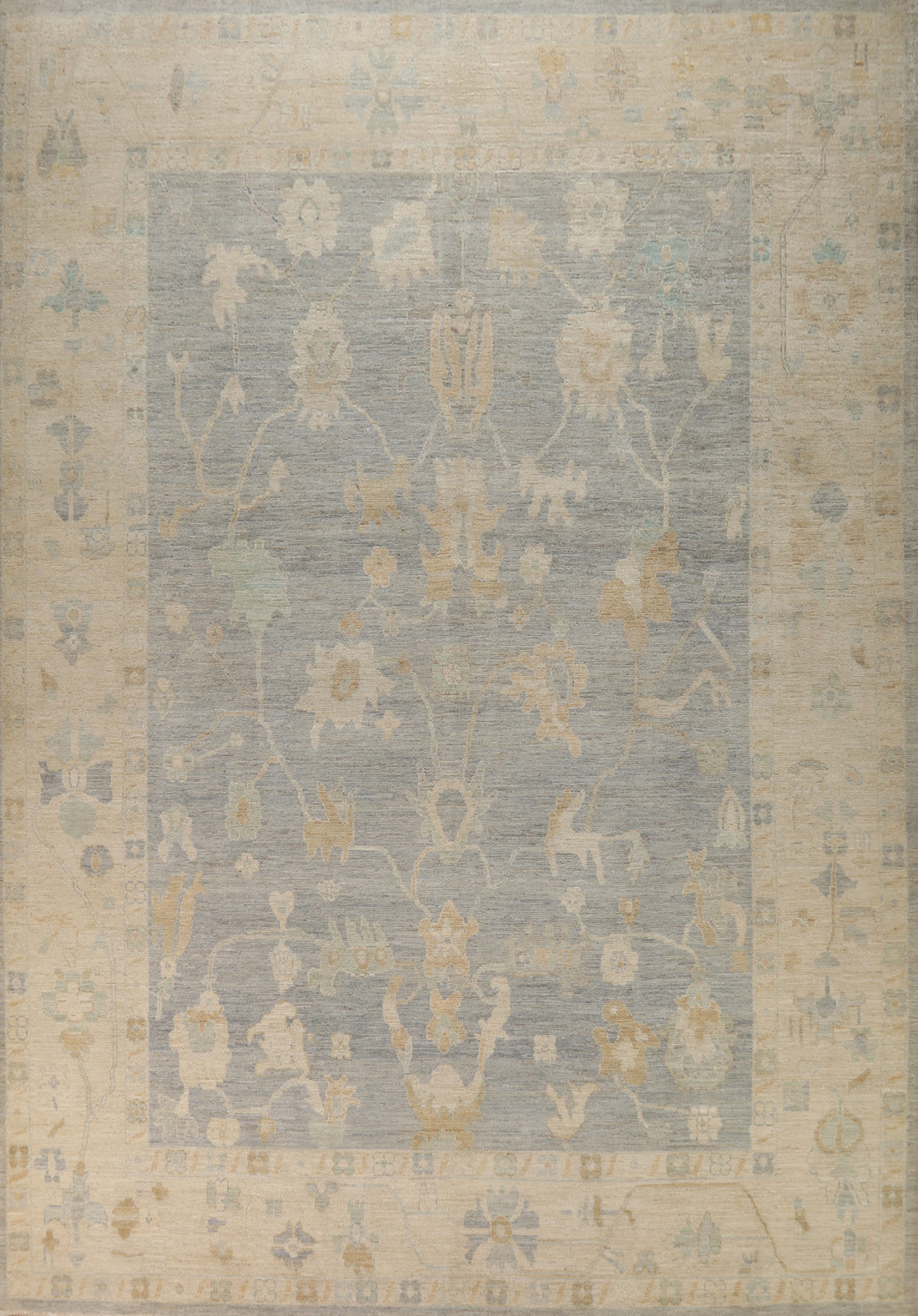 Gray Vegetable Dye Floral Oushak Turkish Large Rug 10x14