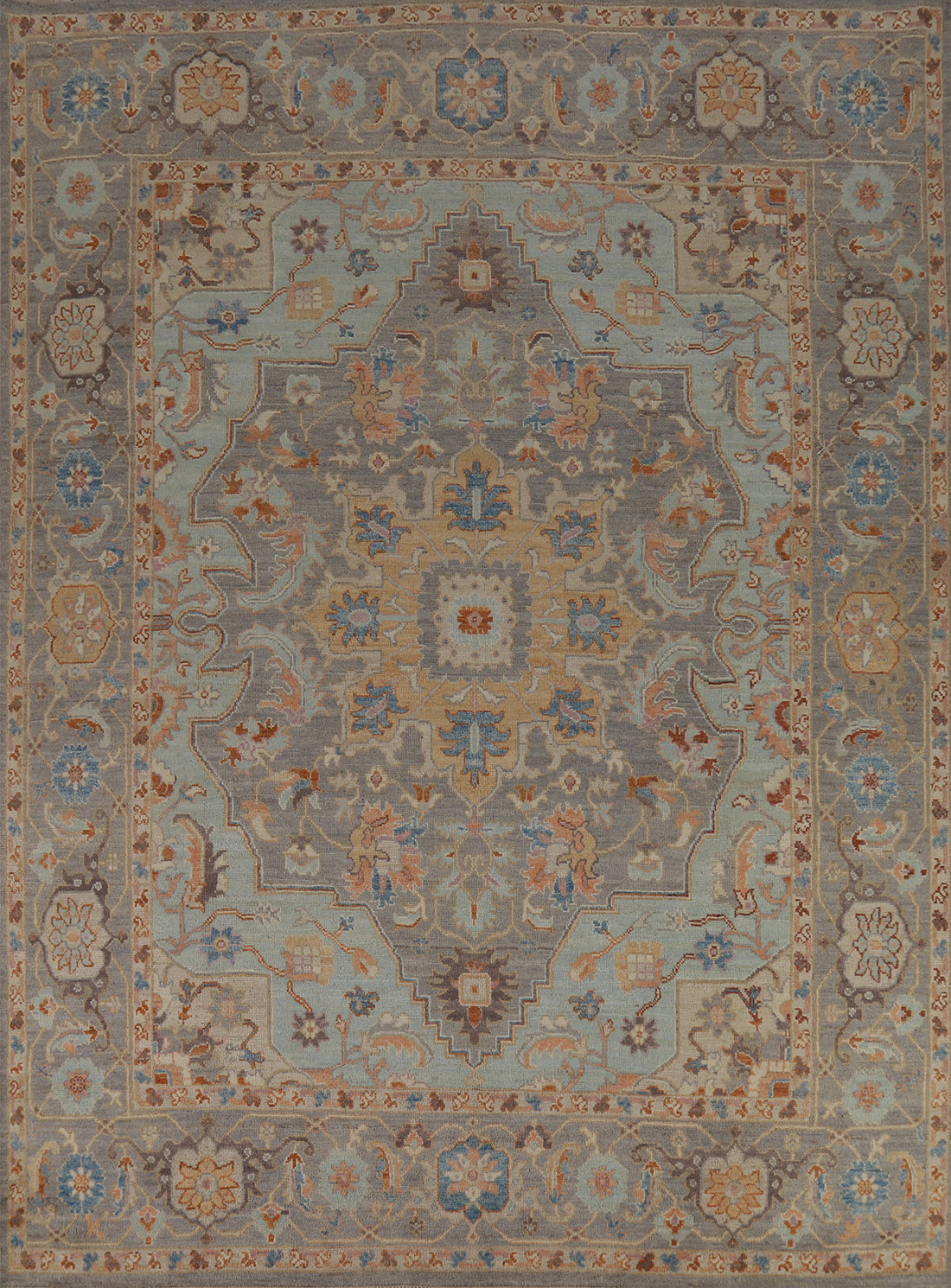 Vegetable Dye Oushak Turkish Area Rug 9x11