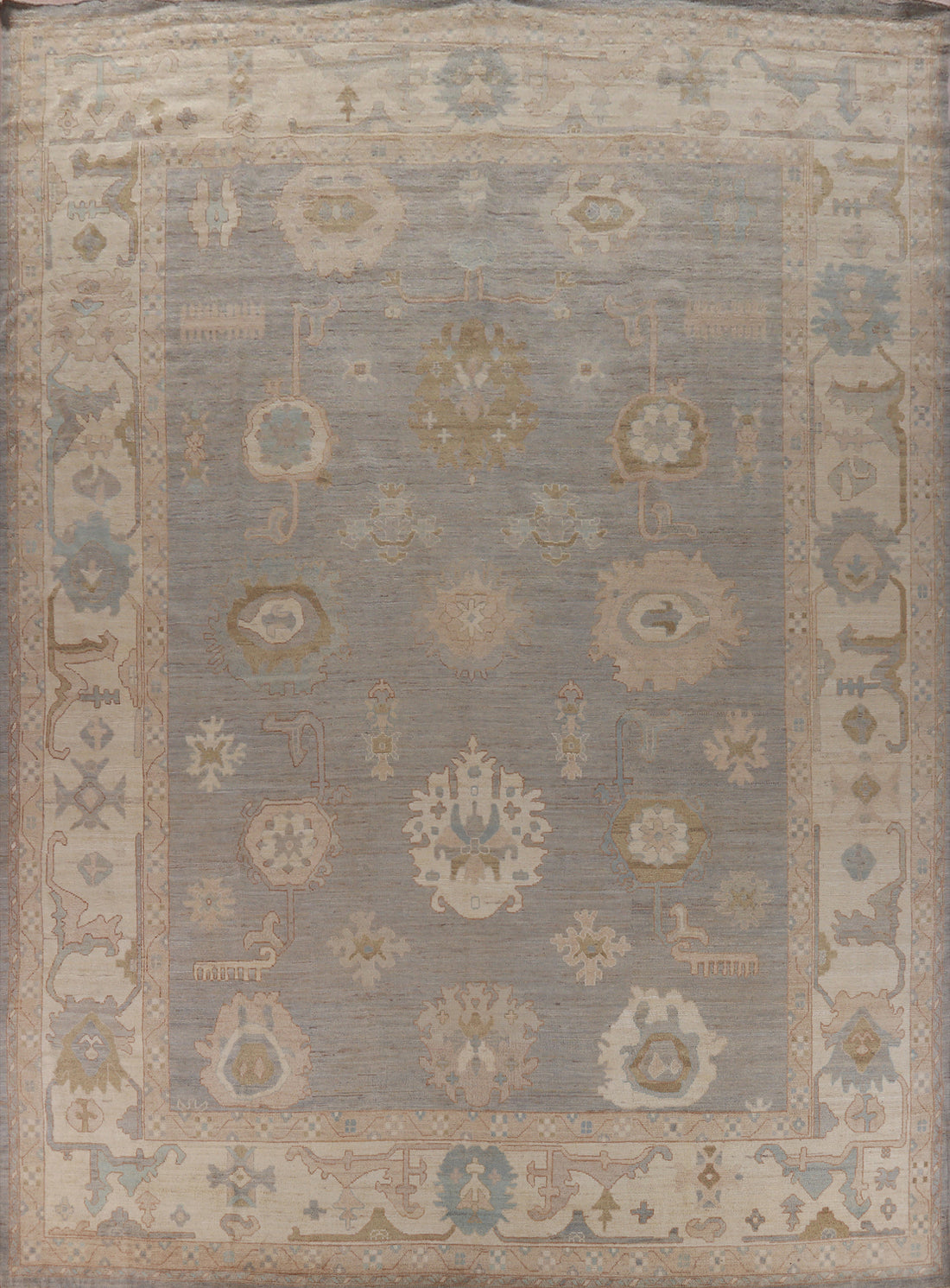 Vegetable Dye Gray Oushak Oriental Area Rug 9x12