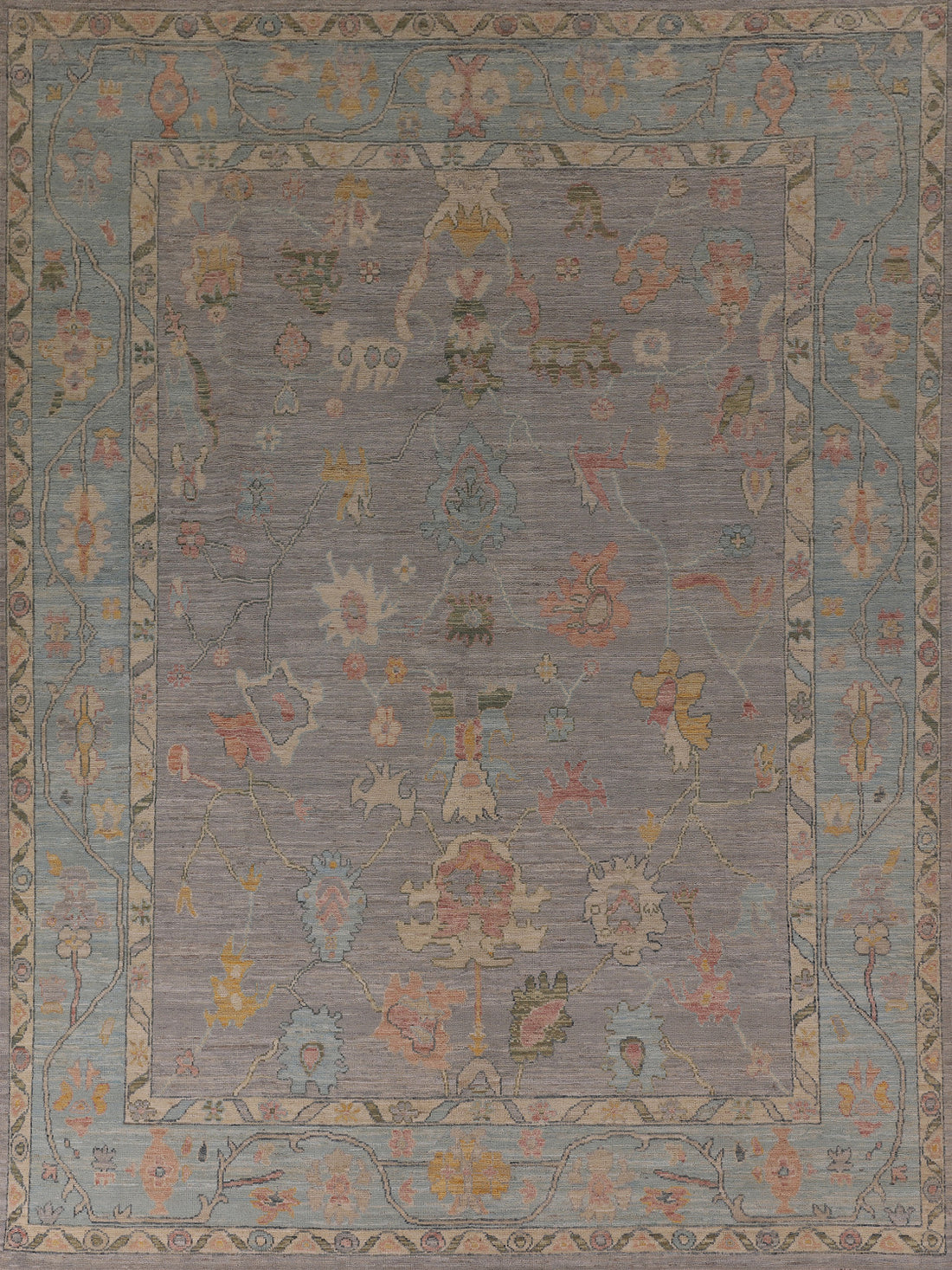 Vegetable Dye Gray Oushak Oriental Area Rug 9x12