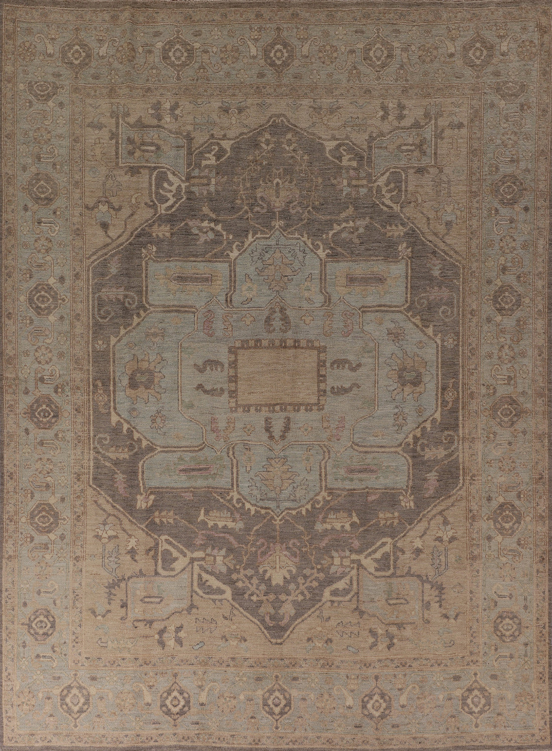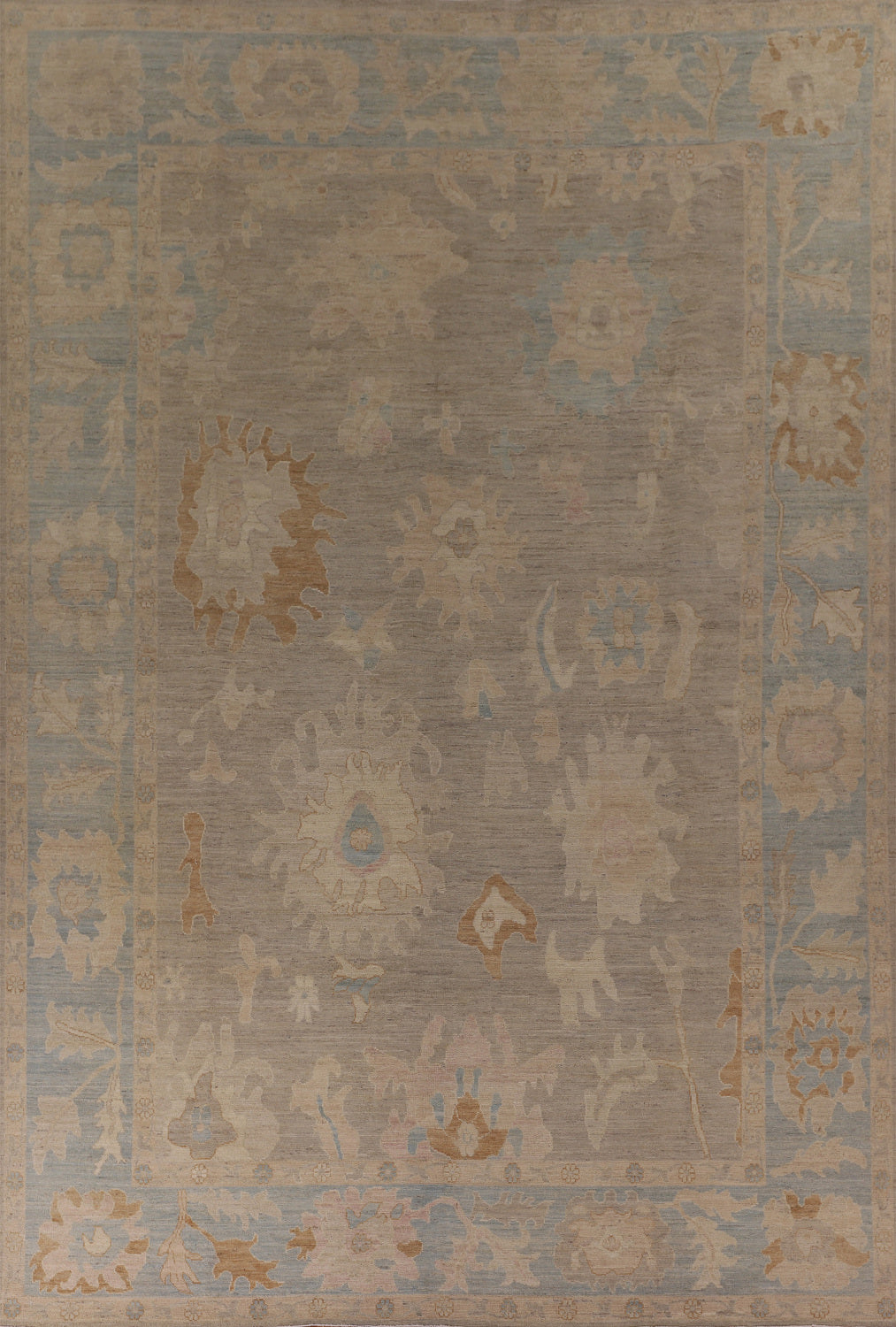 Gray Blue Oushak Vegetable Dye Area Rug 9x12