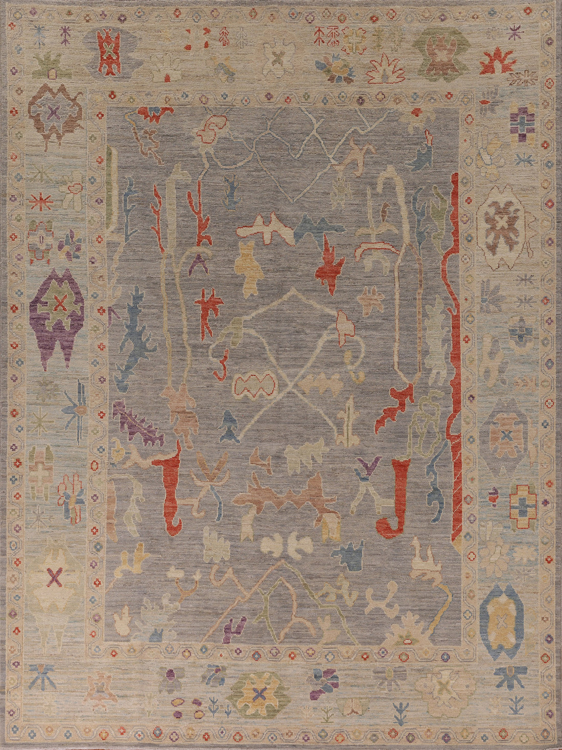 All-Over Floral Oushak Vegetable Dye Area Rug 9x12