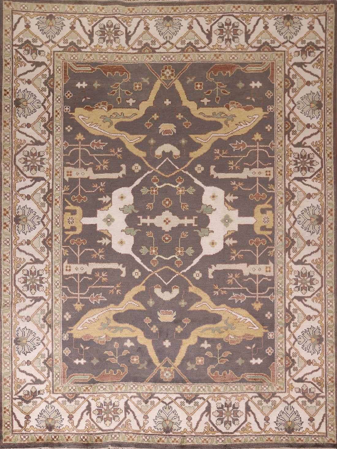 Dark Gray & Ivory Wool Oushak Oriental Area Rug 9x12