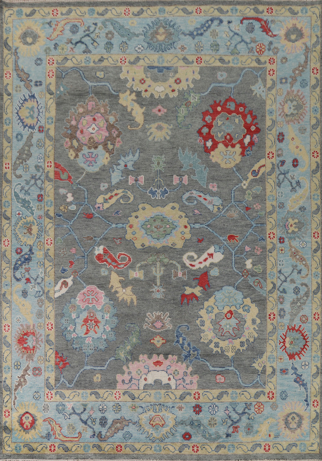 All-Over Gray Floral Oushak Indian Area Rug 9x12
