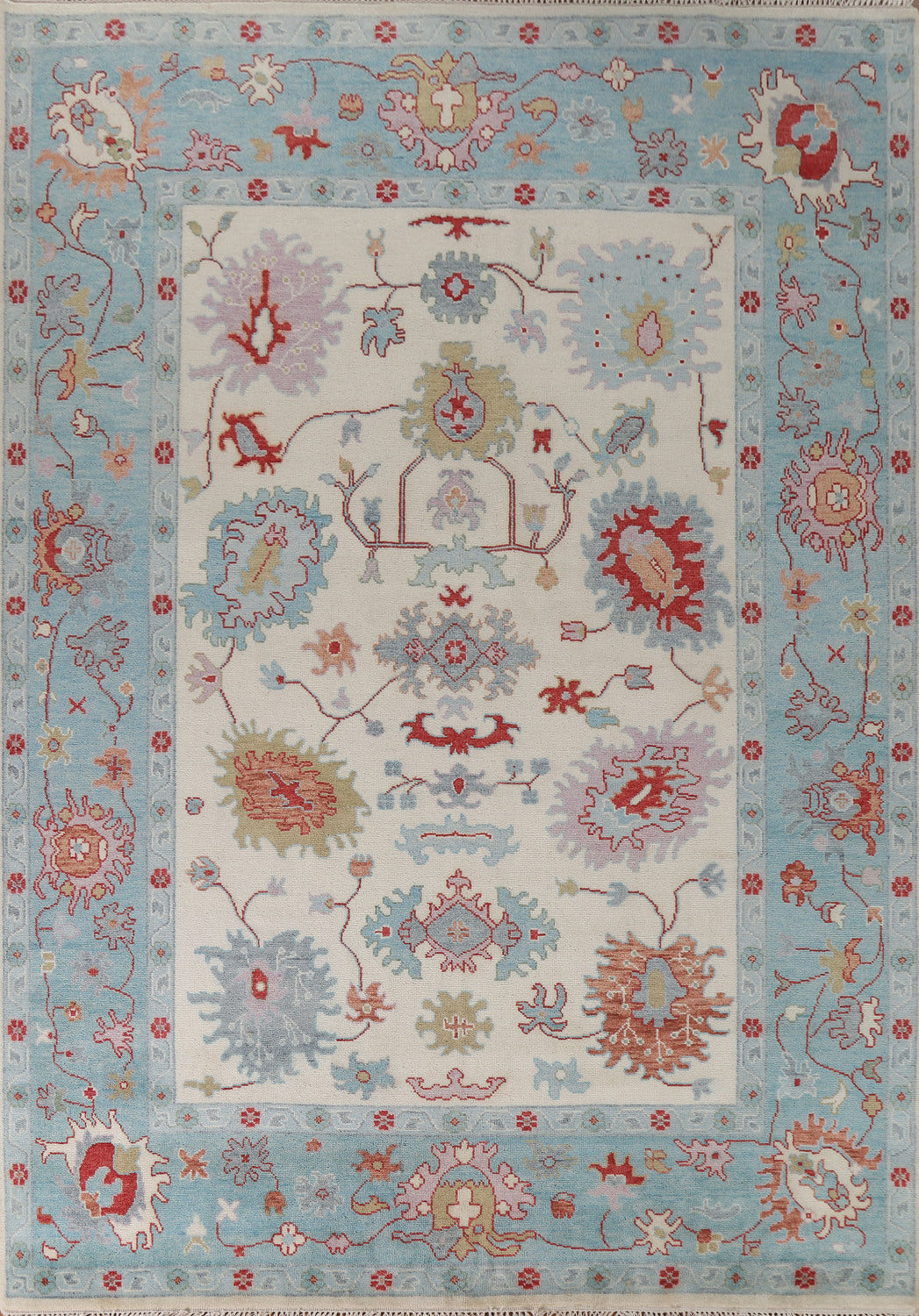 Floral Ivory & Blue Oushak Oriental Area Rug 9x12