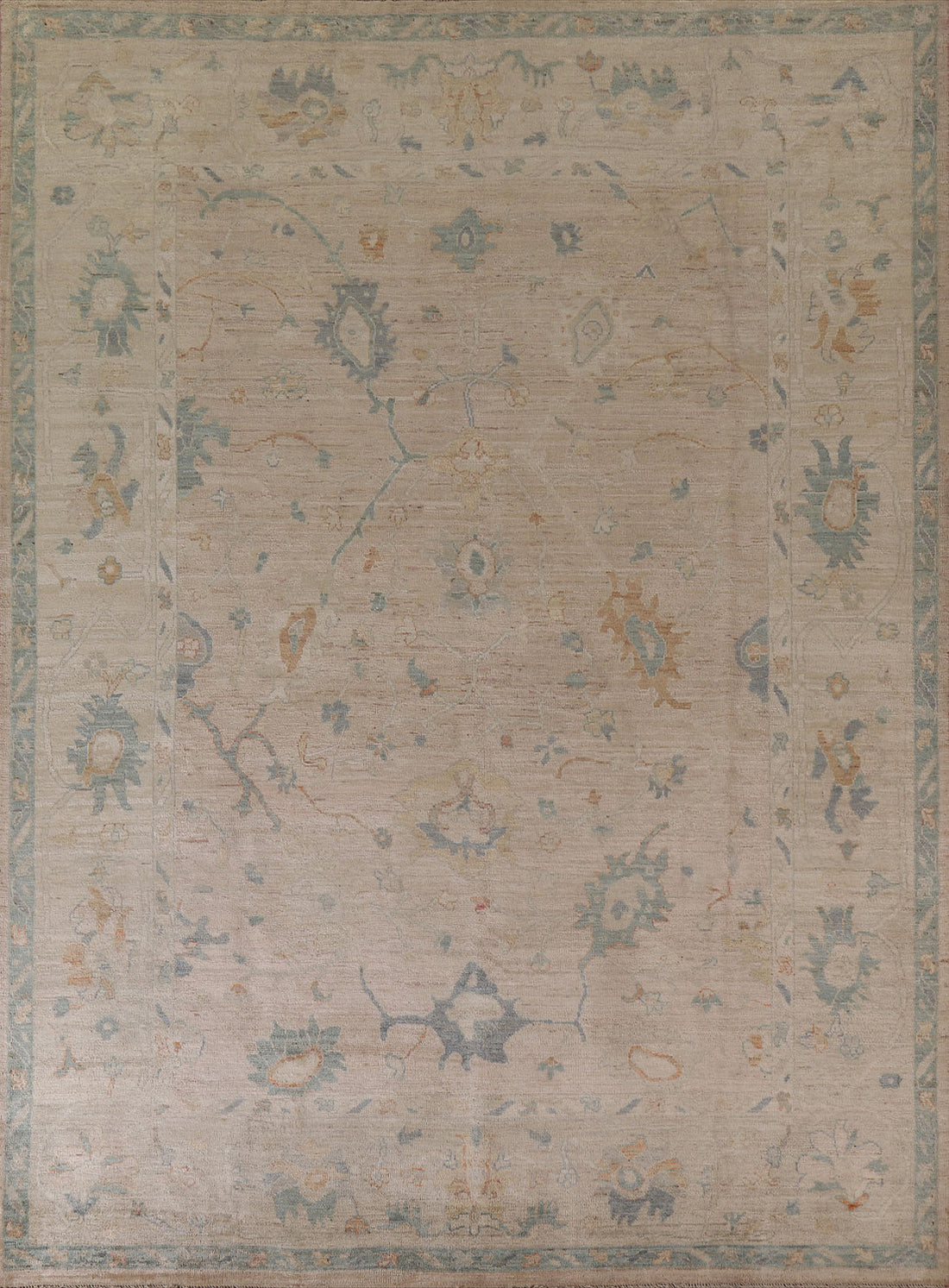 Vegetable Dye Oushak Turkish Area Rug 9x14