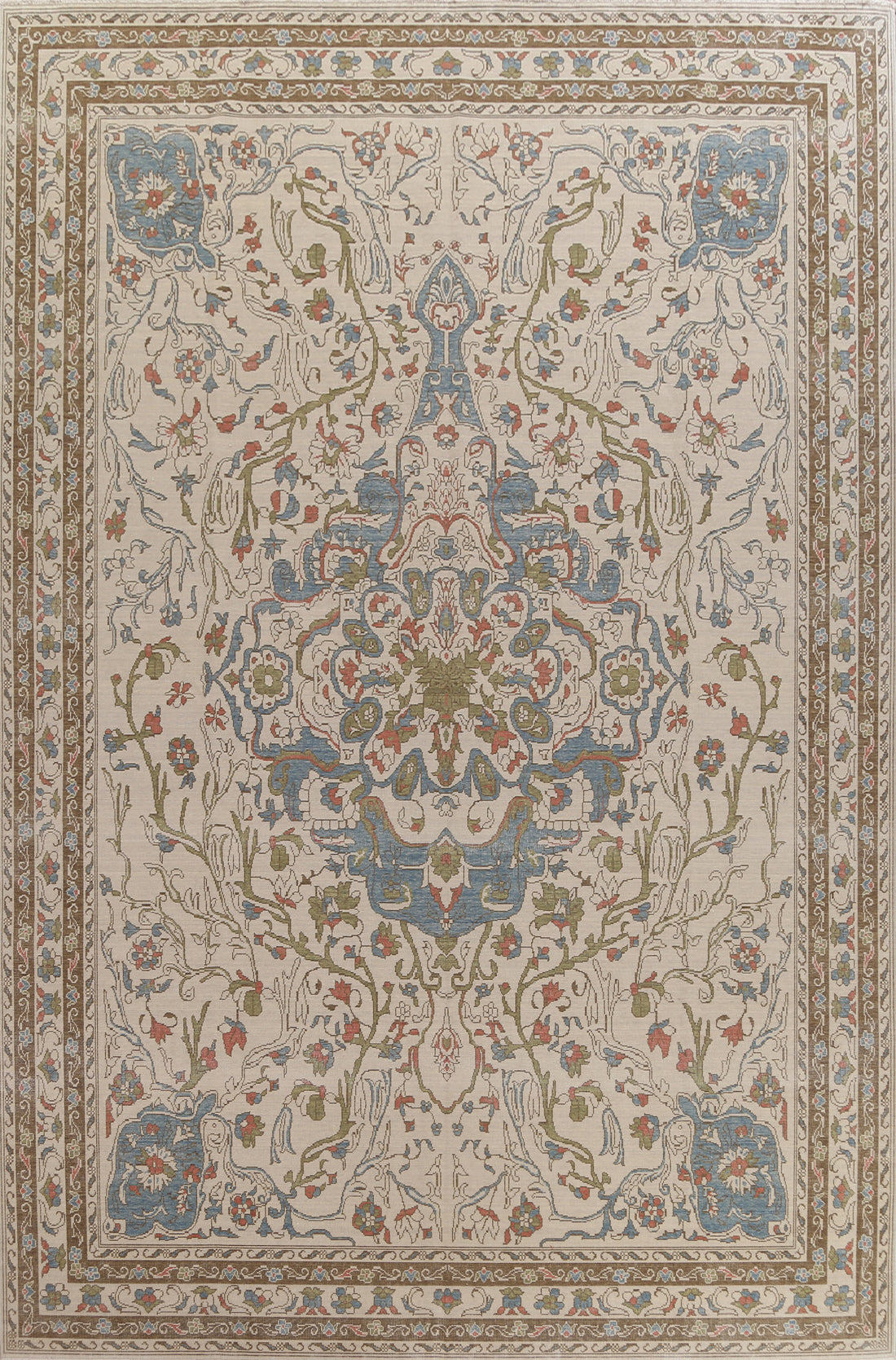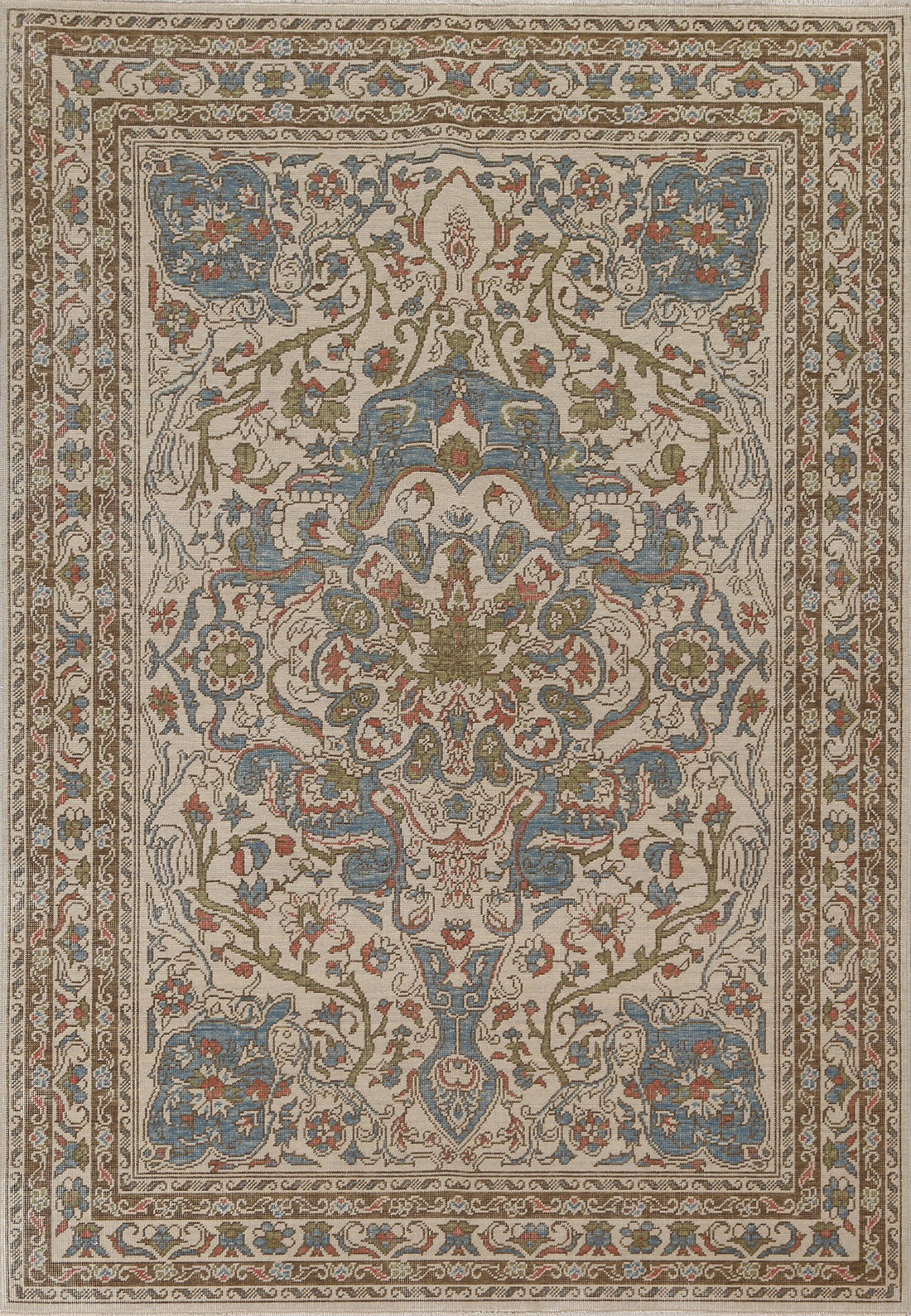 Ivory Geometric Oushak Turkish Area Rug 9x12