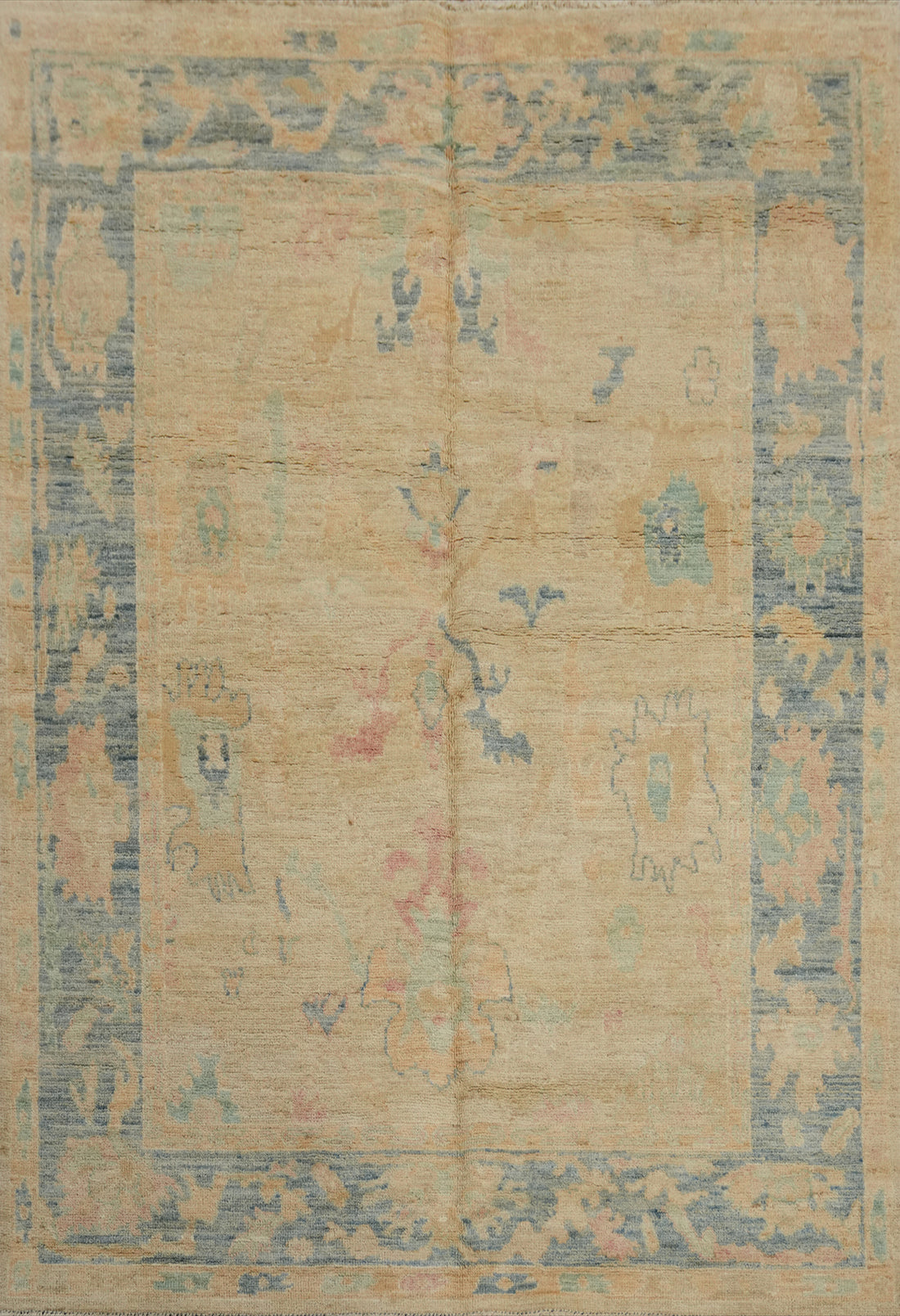 Handmade Wool Floral Oushak Turkish Rug 5x7