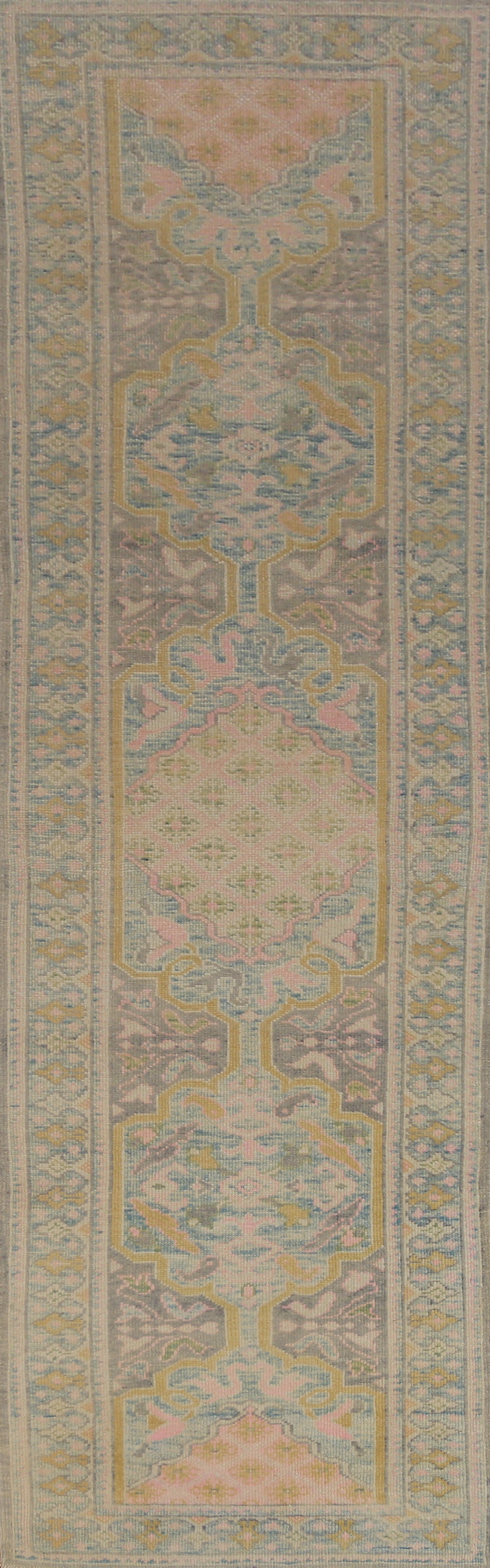 Vegetable Dye Oushak Turkish Runner Rug 3x10