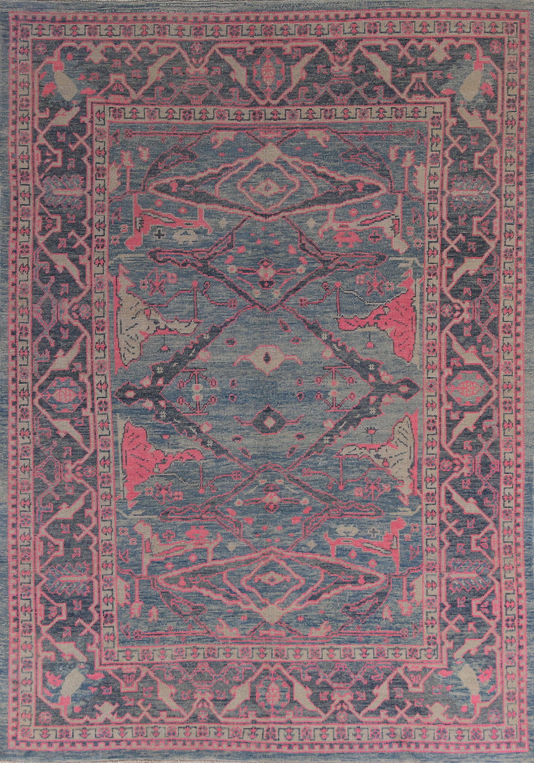 Geometric Blue Oushak Vegetable Dye Area Rug 9x13