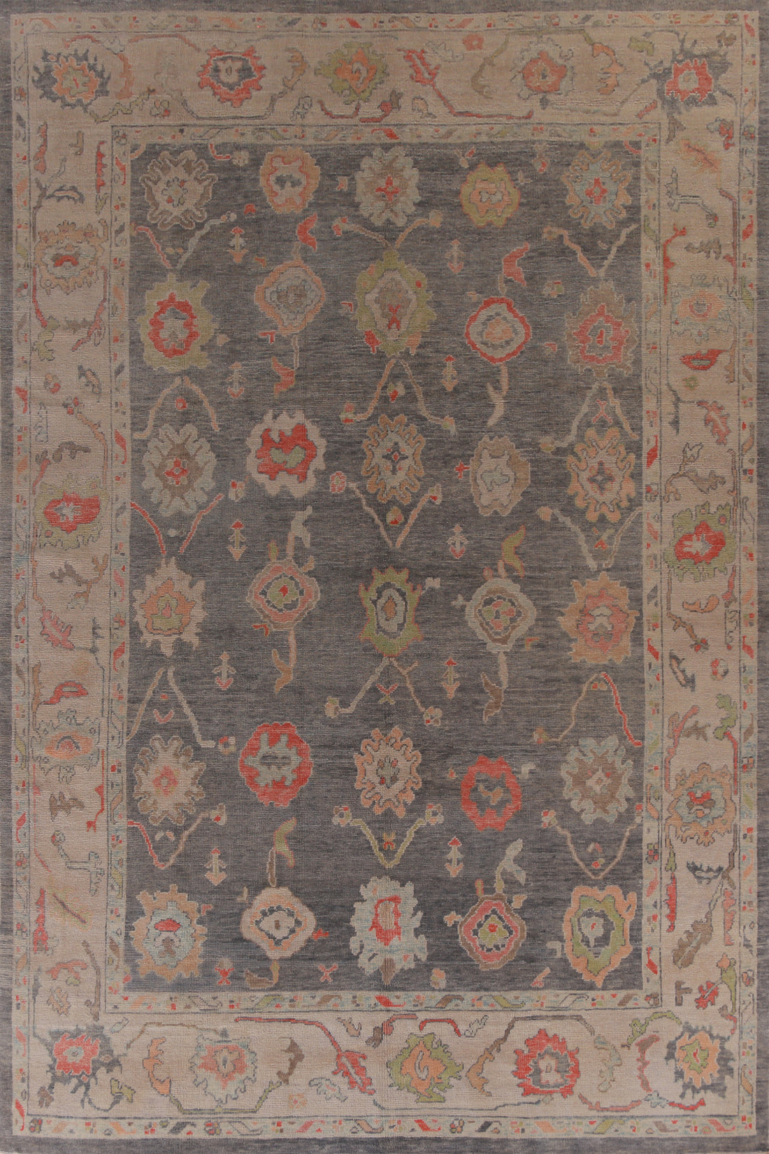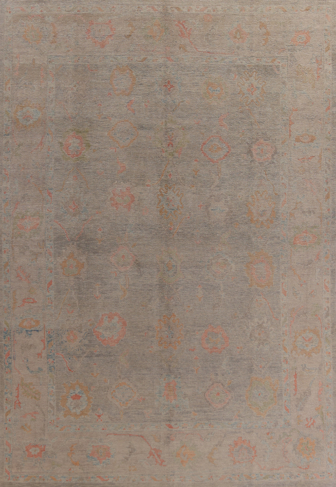 Floral Gray Wool Oushak Vegetable Dye Large Rug 10x14