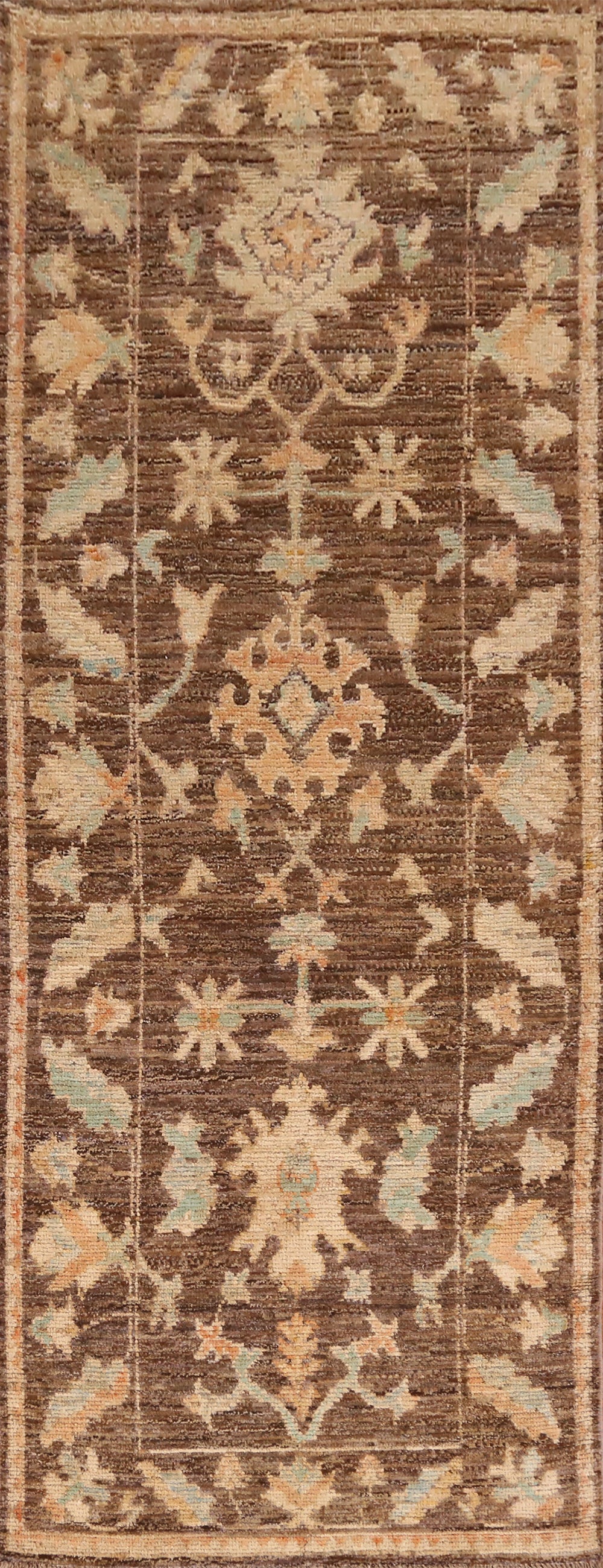 Handmade Wool Brown Oushak Vegetable Dye Runner Rug 3x12