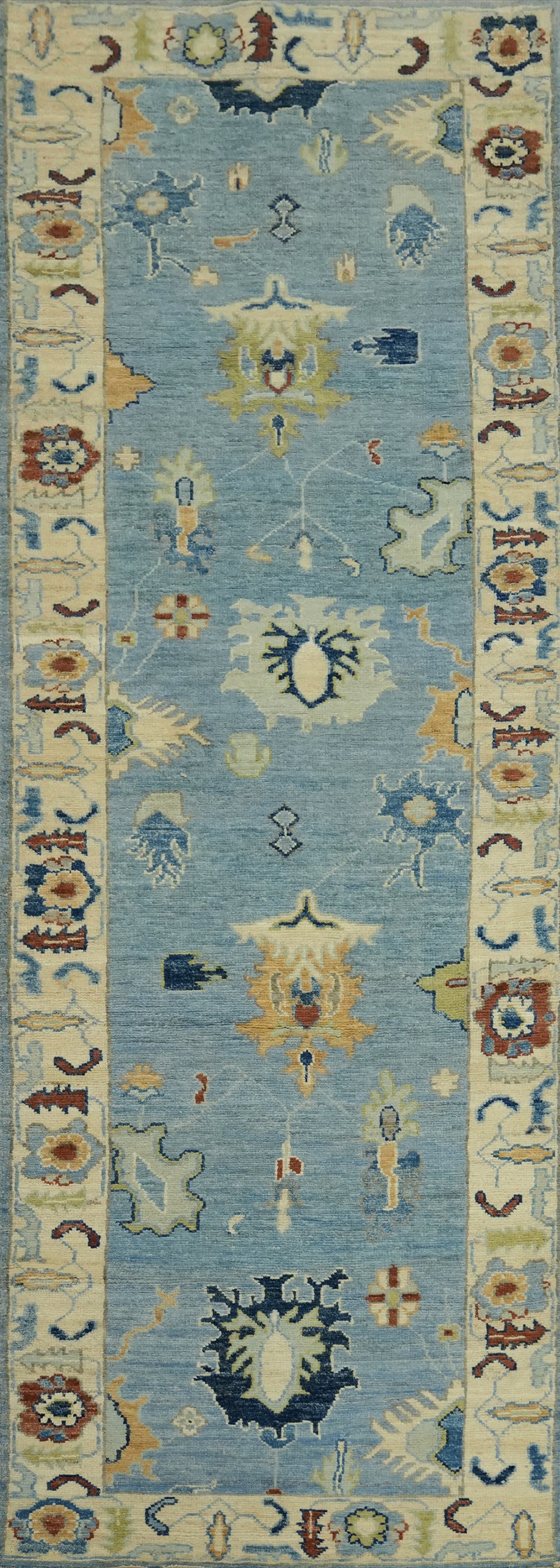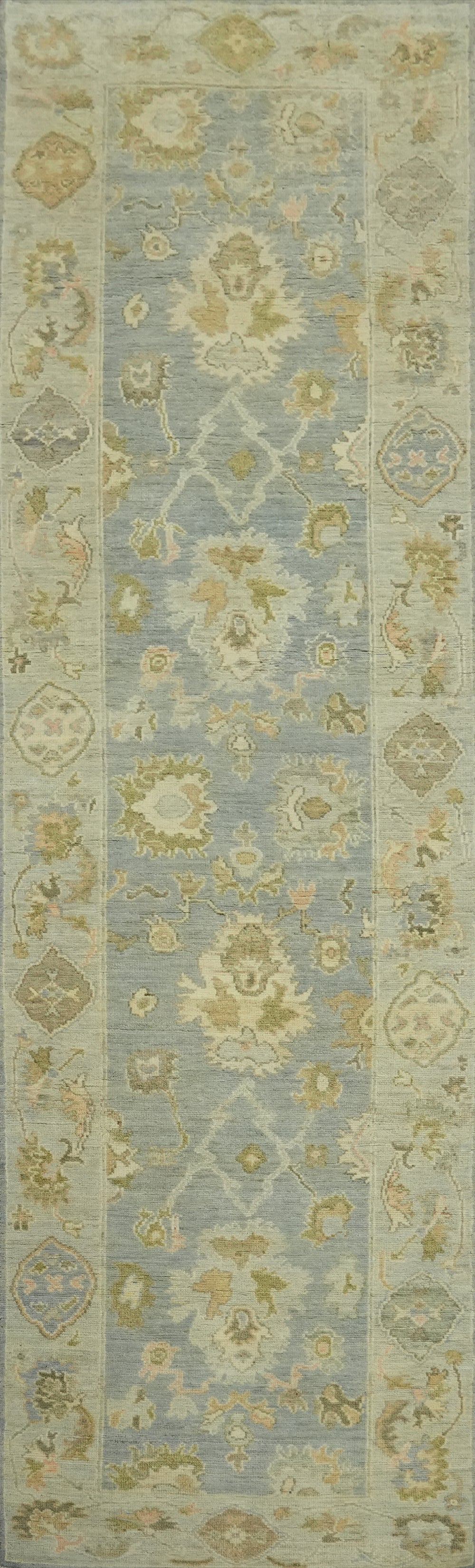 Light Blue Oushak Vegetable Dye Runner Rug 3x10