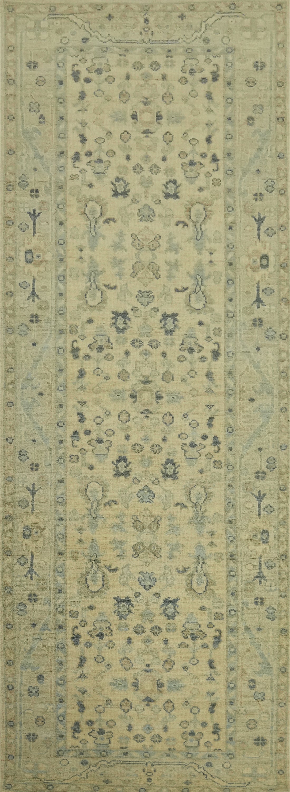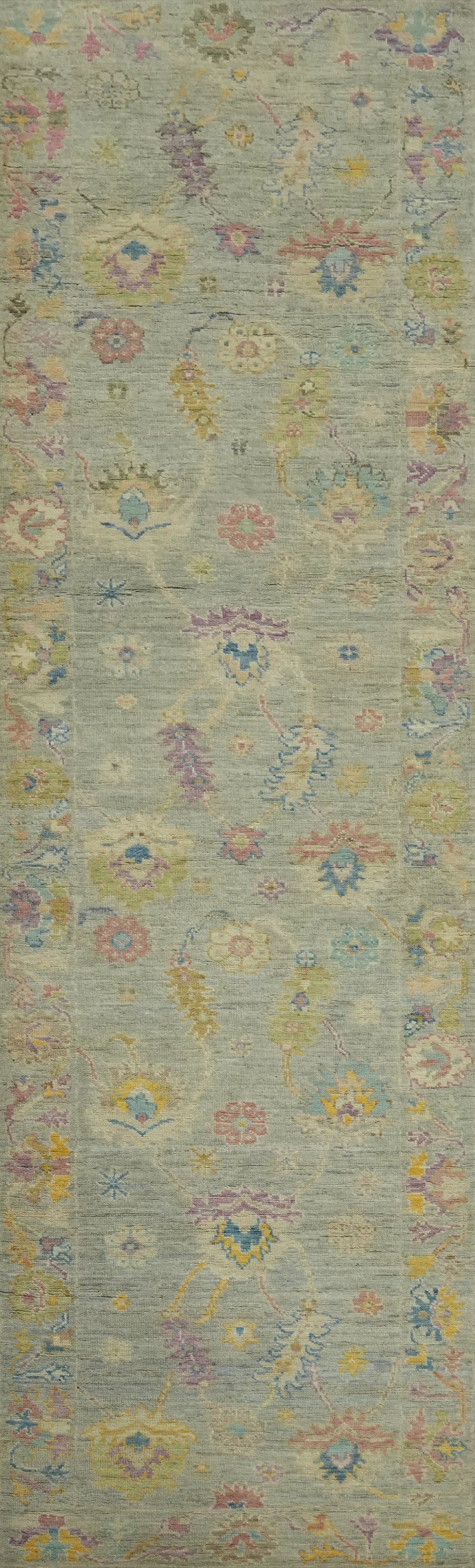 Vegetable Dye Floral Oushak Turkish Runner Rug 3x10