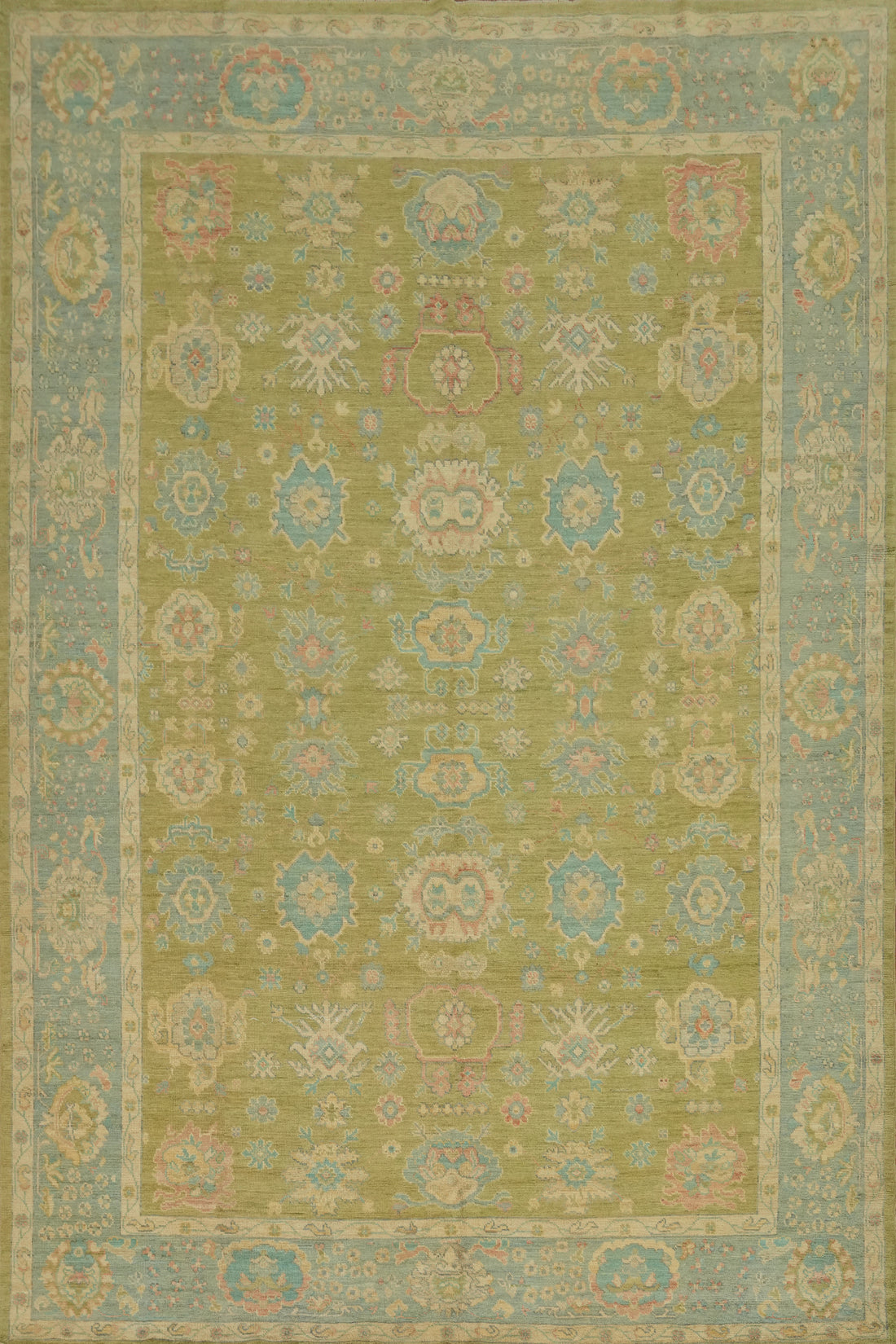 Vegetable Dye Wool Oushak Turkish Large Rug 12x14