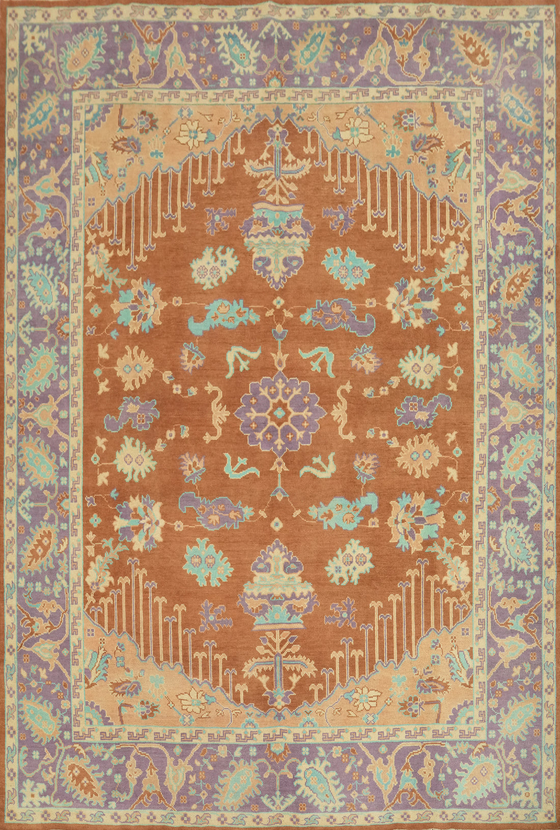 Purple Wool Floral Oushak Vegetable Dye Area Rug 9x12