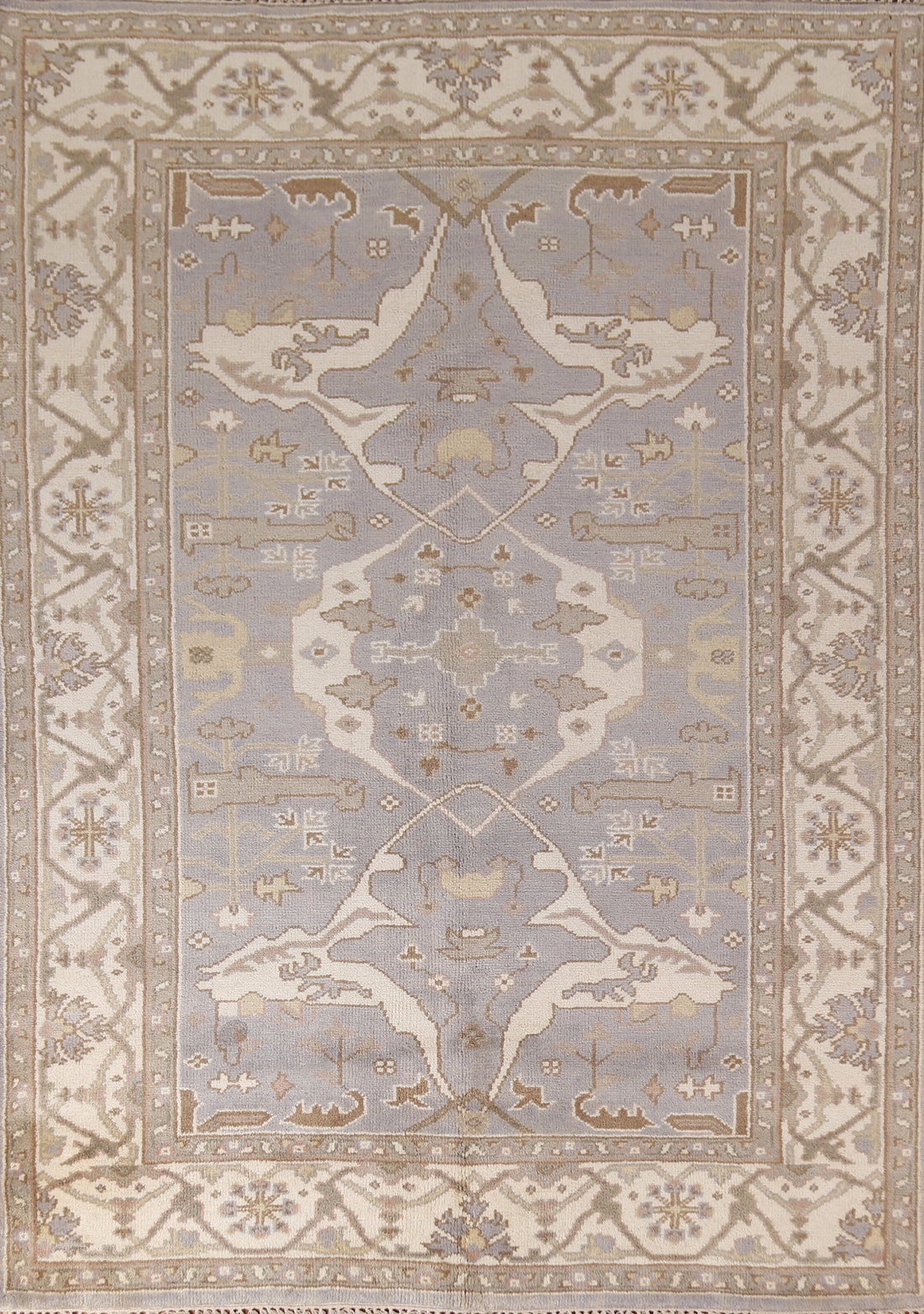 Silver Gray Wool Oushak Indian Area Rug 6x9