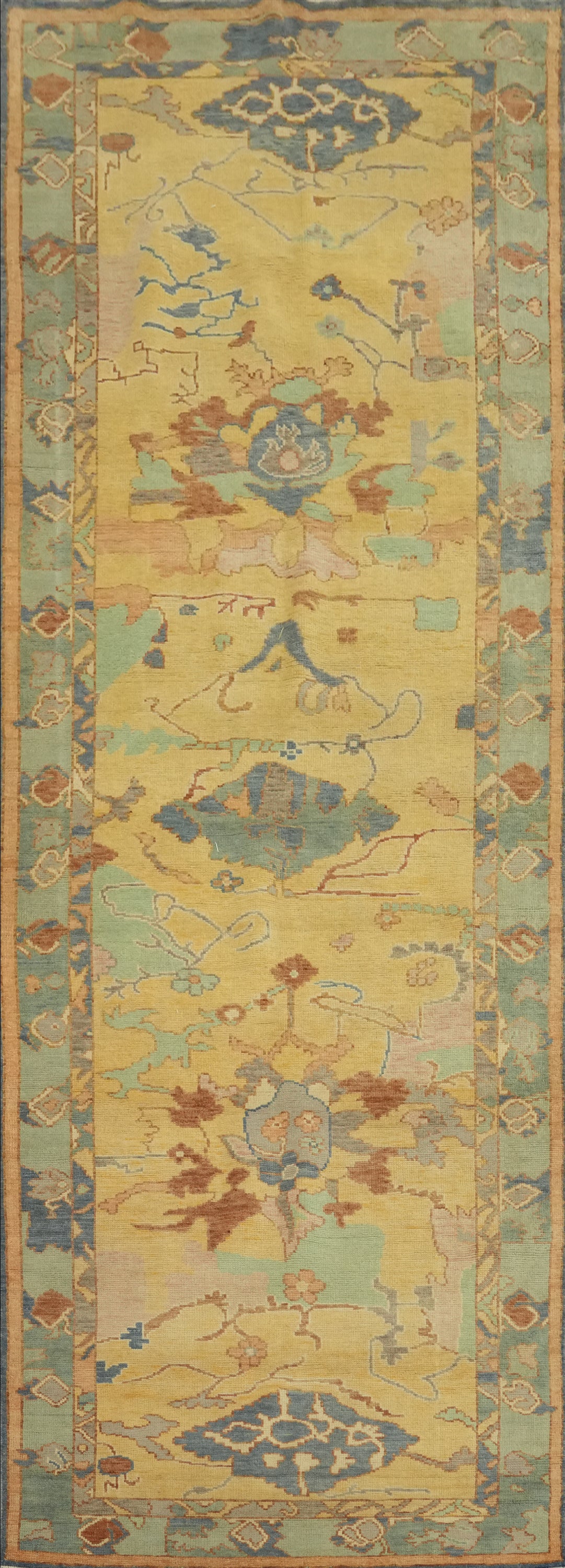Vegetable Dye Wool Oushak Turkish Runner Rug 3x12