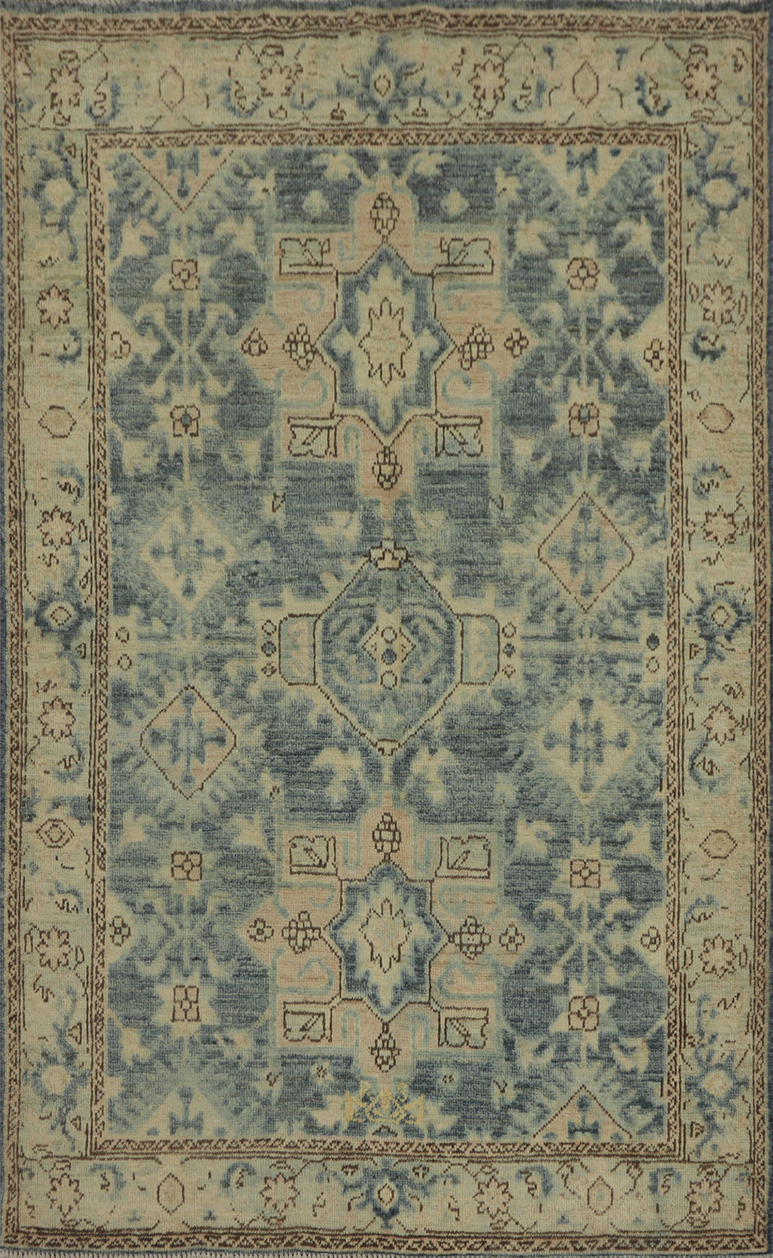 Vegetable Dye Oushak Blue Geometric Rug 4x6