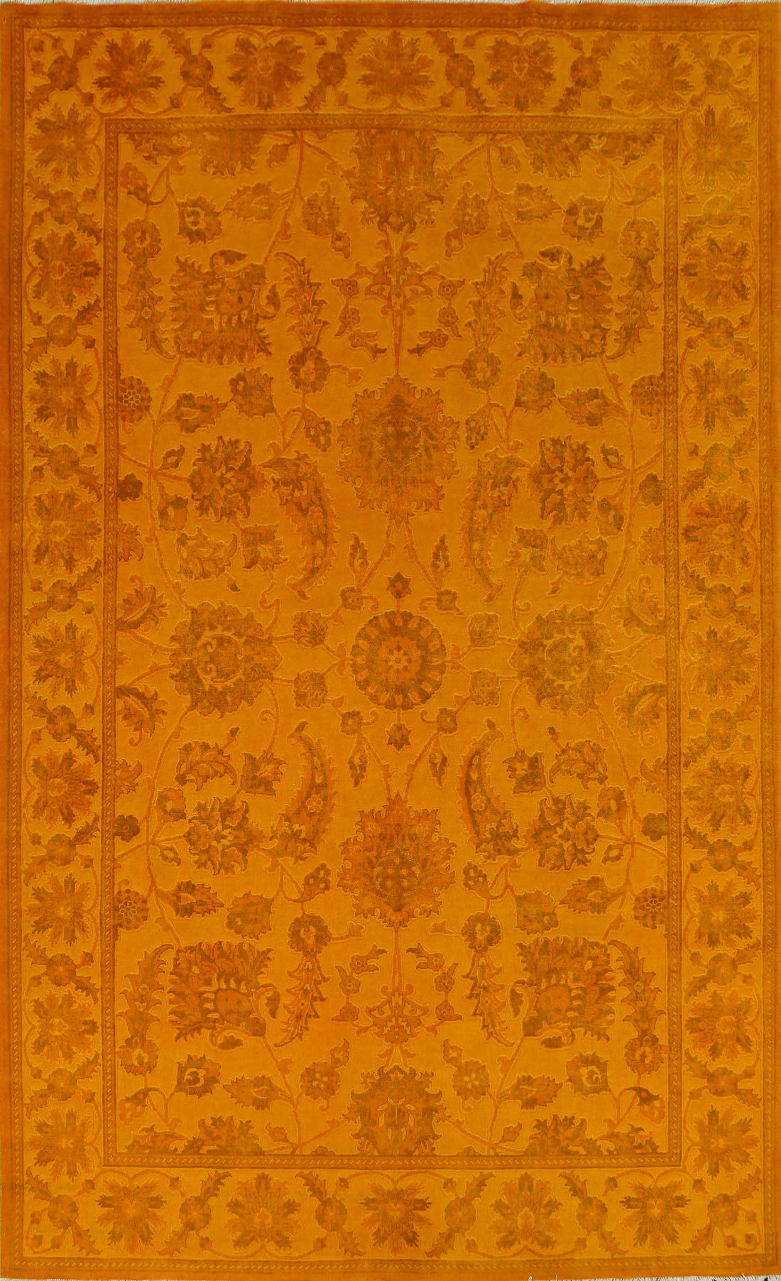 Vegetable Dye Carved Yellow Oushak Chobi Oriental Area Rug 6x9