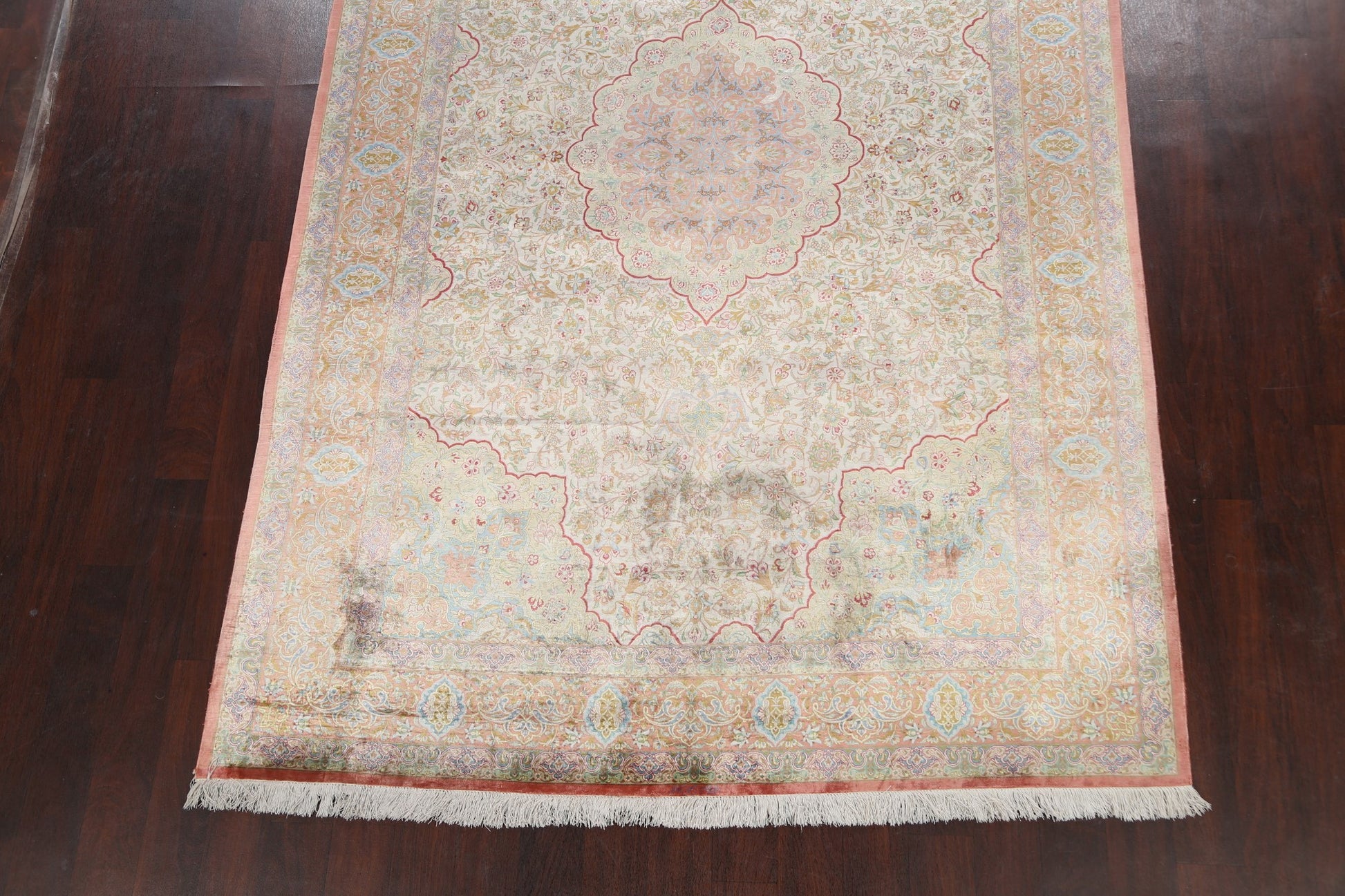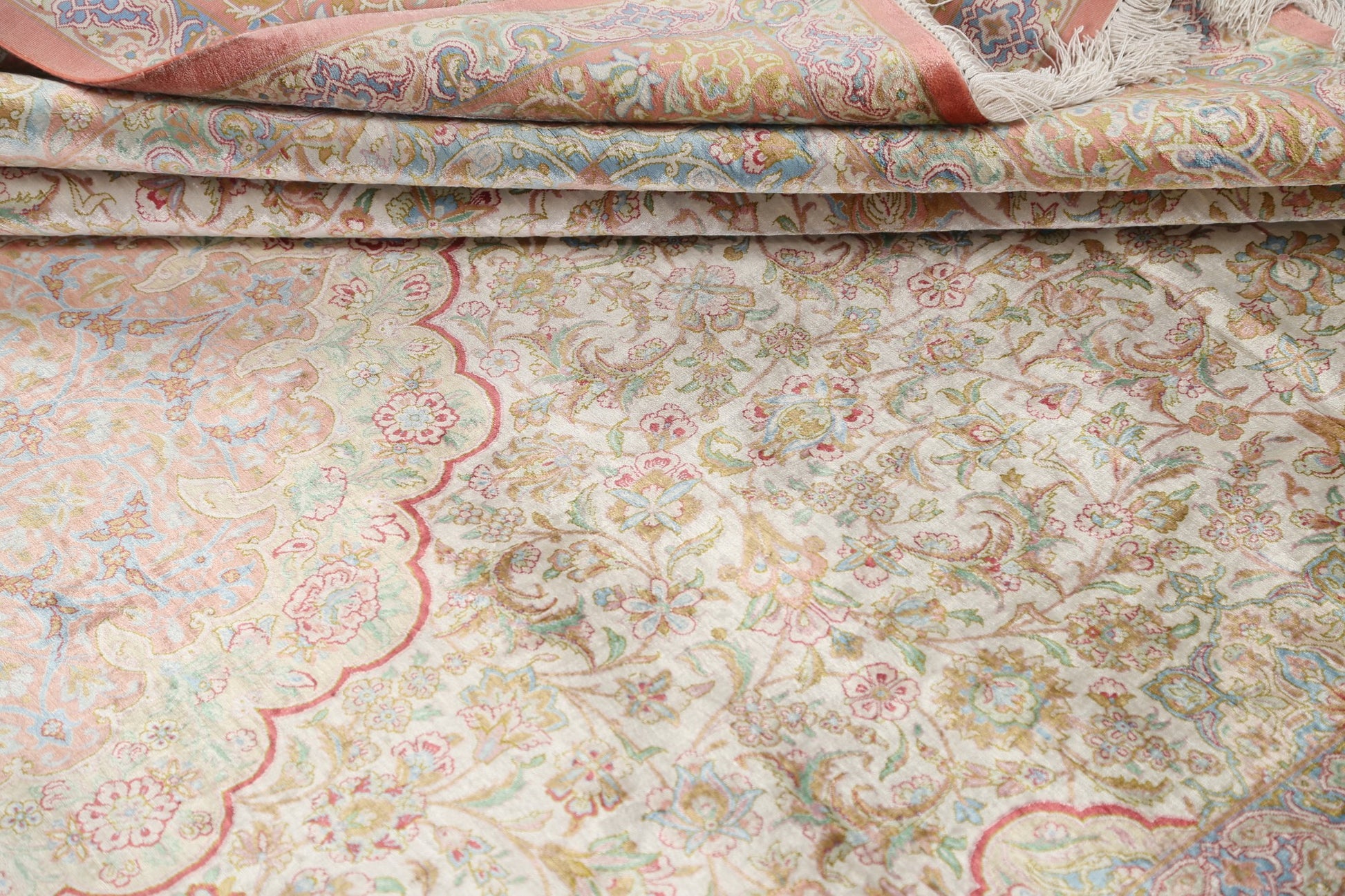 100% Silk Antique Floral Qum Persian Area Rug 6x10