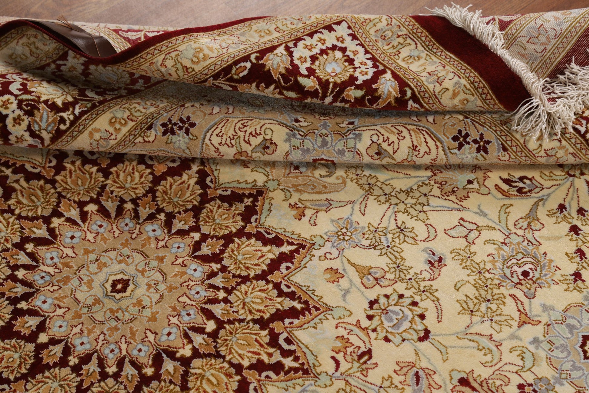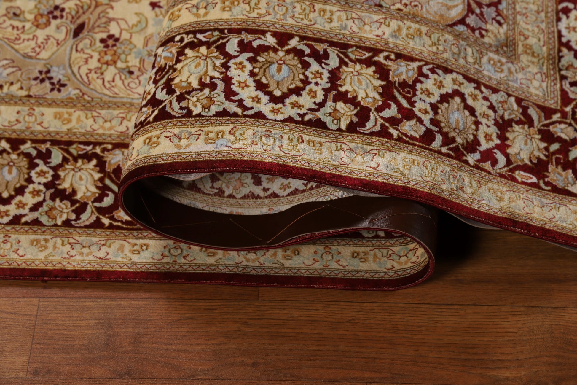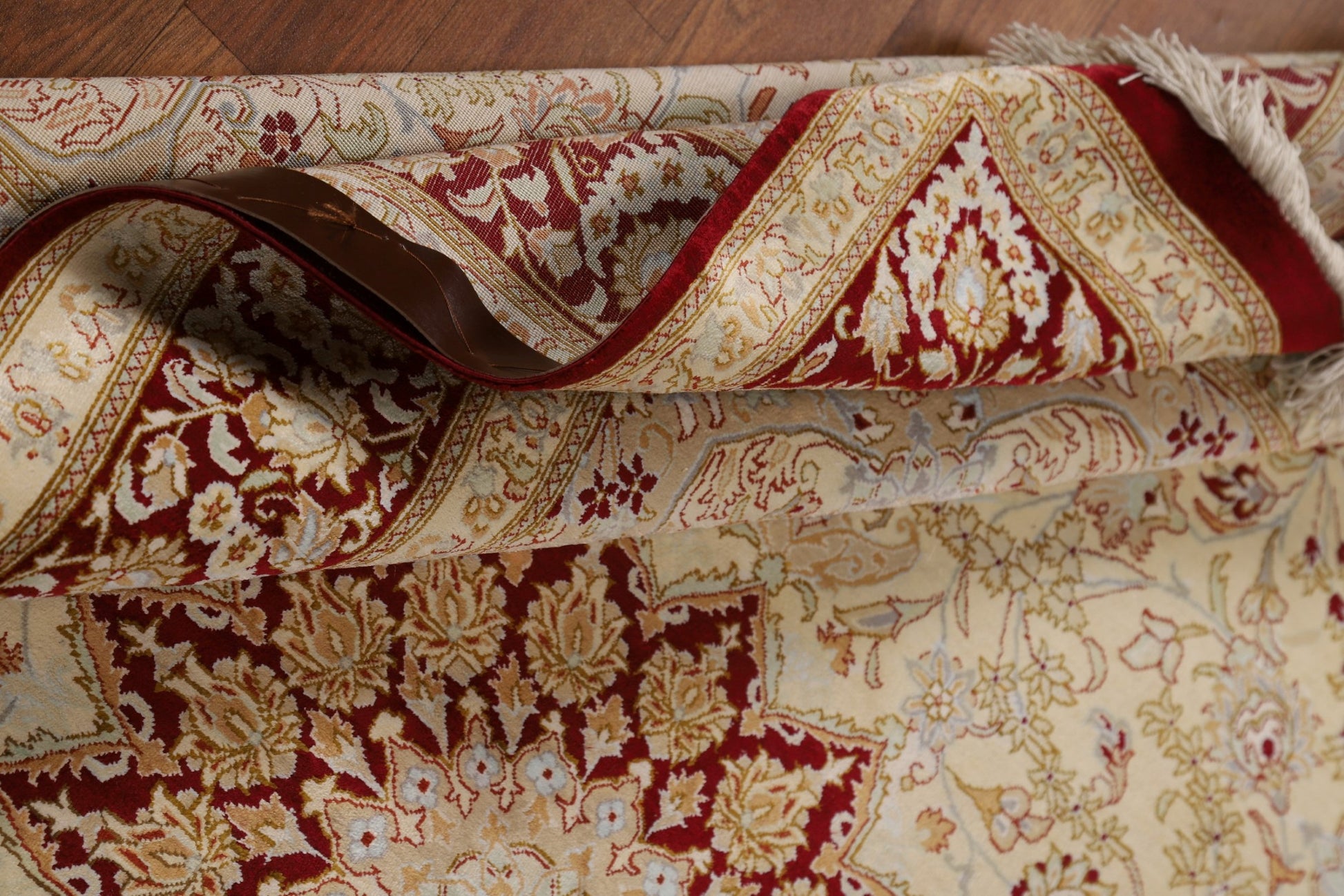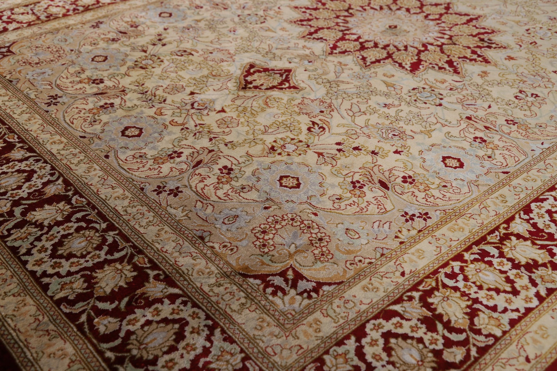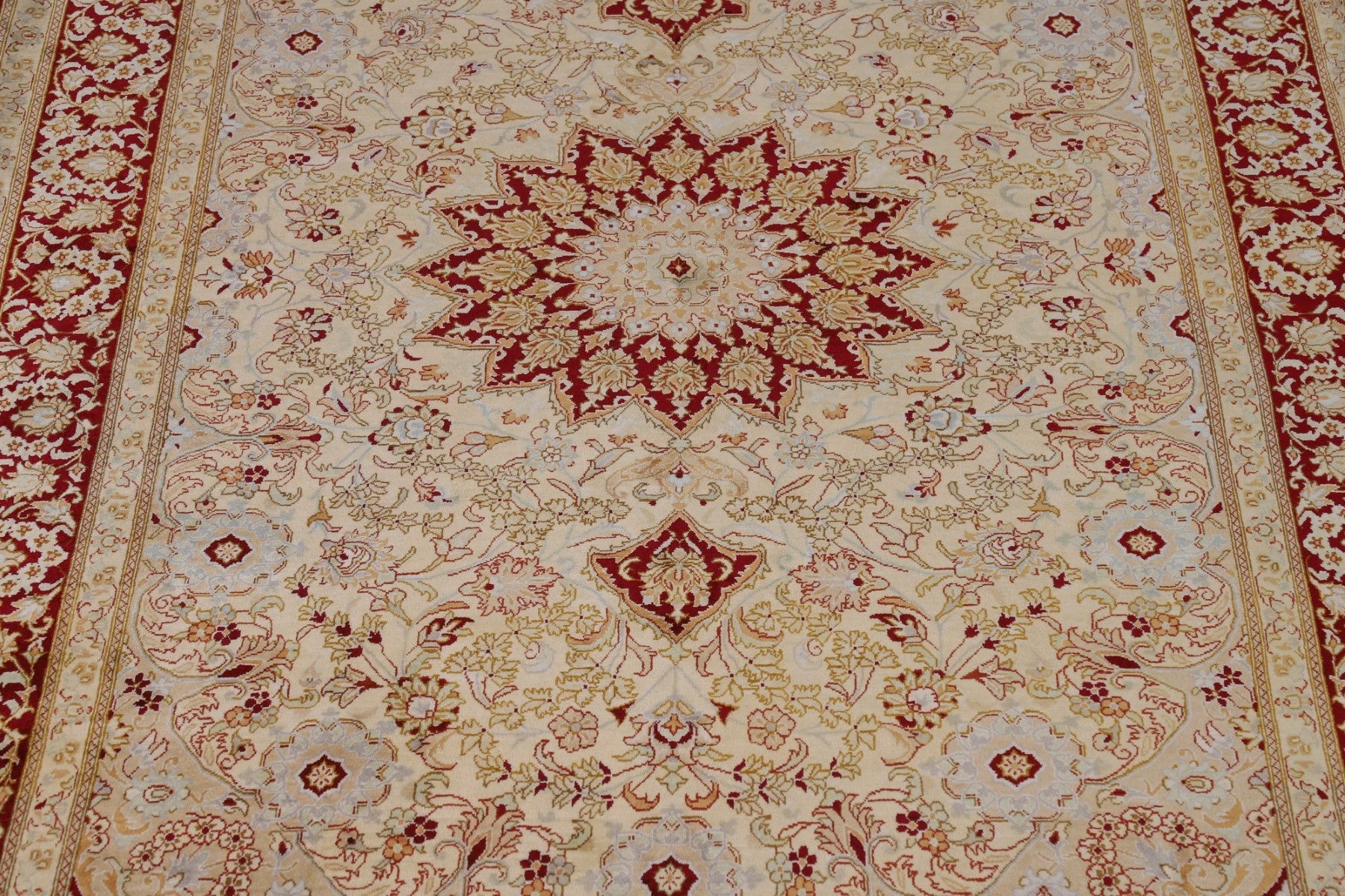 A Beautiful Genuine Persia ( Persia ) Qum rug is Hand Knotted by skillful weavers in Persia ( Persia ) with Silk Material. This rug is in New, First Quality condition. dimensions are 6' 3'' X 4' 4'' in foot and 191 X 132 in centimeter. the primary color is Beige & Ivories.