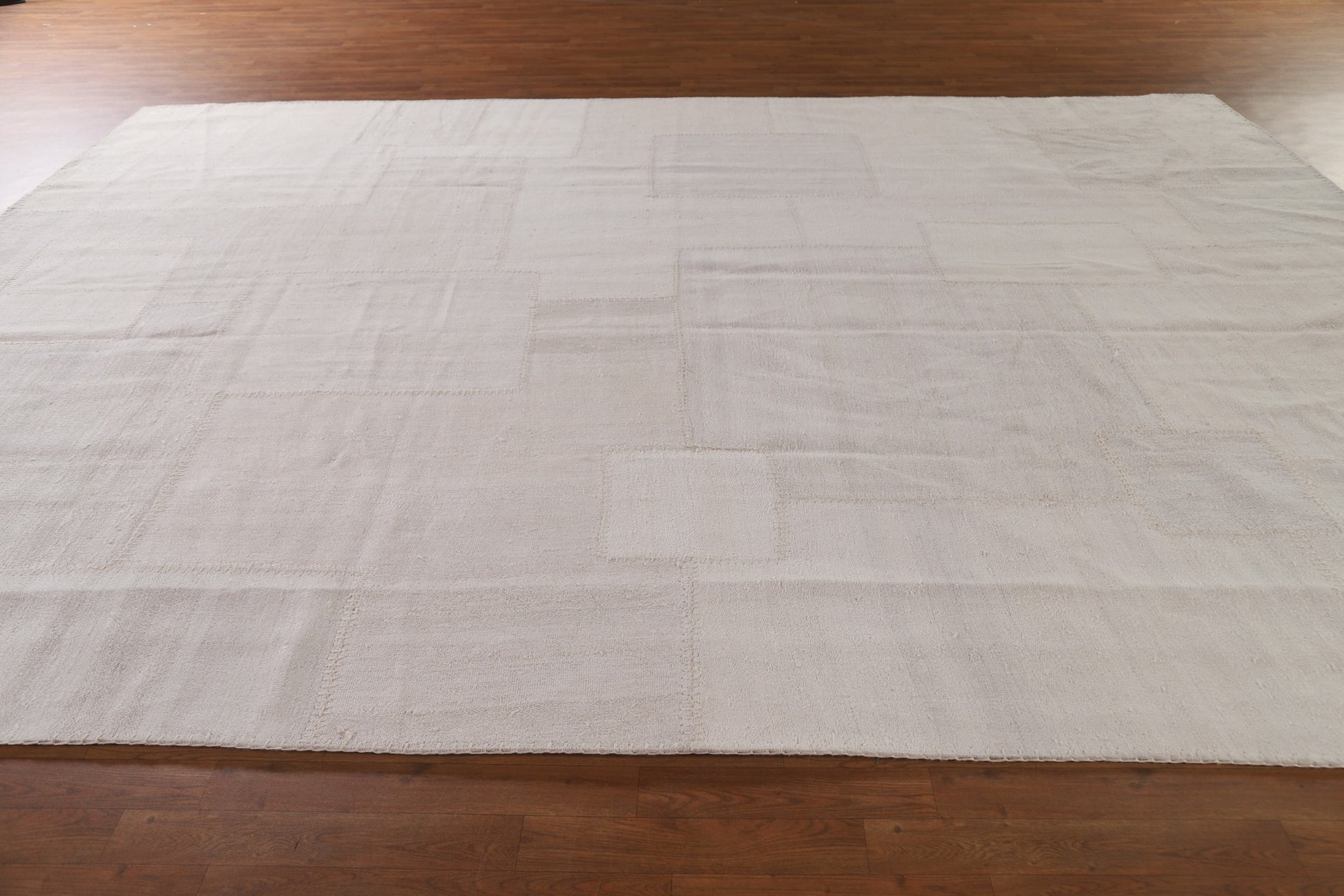 A Beautiful Genuine Turkey Kilim rug is Hand Woven by skillful weavers in Turkey with 100% Silk Material. This rug is in New, First Quality condition. dimensions are 12' 10'' X 9' 8'' in foot and 391 X 295 in centimeter. the primary color is Beige & Ivories.