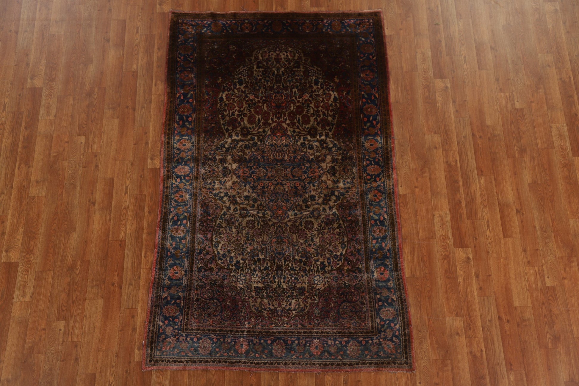 100% Silk Pre-1900 Antique Kashan Mohtasham Persian Rug 4x7