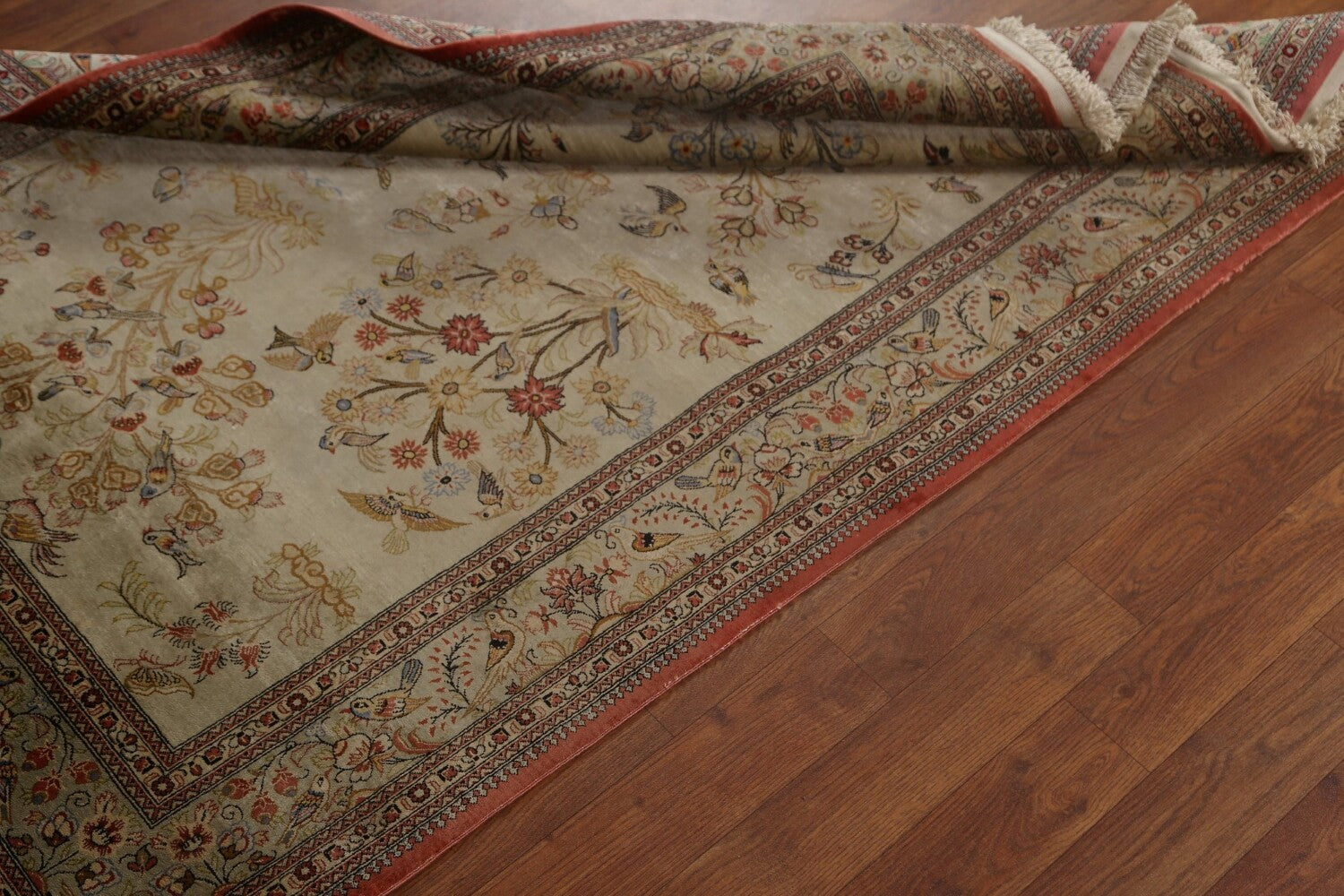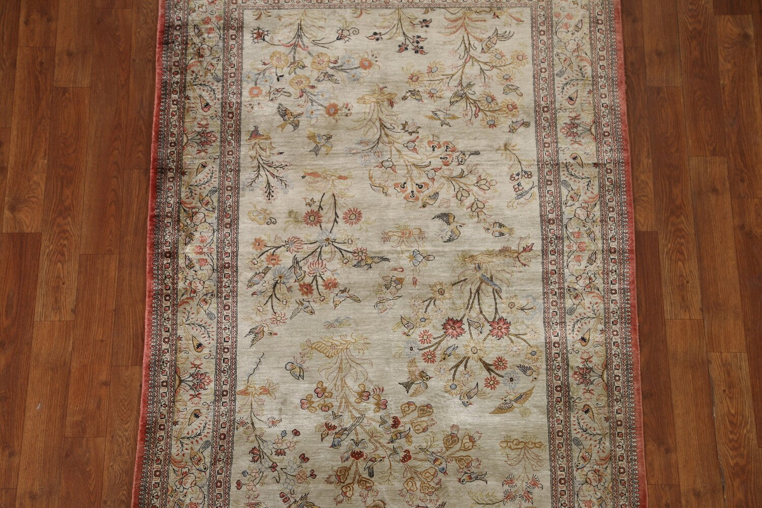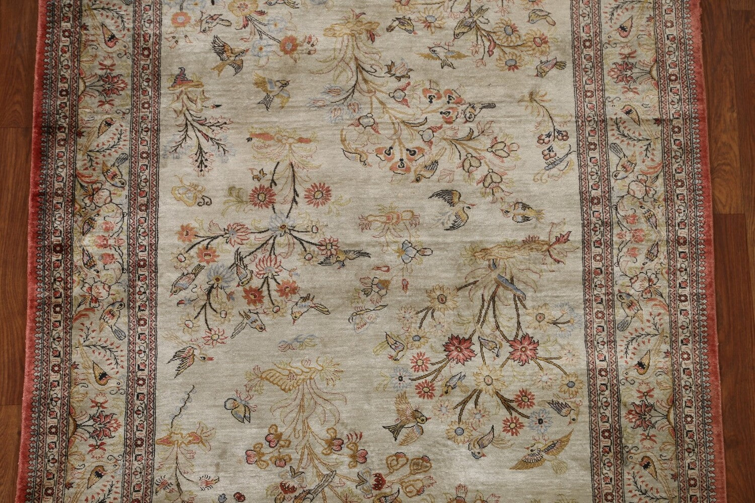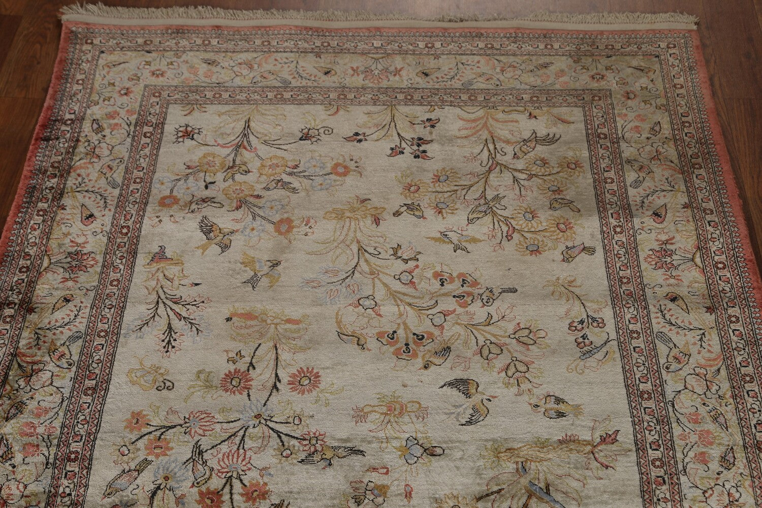 A Beautiful Genuine Persia ( Persia ) Qum rug is Hand Knotted by skillful weavers in Persia ( Persia ) with 100% Silk Material. This rug is in Excellent condition. dimensions are 5' 2'' X 3' 6'' in foot and 157 X 107 in centimeter. the primary color is Beige & Ivories.