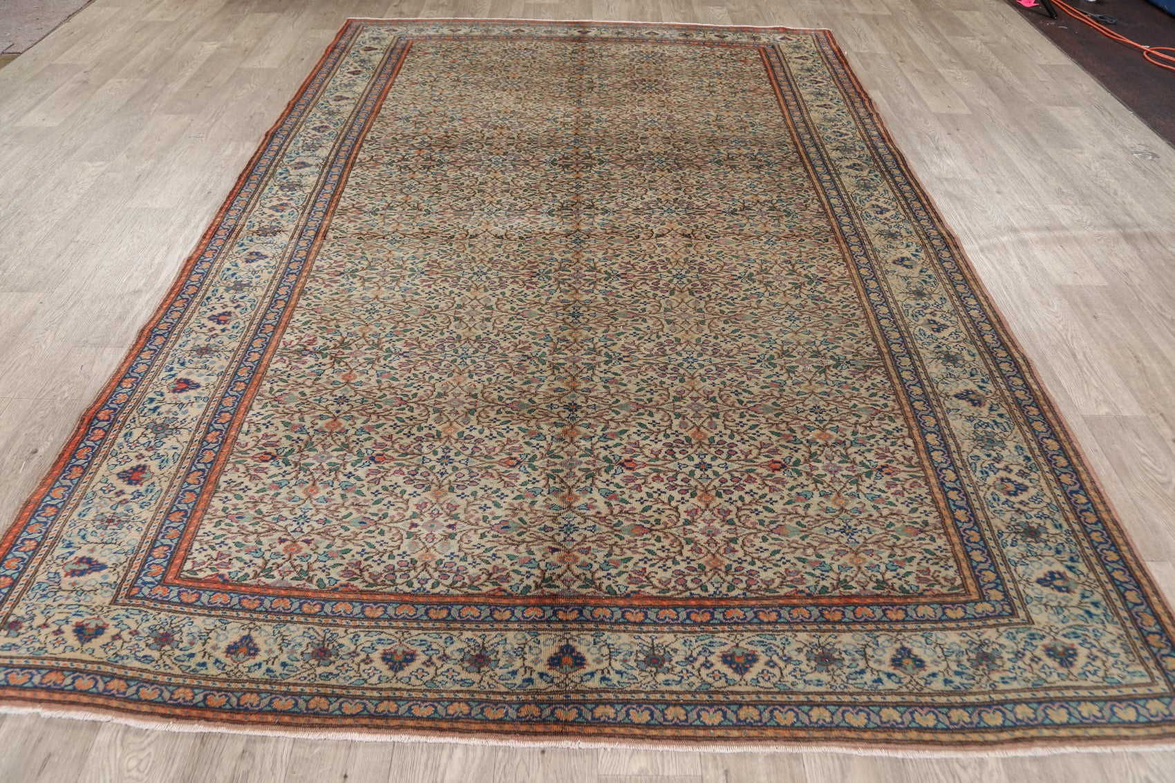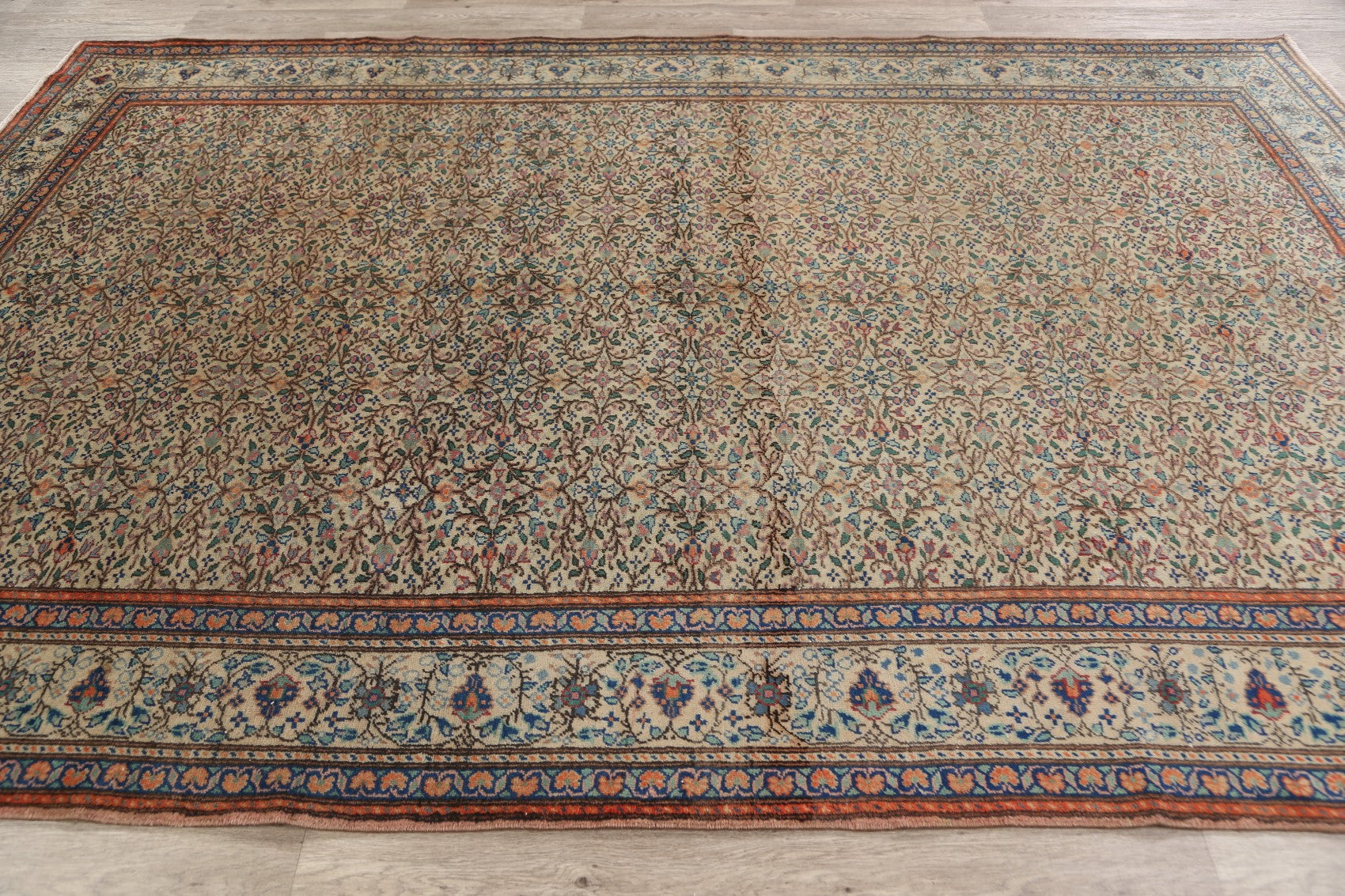 A Beautiful Genuine Turkey Anatolian rug is Hand Knotted by skillful weavers in Turkey with 100% Wool Material. This rug is in Very Good (Abrash) condition. dimensions are 9' 8'' X 6' 5'' in foot and 295 X 196 in centimeter. the primary color is Beige & Ivories.
