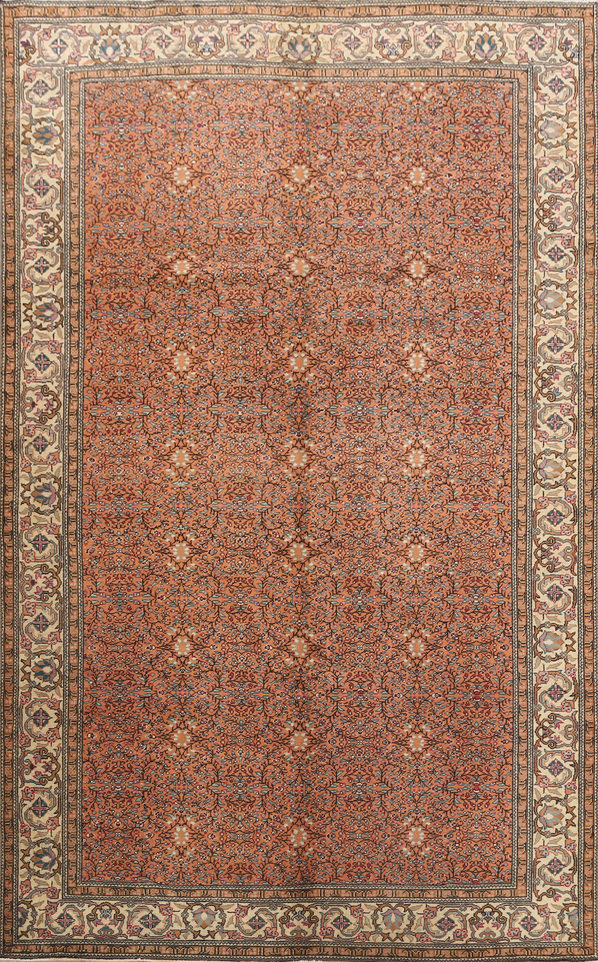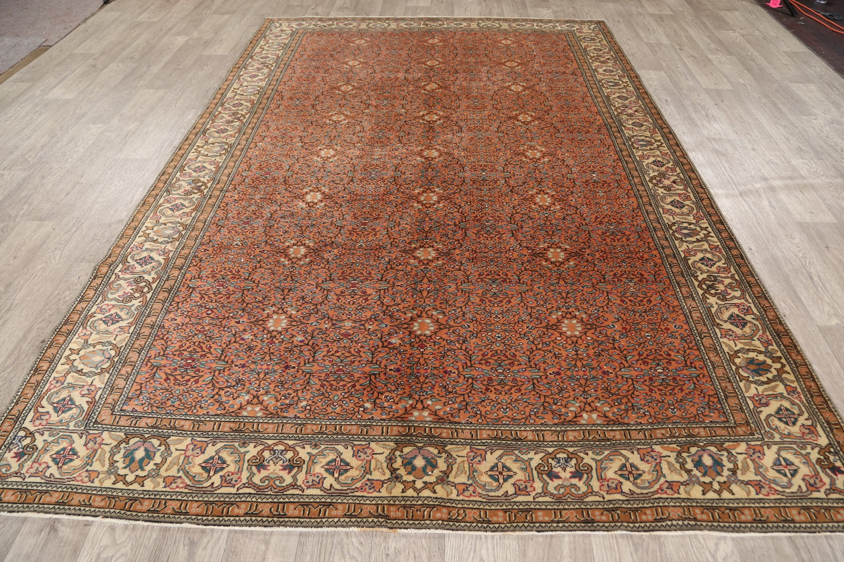 A Beautiful Genuine Turkey Anatolian rug is Hand Knotted by skillful weavers in Turkey with 100% Wool Material. This rug is in Very Good condition. dimensions are 9' 6'' X 6' 4'' in foot and 290 X 193 in centimeter. the primary color is Oranges & Rust.