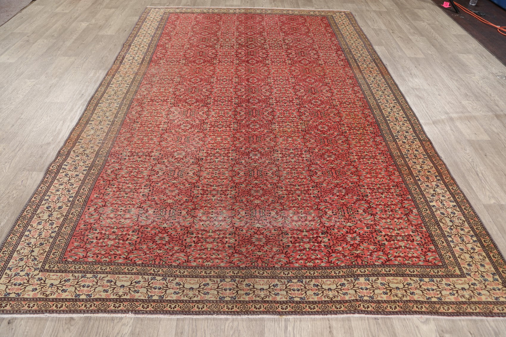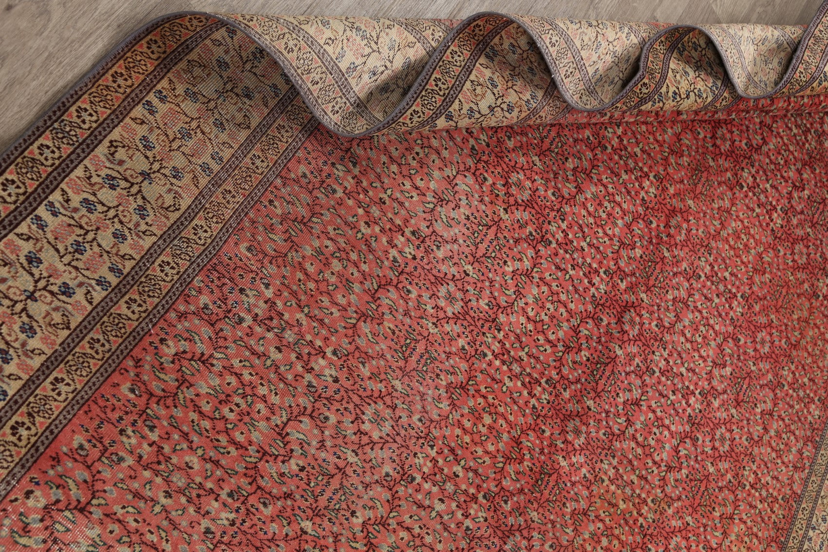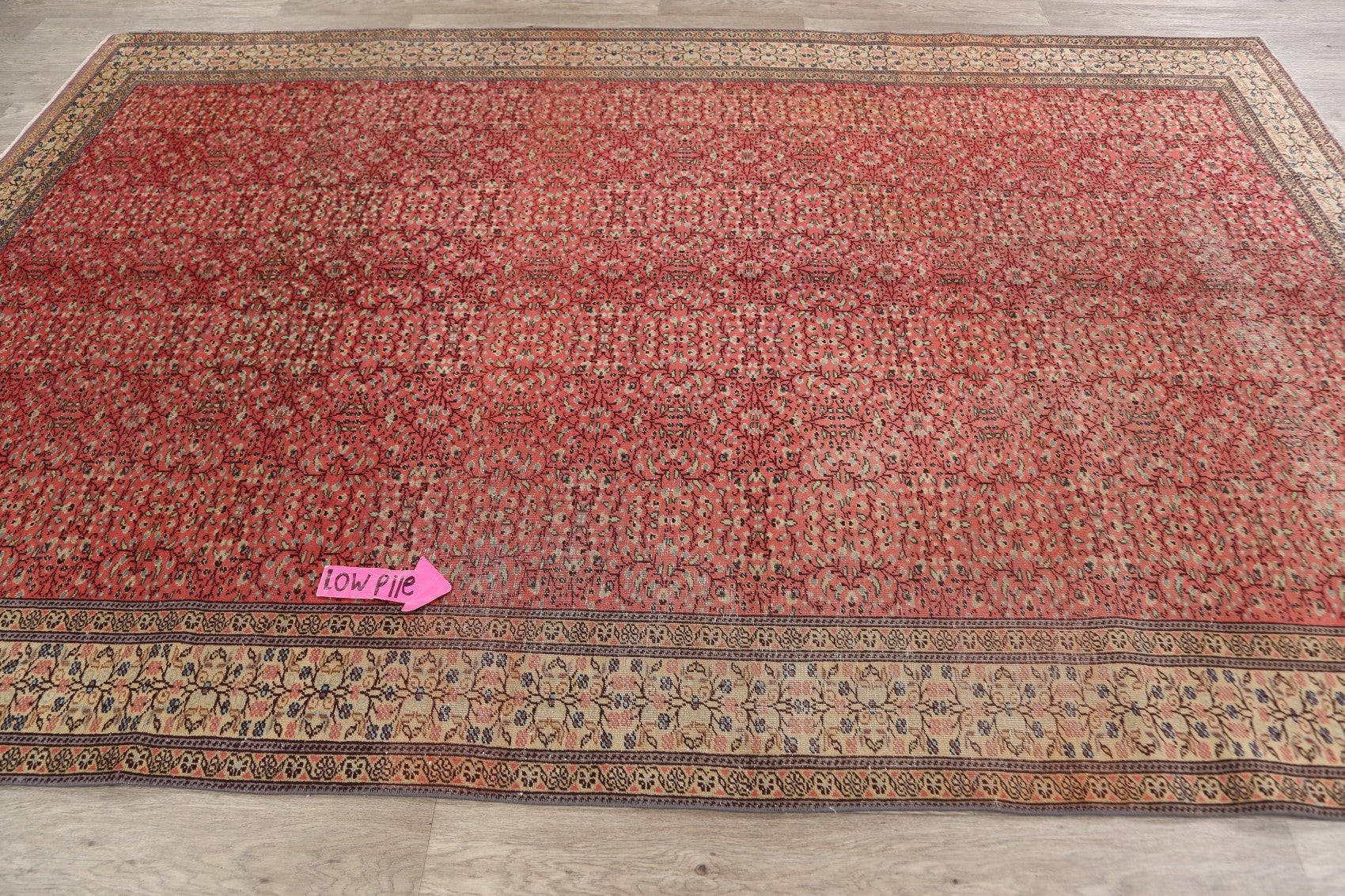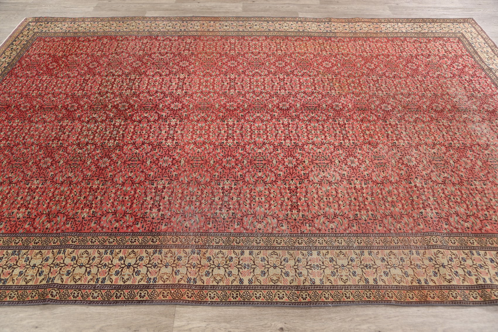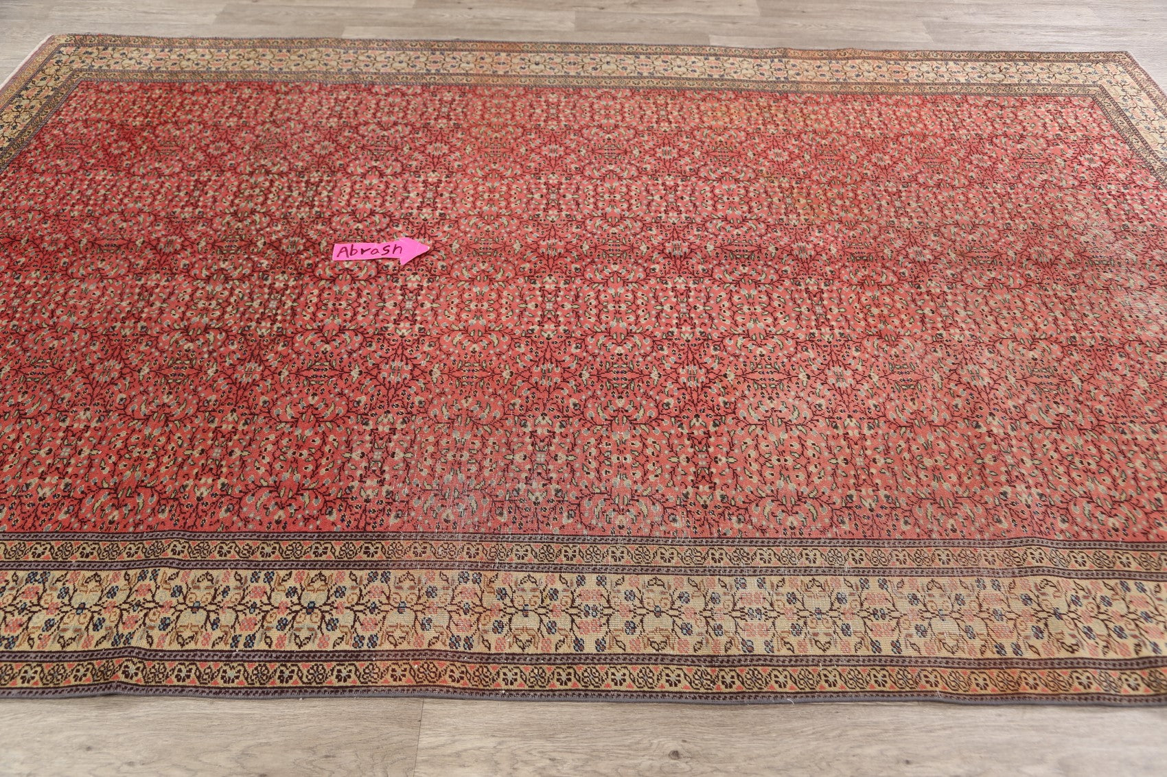 A Beautiful Genuine Turkey Anatolian rug is Hand Knotted by skillful weavers in Turkey with 100% Wool Material. This rug is in Very Good (Low Pile-Abrash) condition. dimensions are 9' 6'' X 6' 4'' in foot and 290 X 193 in centimeter. the primary color is Red.