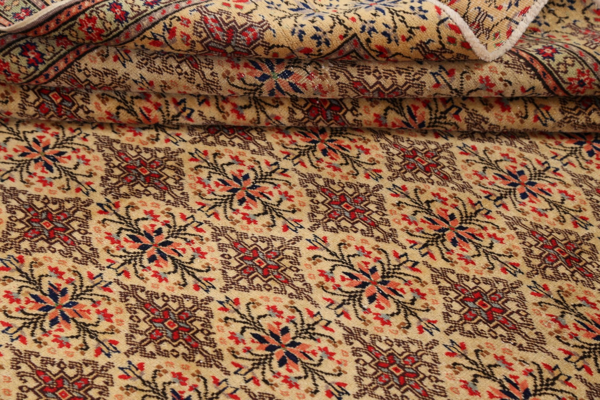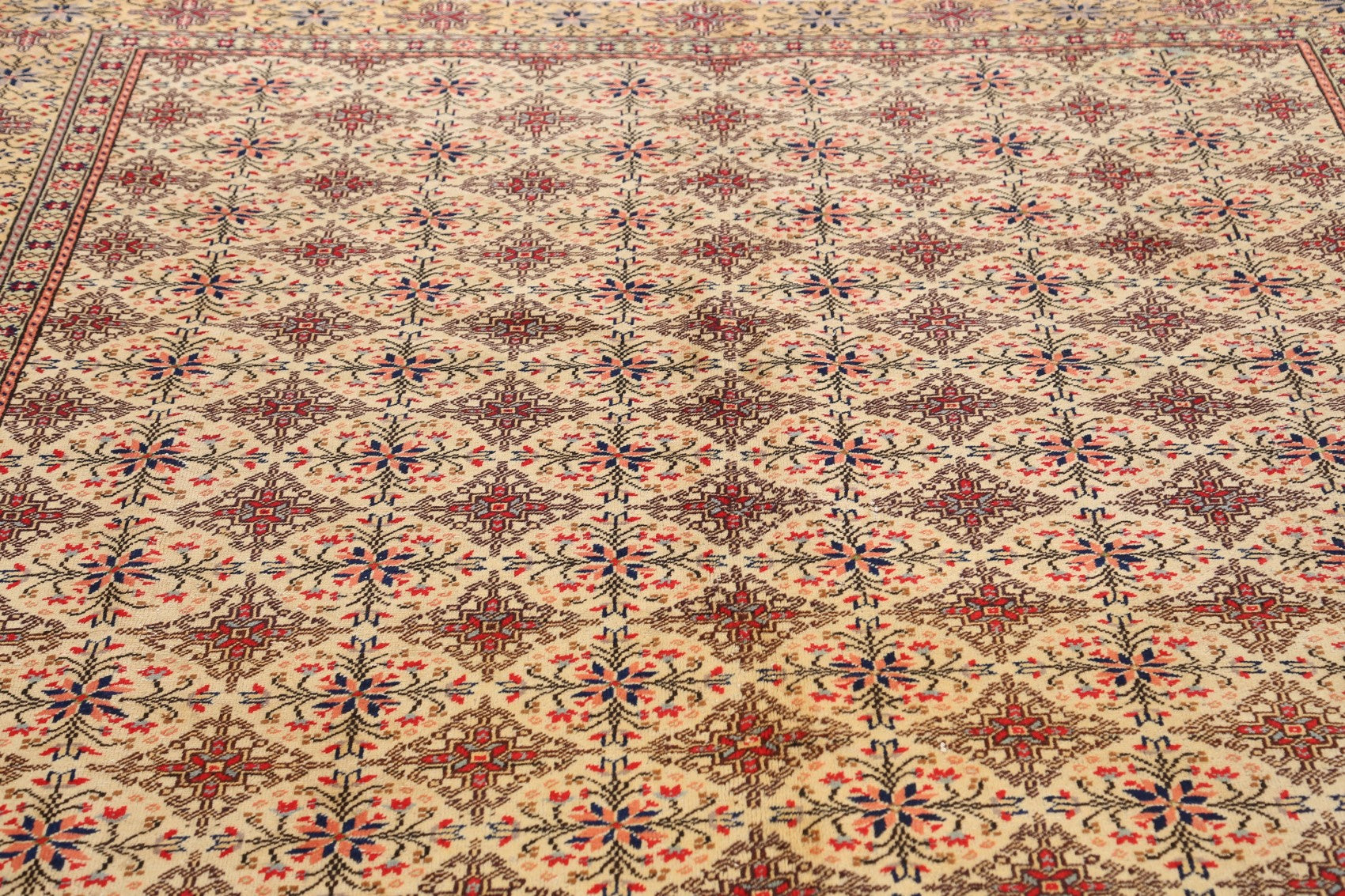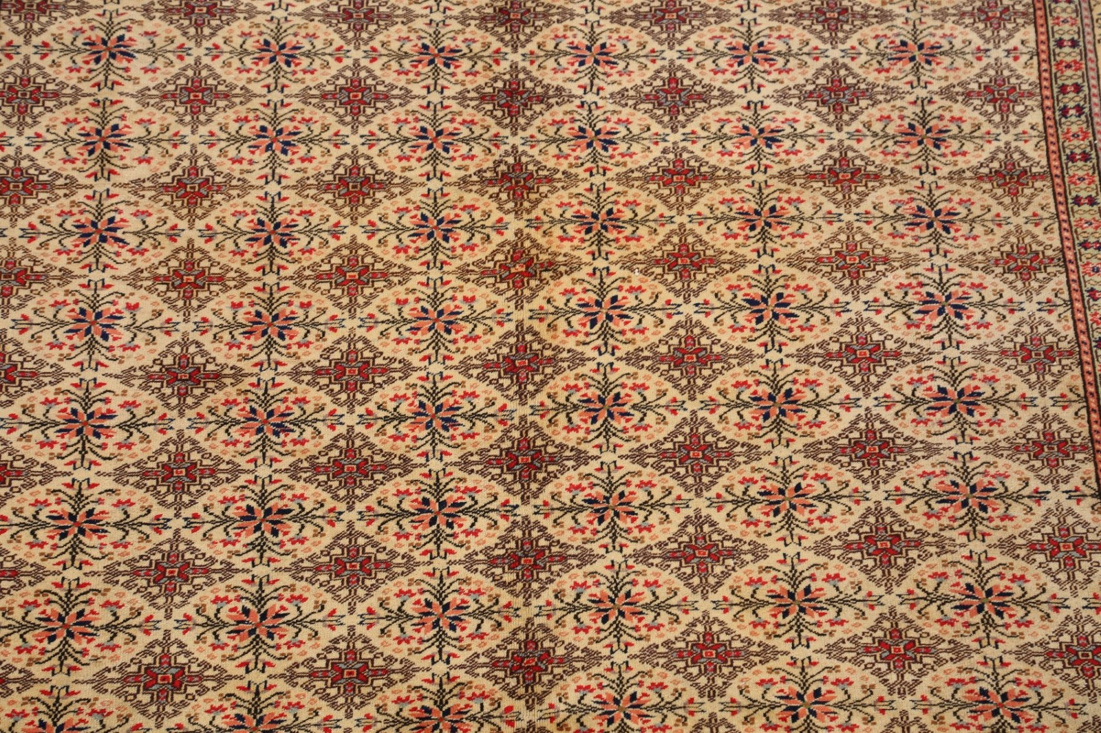 A Beautiful Genuine Turkey Anatolian rug is Hand Knotted by skillful weavers in Turkey with 100% Wool Material. This rug is in Very Good (Small Low Pile Area) condition. dimensions are 8' 11'' X 6' 5'' in foot and 272 X 196 in centimeter. the primary color is Beige & Ivories.