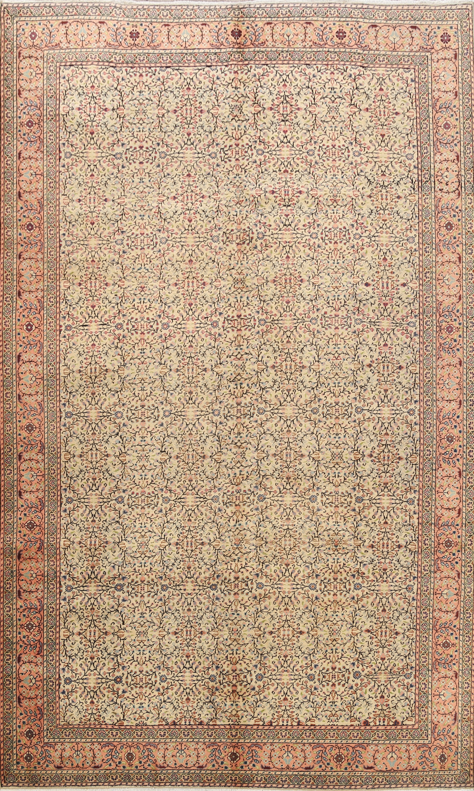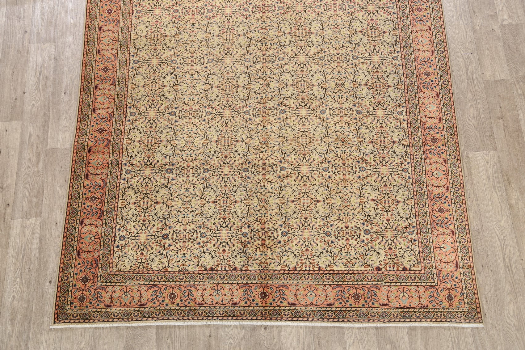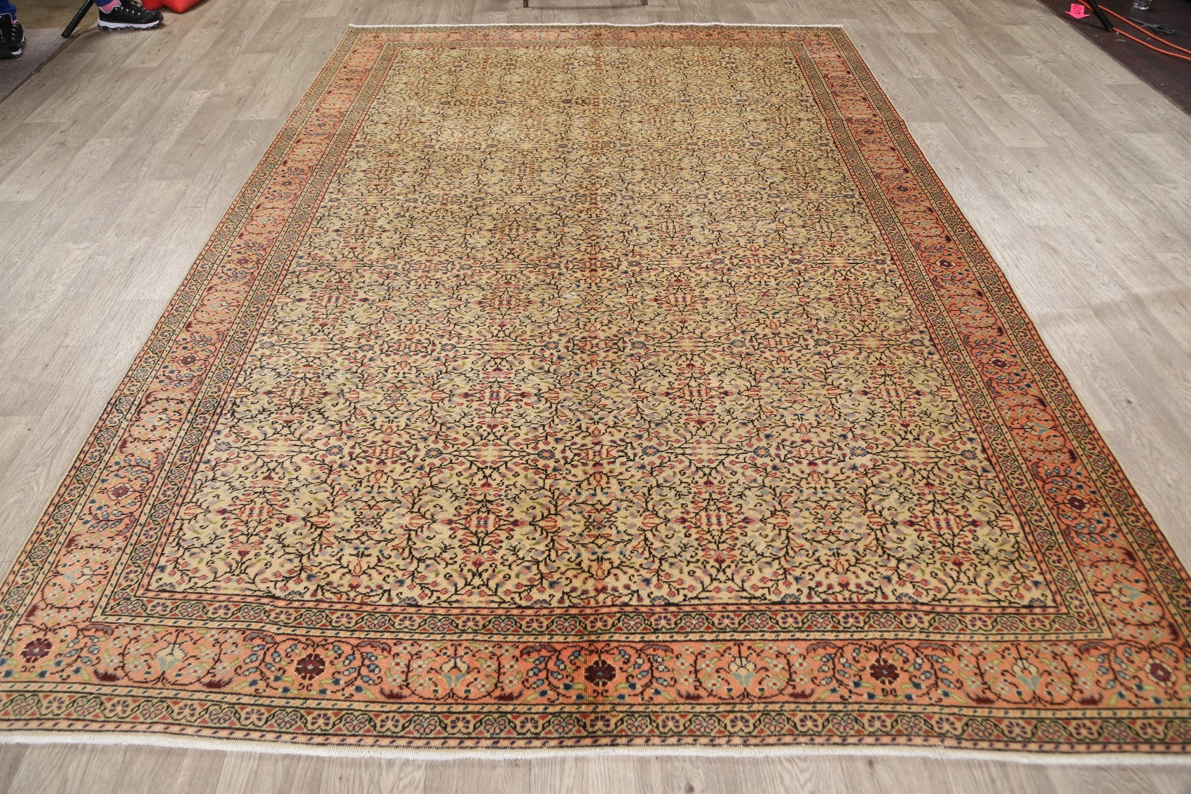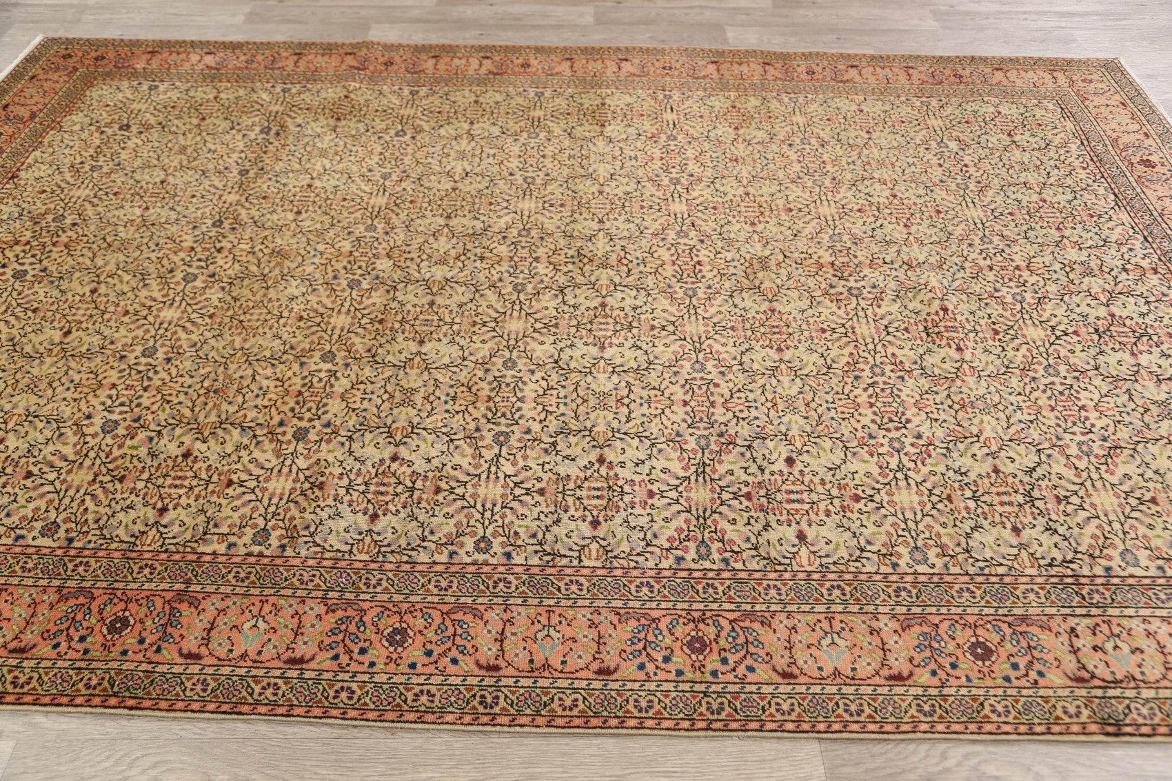 A Beautiful Genuine Turkey Anatolian rug is Hand Knotted by skillful weavers in Turkey with 100% Wool Material. This rug is in Very Good ( Low Pile ) condition. dimensions are 9' 7'' X 6' 7'' in foot and 292 X 201 in centimeter. the primary color is Beige & Ivories.