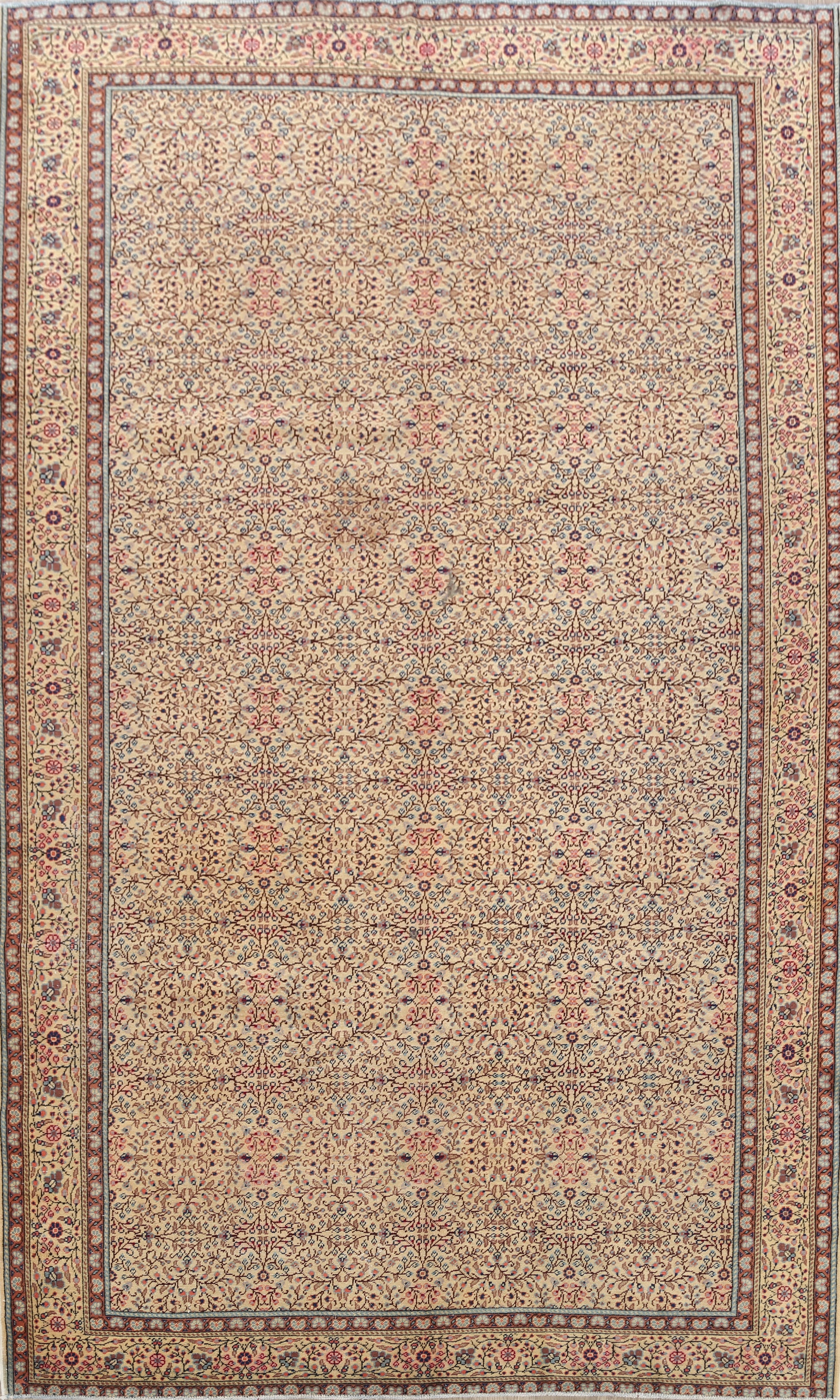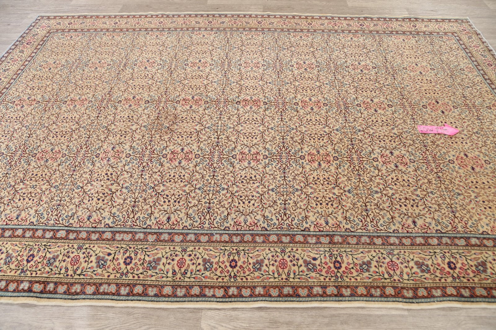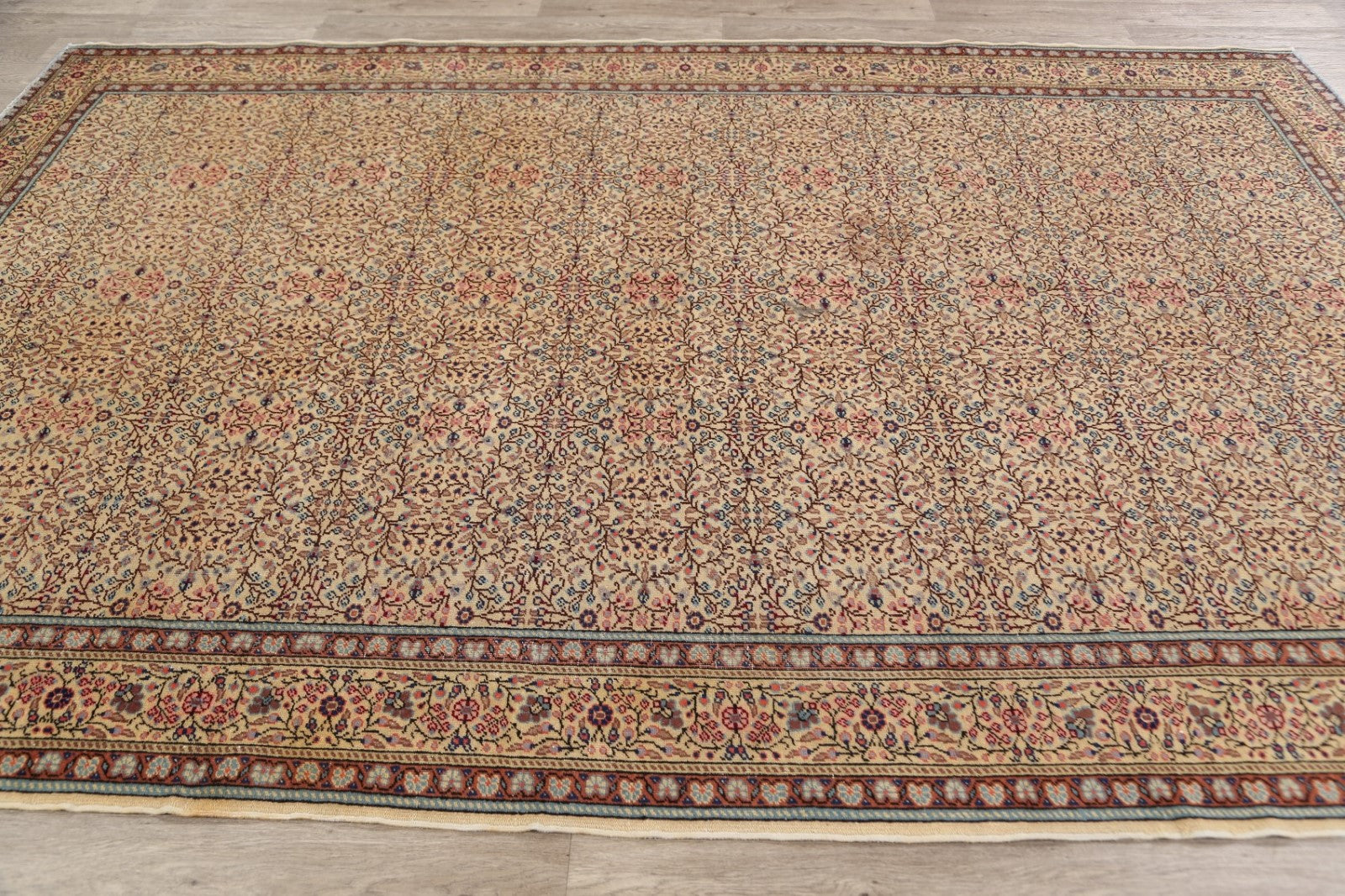 A Beautiful Genuine Turkey Anatolian rug is Hand Knotted by skillful weavers in Turkey with 100% Wool Material. This rug is in Very Good ( Low Pile ) condition. dimensions are 9' 8'' X 6' 7'' in foot and 295 X 201 in centimeter. the primary color is Beige & Ivories.