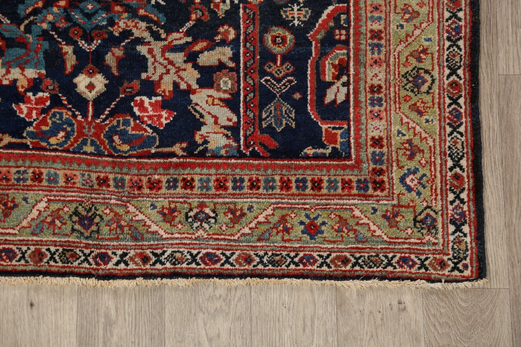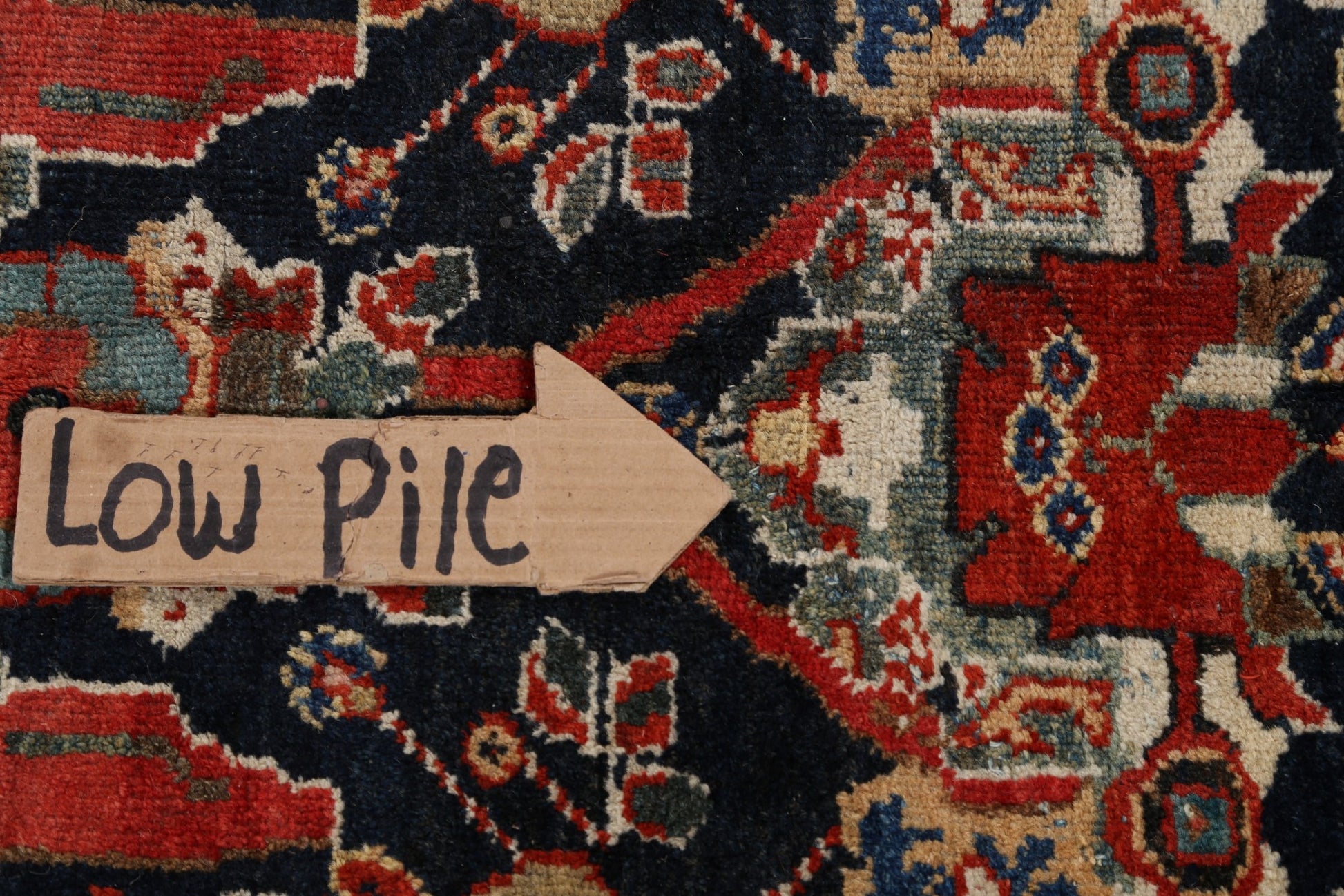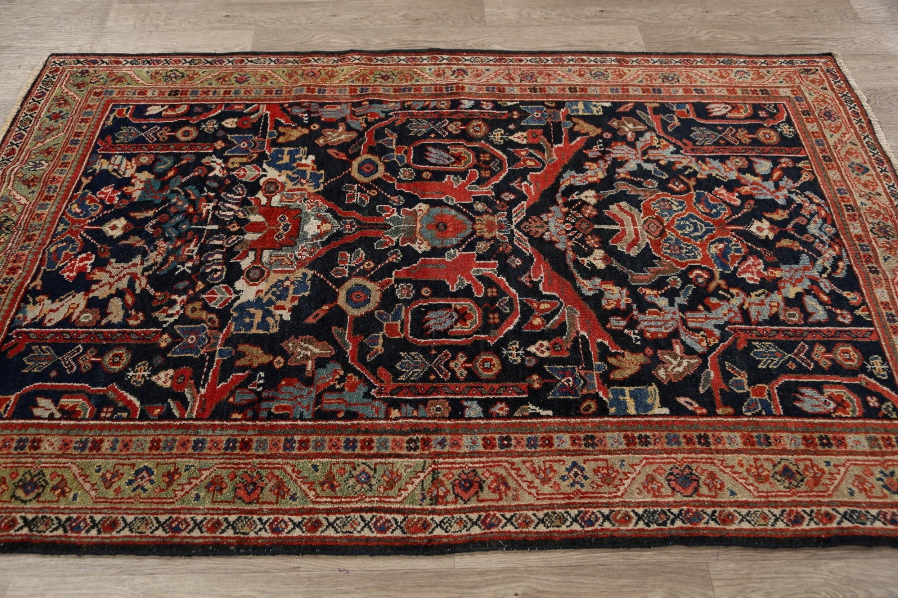 A Beautiful Genuine Persia ( Persia ) Mahal rug is Hand Knotted by skillful weavers in Persia ( Persia ) with 100% Wool Material. This rug is in Very Good ( Low Pile ) condition. dimensions are 6' 5'' X 4' 3'' in foot and 196 X 130 in centimeter. the primary color is Navy Blue & Blues.