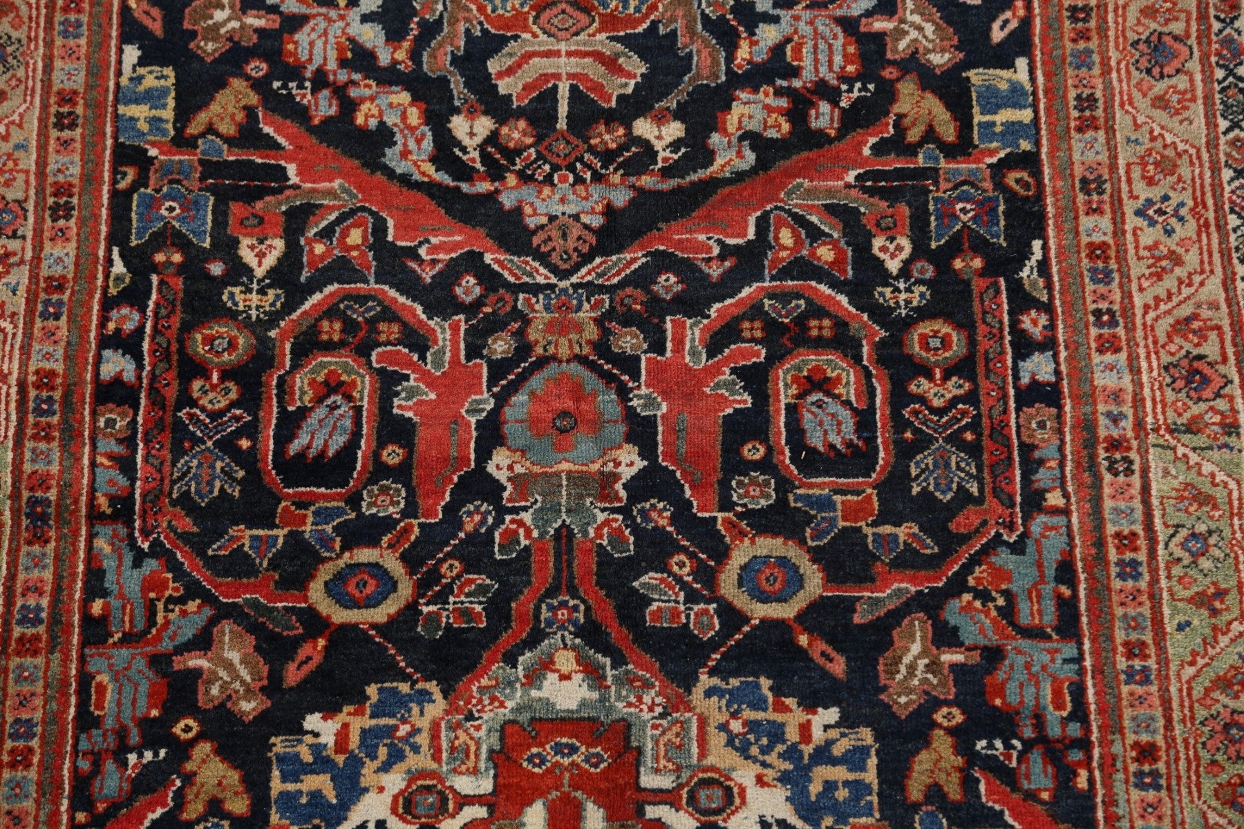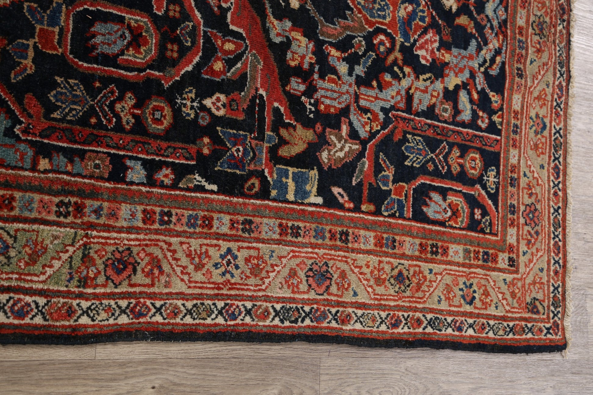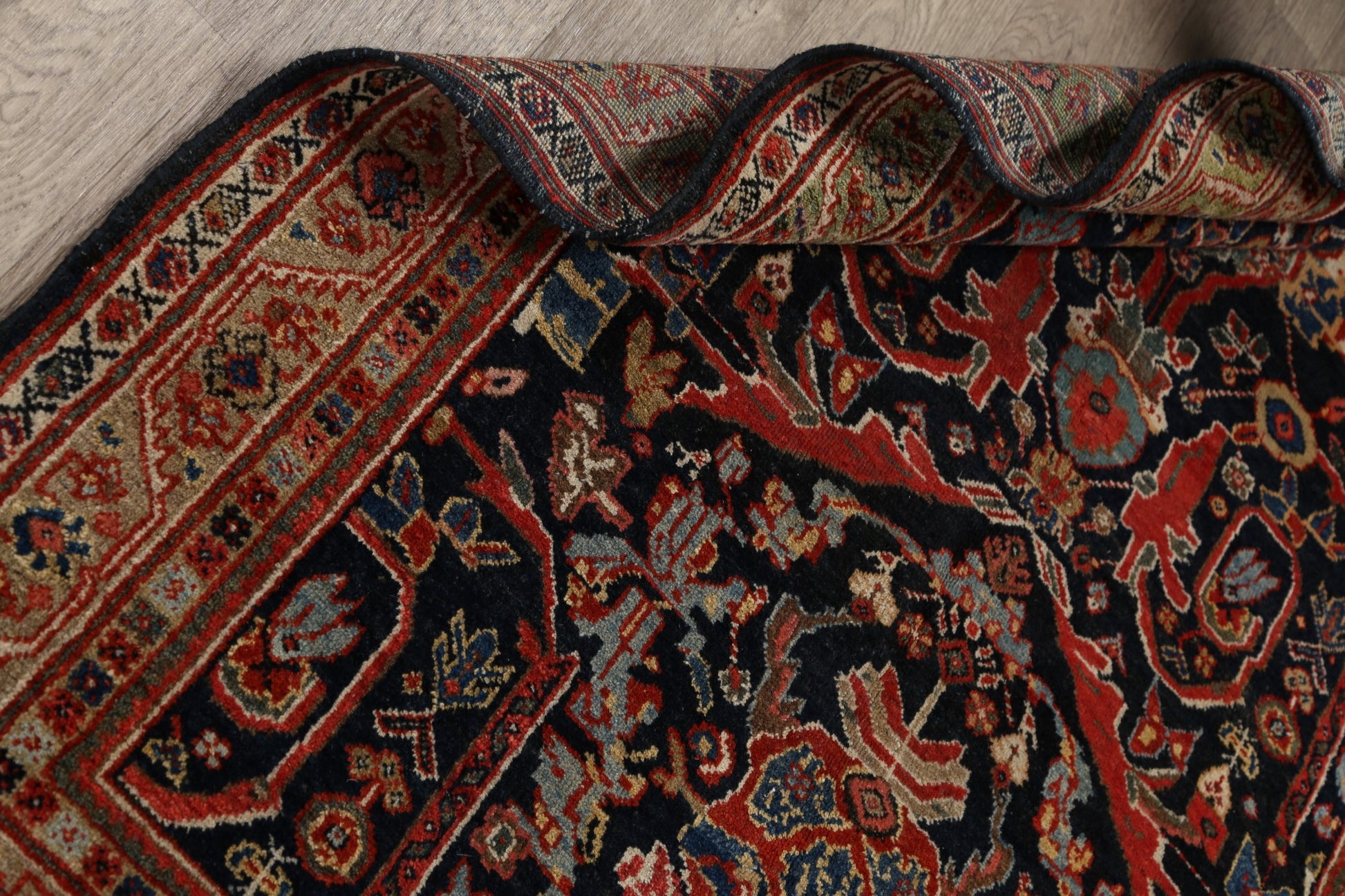 A Beautiful Genuine Persia ( Persia ) Mahal rug is Hand Knotted by skillful weavers in Persia ( Persia ) with 100% Wool Material. This rug is in Very Good ( Low Pile ) condition. dimensions are 6' 5'' X 4' 3'' in foot and 196 X 130 in centimeter. the primary color is Navy Blue & Blues.
