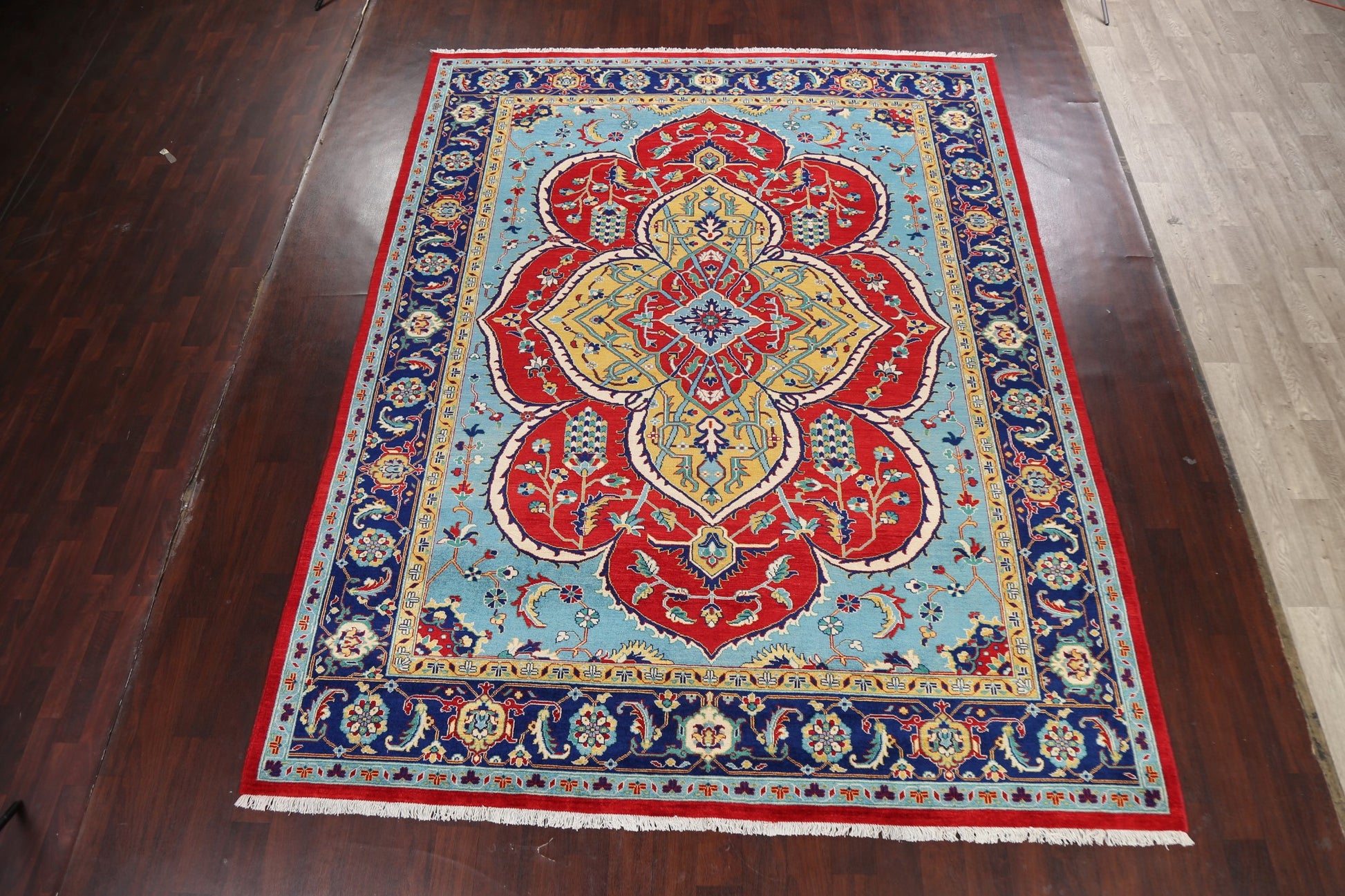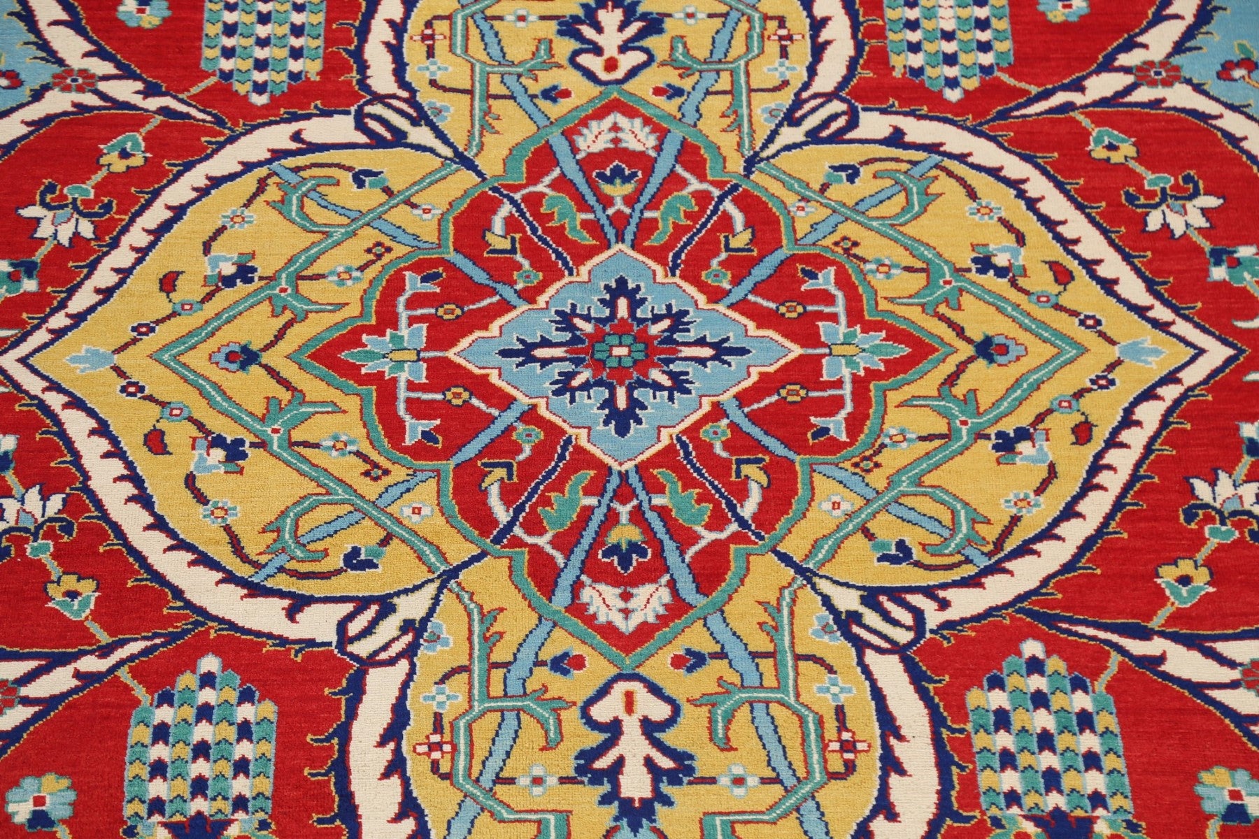 A Beautiful Genuine Persia ( Persia ) Bakhtiari rug is Hand Knotted by skillful weavers in Persia ( Persia ) with 100% Wool Material. This rug is in New, First Quality condition. dimensions are 11' 8'' X 9' 1'' in foot and 356 X 277 in centimeter. the primary color is Red.