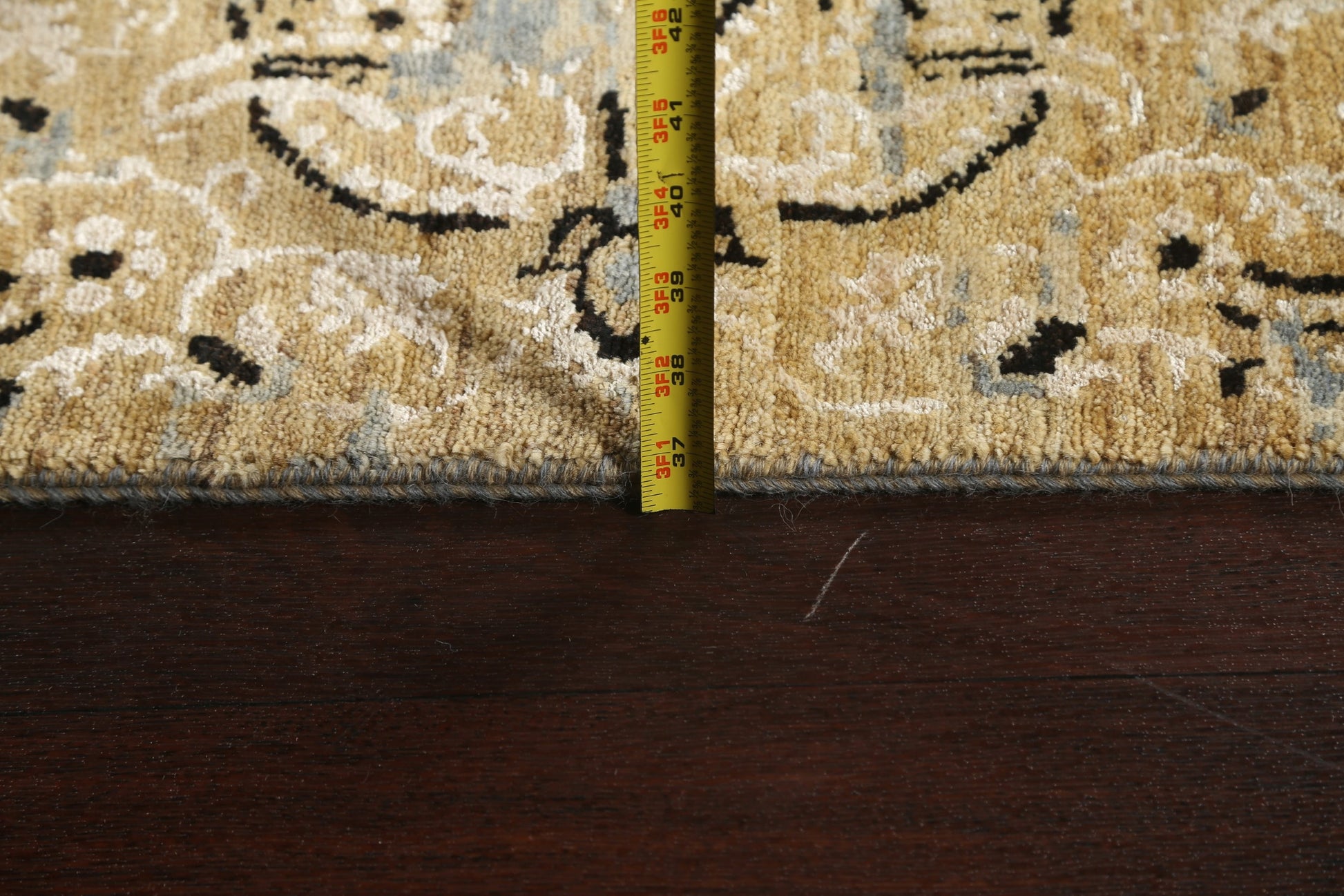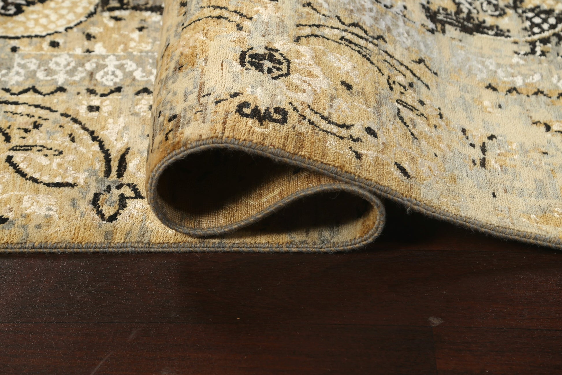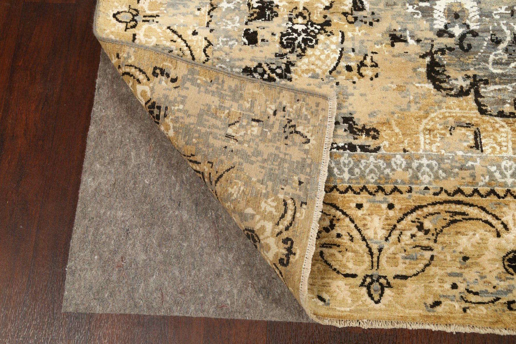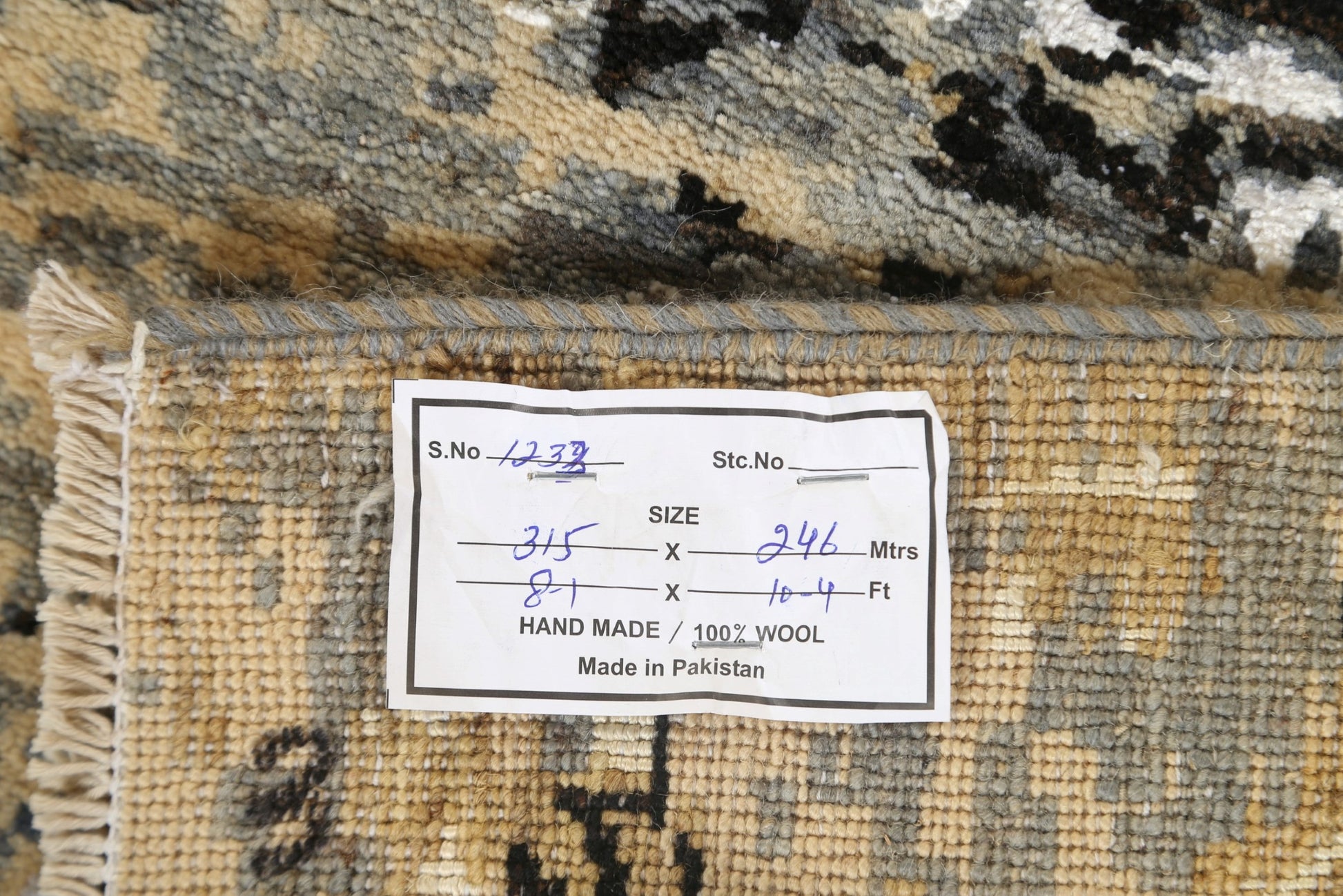 A Beautiful Genuine Pakistan Tabriz rug is Hand Knotted by skillful weavers in Pakistan with Wool & Silk Material. This rug is in New, First Quality condition. dimensions are 10' 4'' X 8' 1'' in foot and 315 X 246 in centimeter. the primary color is Greys & Charcoal.