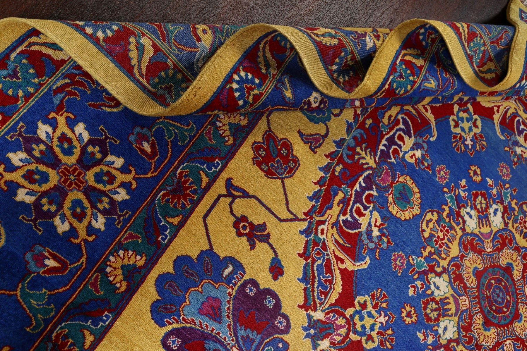 A Beautiful Genuine Persia ( Persia ) Bakhtiari rug is Hand Knotted by skillful weavers in Persia ( Persia ) with 100% Wool Material. This rug is in New, First Quality condition. dimensions are 13' 7'' X 10' 4'' in foot and 414 X 315 in centimeter. the primary color is Yellow & Gold.