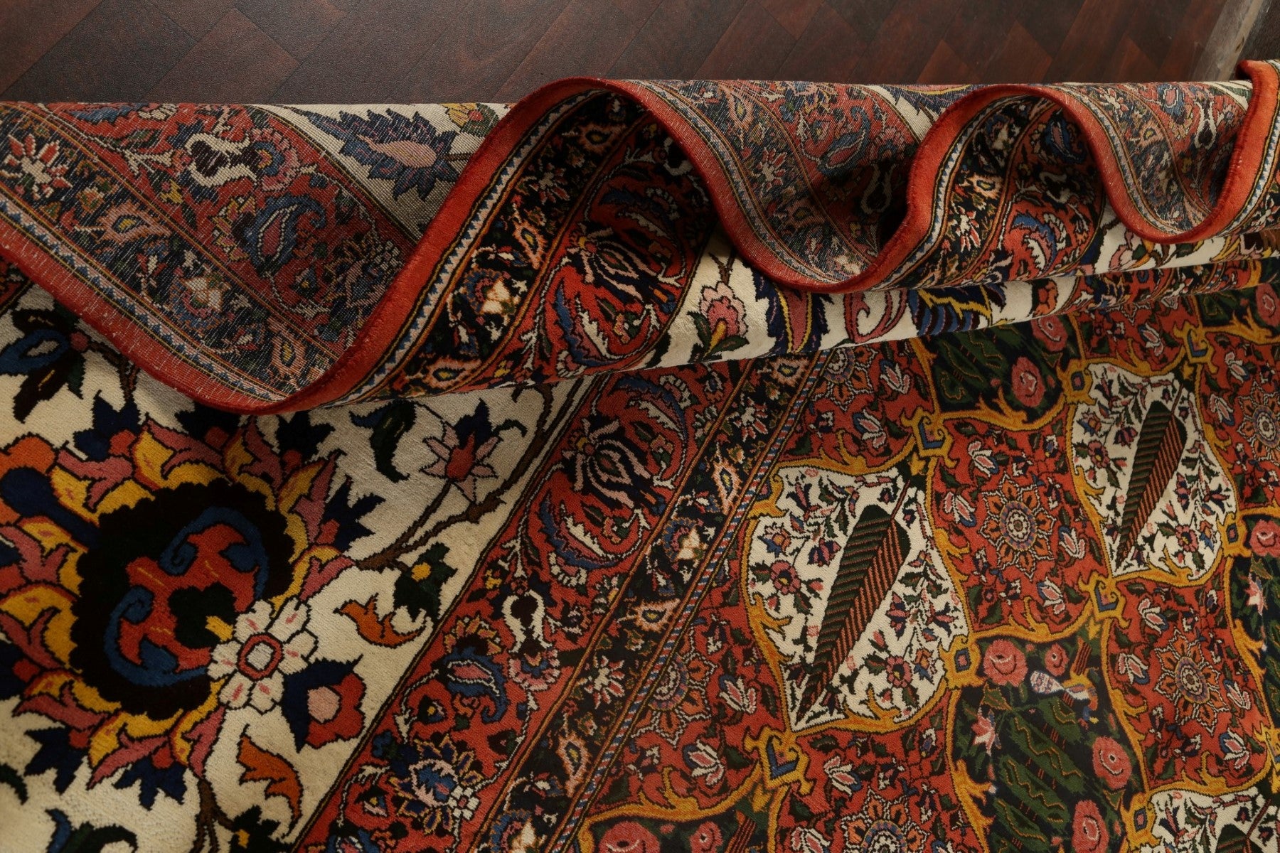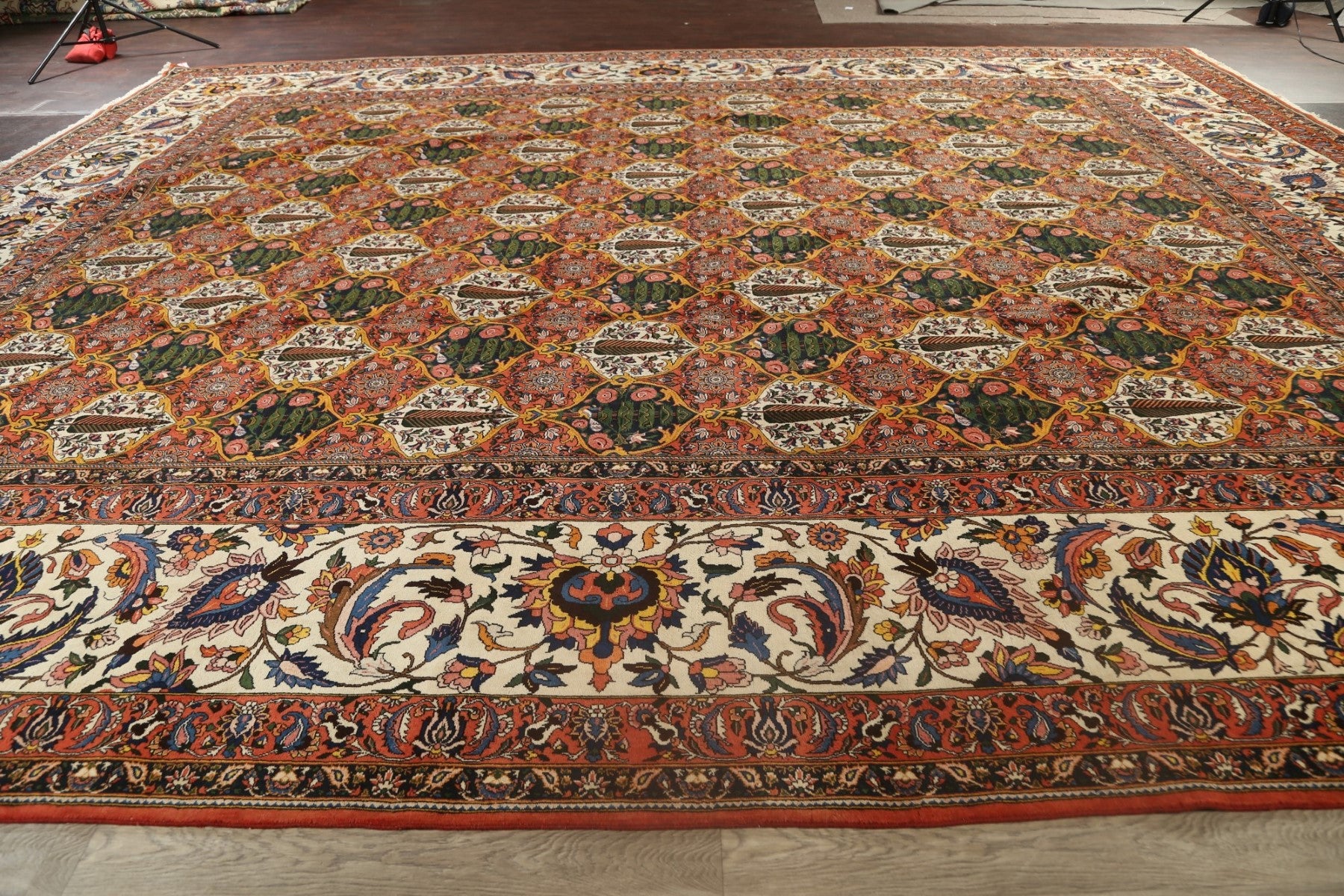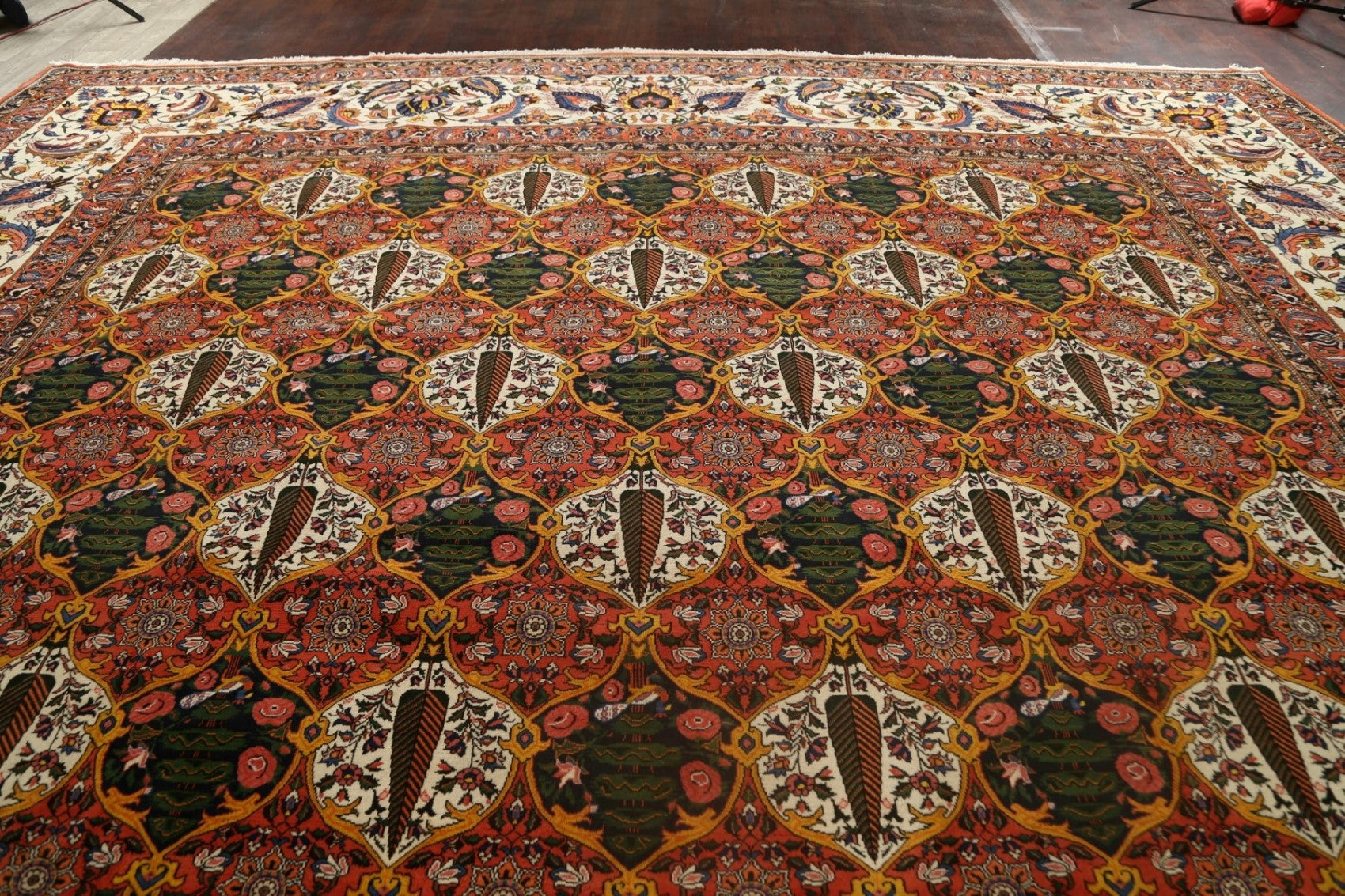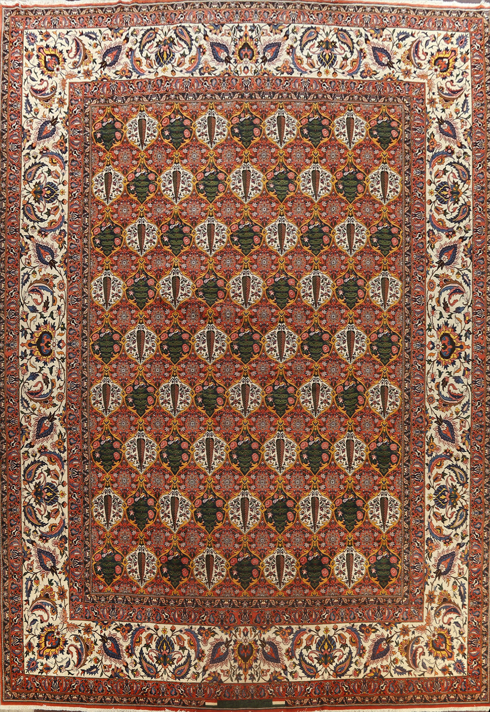 A Beautiful Genuine Persia ( Persia ) Bakhtiari (Signed) rug is Hand Knotted by skillful weavers in Persia ( Persia ) with 100% Wool Material. This rug is in Excellent condition. dimensions are 19' 10'' X 16' 3'' in foot and 605 X 495 in centimeter. the primary color is Multi-Colored.