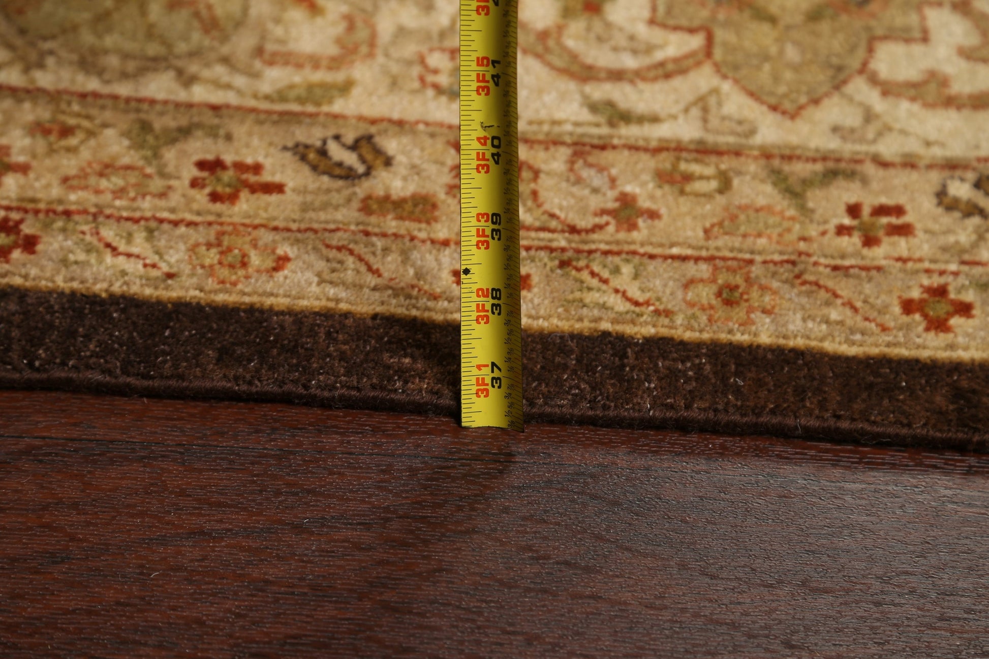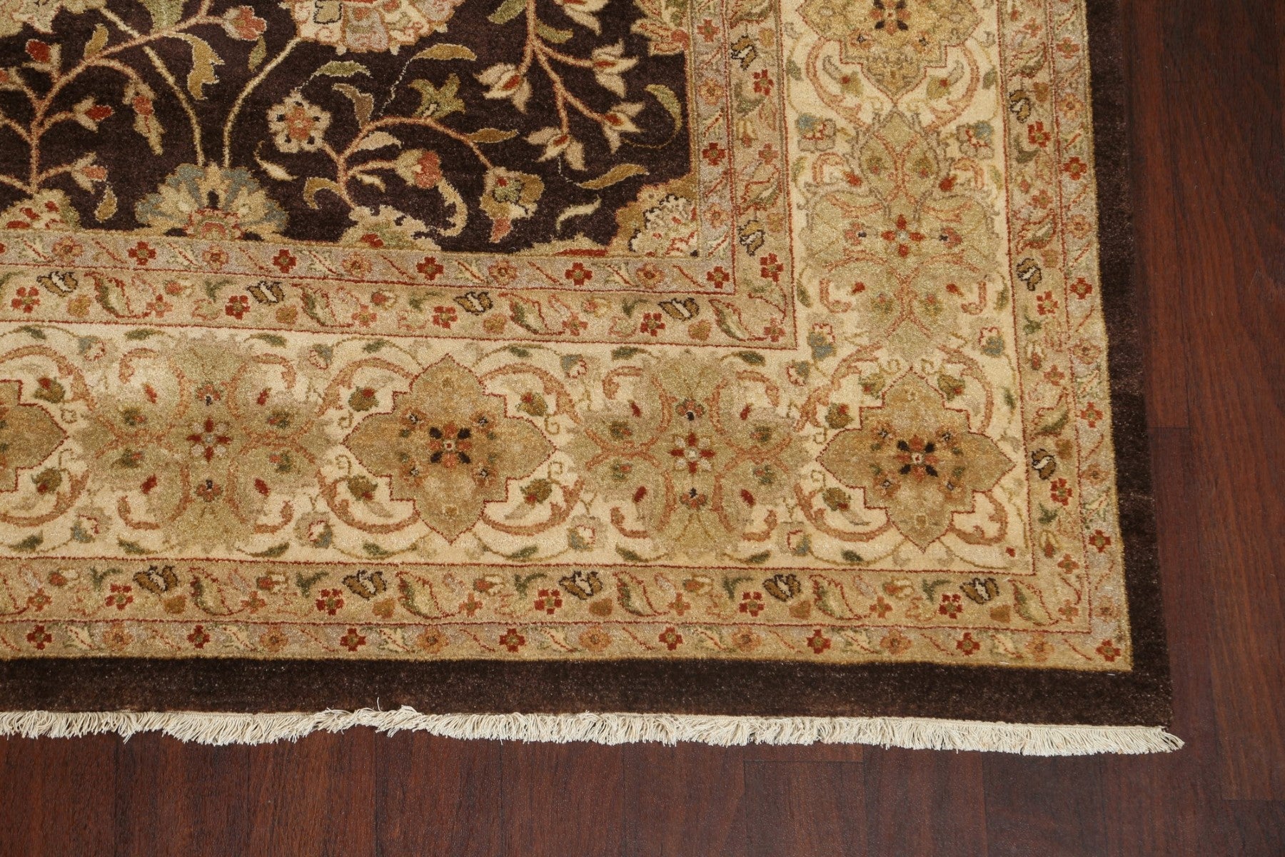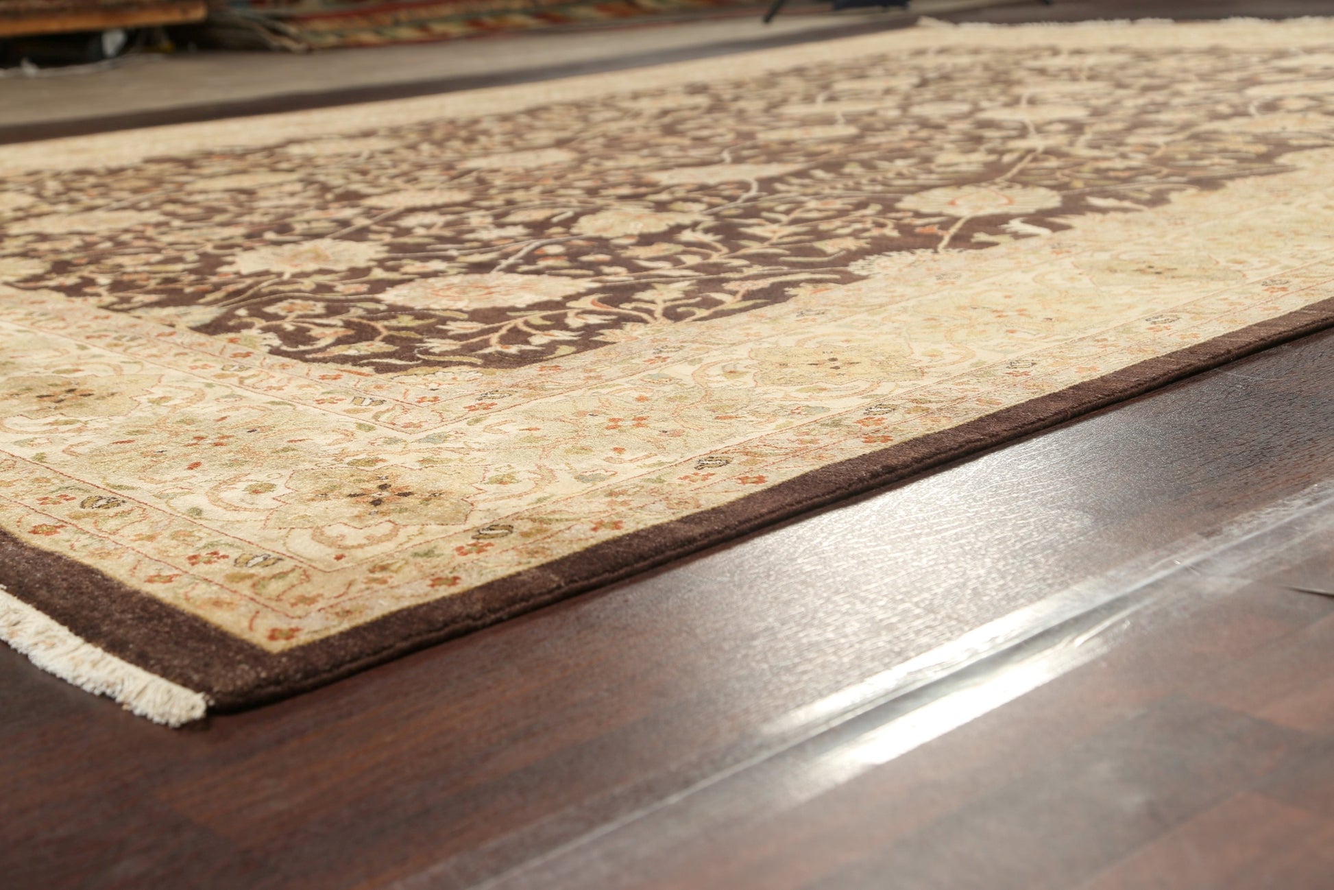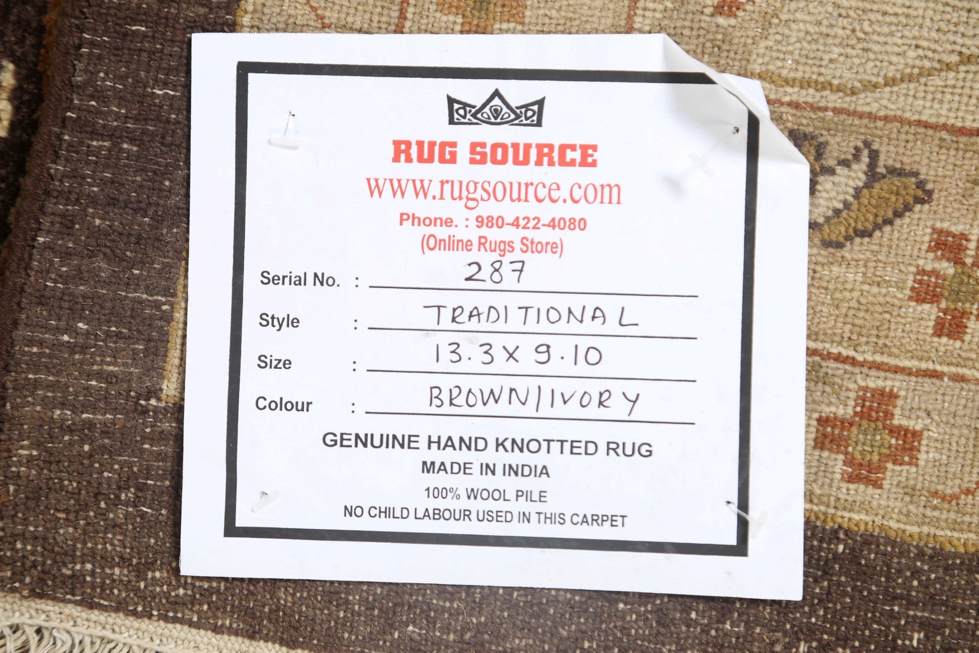 A Beautiful Genuine India Kashan rug is Hand Knotted by skillful weavers in India with 100% Wool Material. This rug is in New, First Quality condition. dimensions are 13' 3'' X 9' 10'' in foot and 404 X 300 in centimeter. the primary color is Brown.