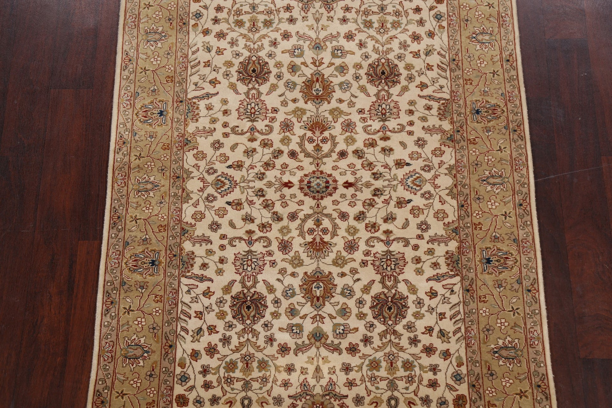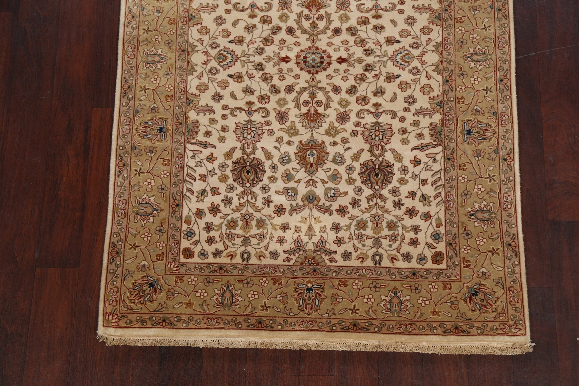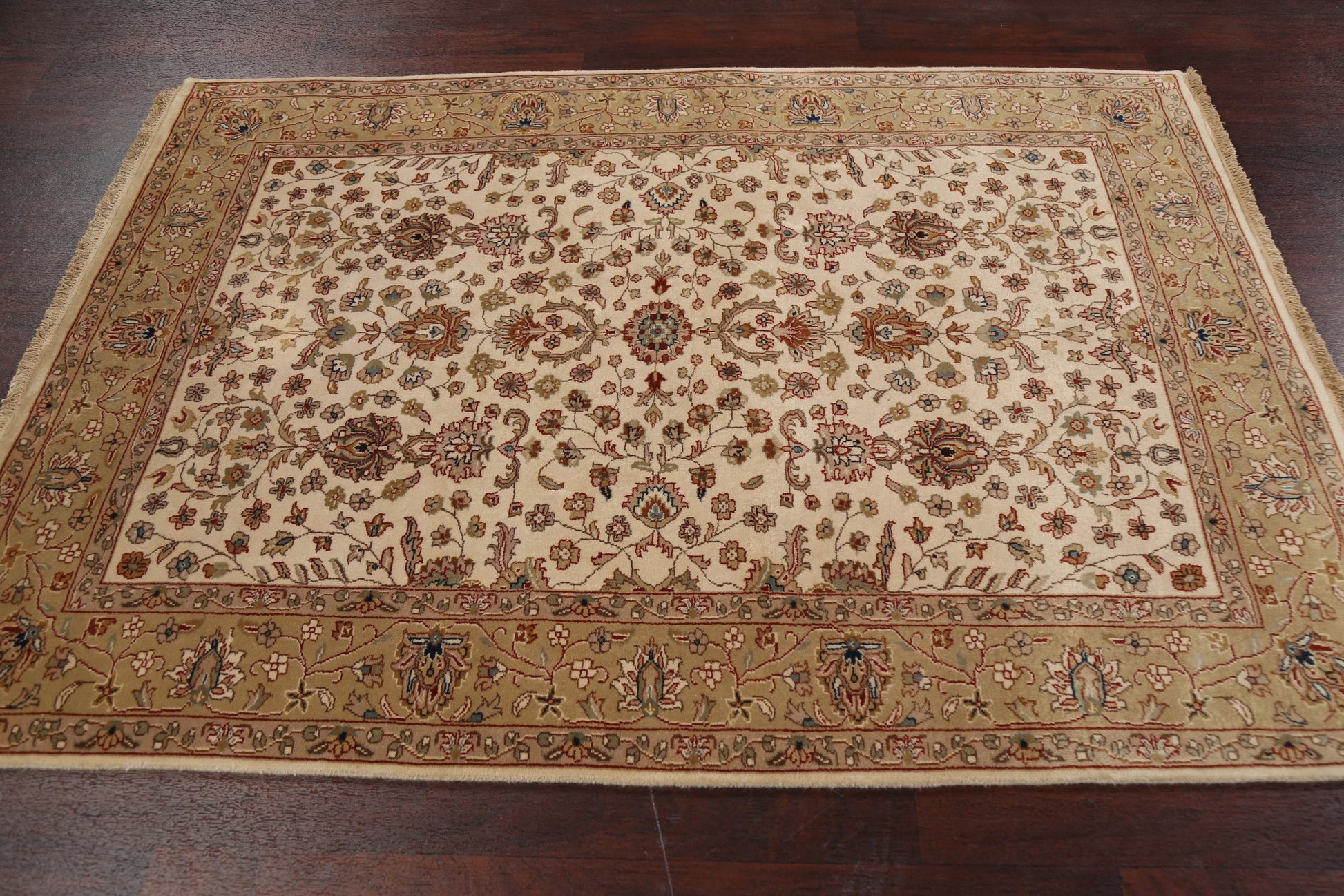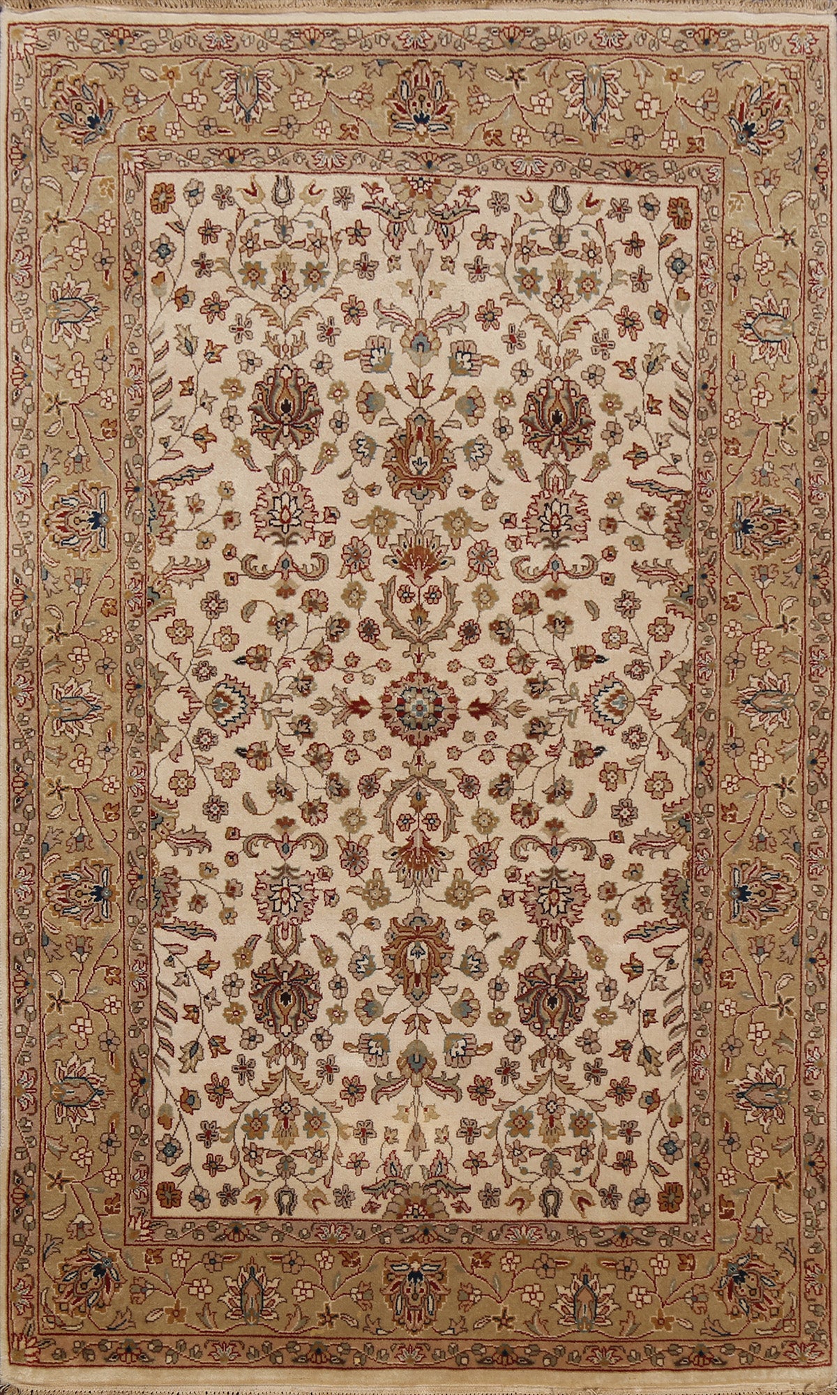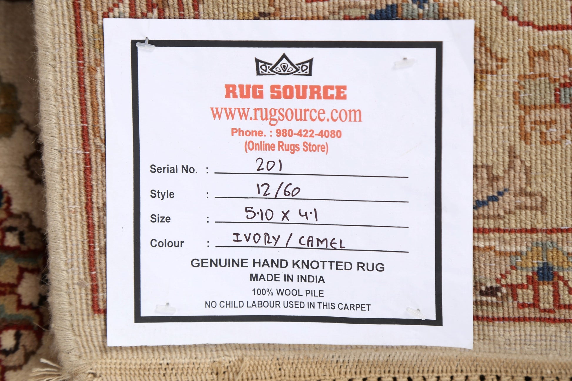 A Beautiful Genuine India Kashan rug is Hand Knotted by skillful weavers in India with 100% Kork Wool Material. This rug is in New, First Quality condition. dimensions are 5' 10'' X 4' 1'' in foot and 178 X 124 in centimeter. the primary color is Beige & Ivories.